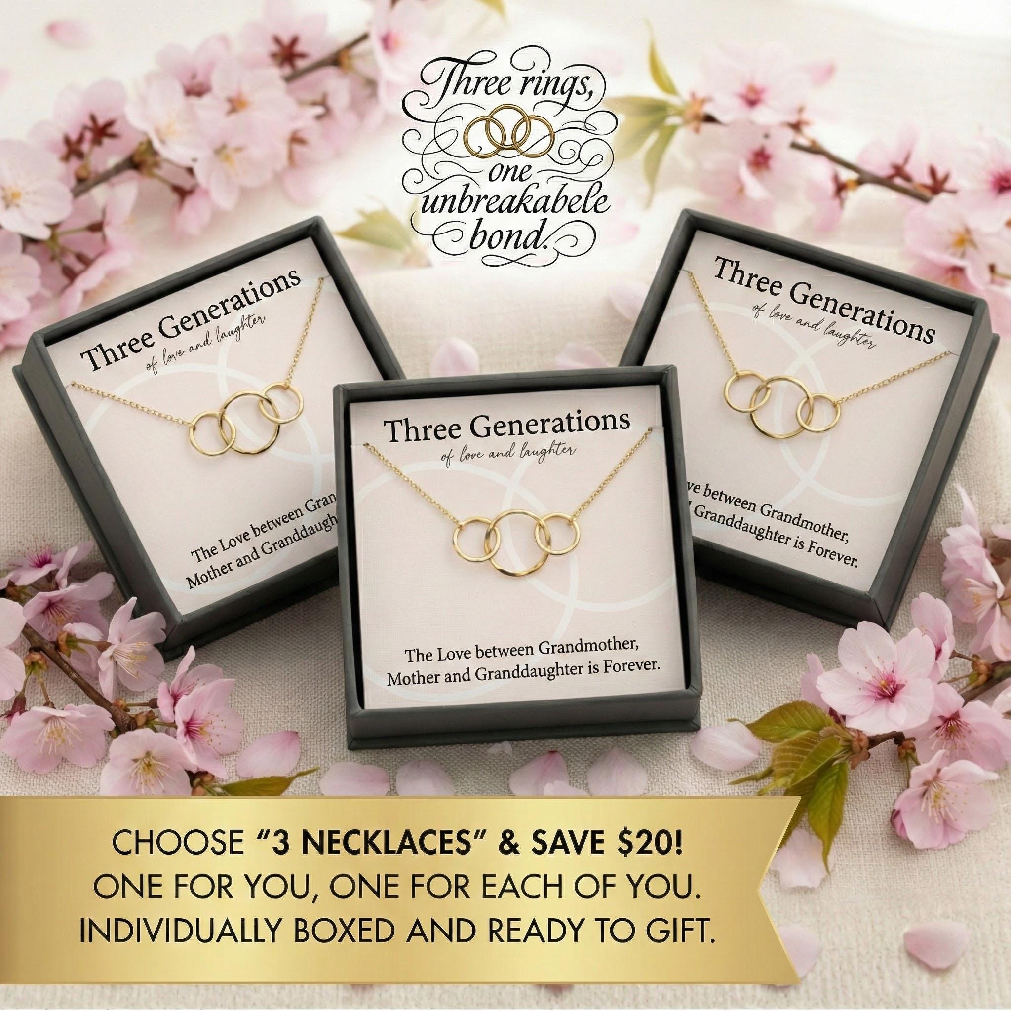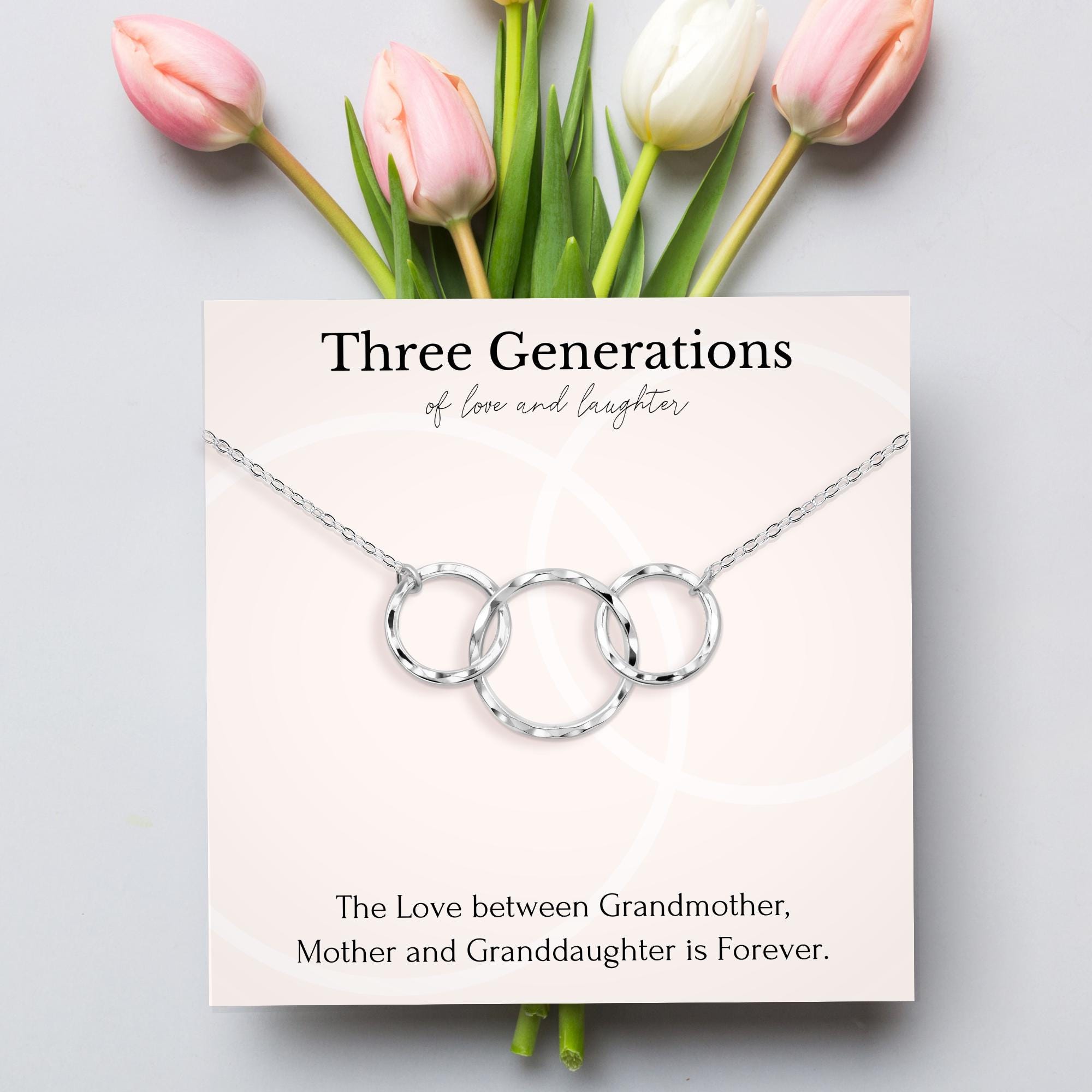 3 rings for 3 generations of love necklace Mother Daughter Grandmother 3 circles necklace gift with meaningful jewelry card.