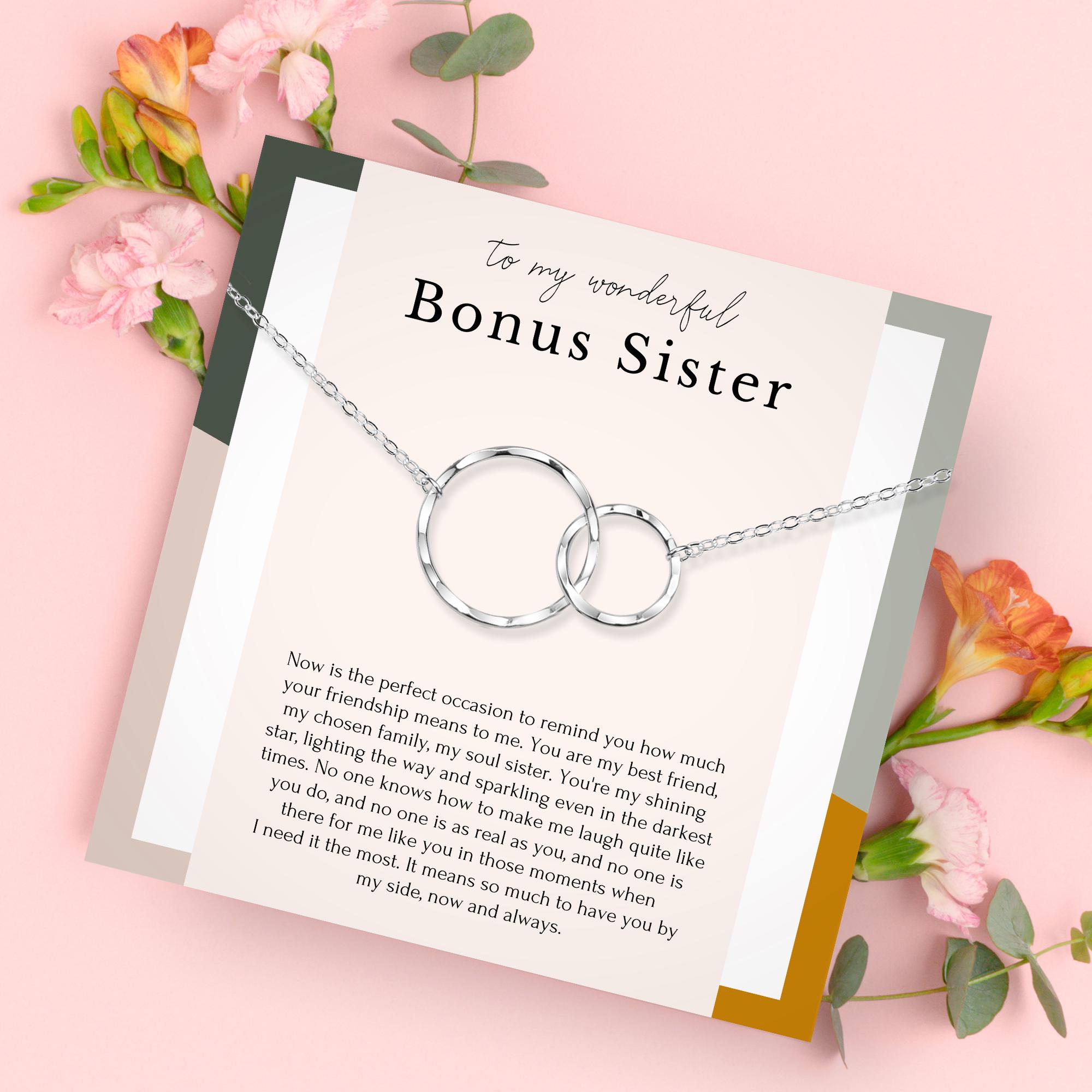 Bonus sister necklace, unbiological sister gift, soul sister jewelry, bridesmaid necklace gift, best friend gift jewelry, sister-in-law keepsake, heartfelt thank you gift, chosen family present, just because friendship gift, emotional BFF gift
