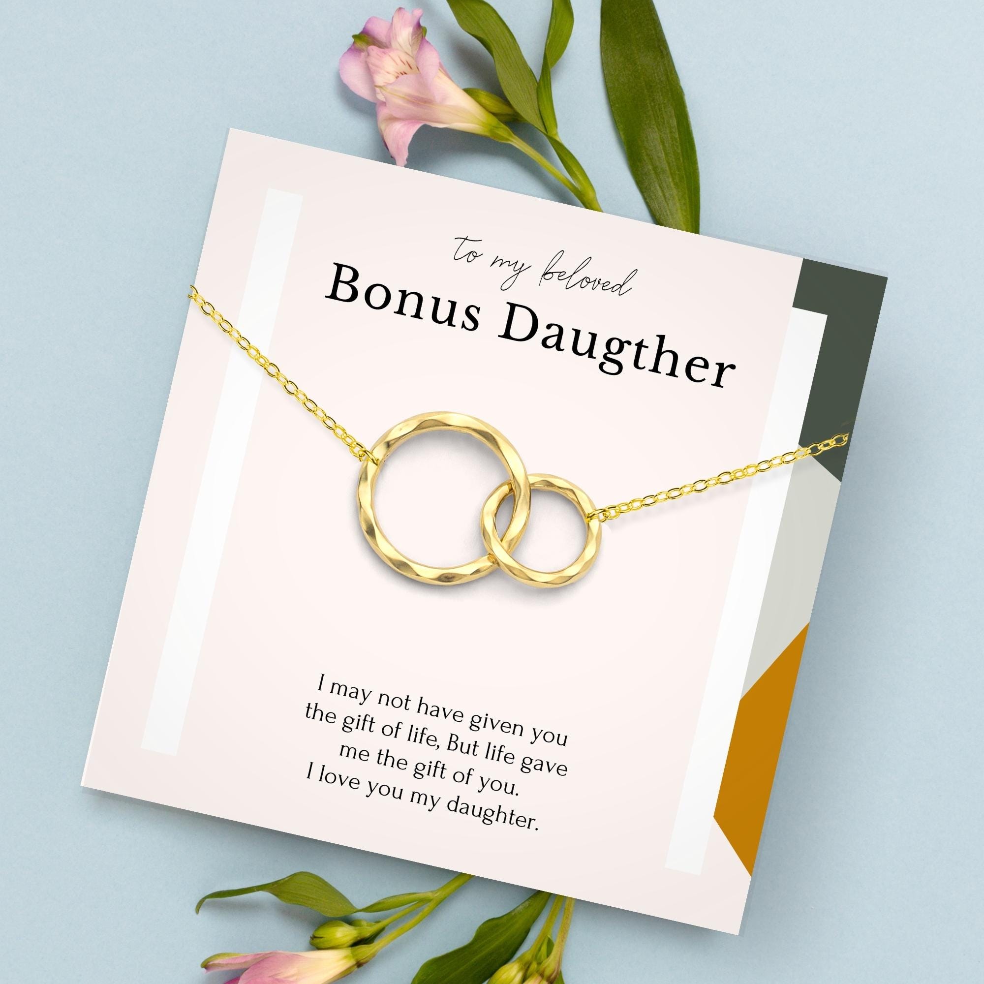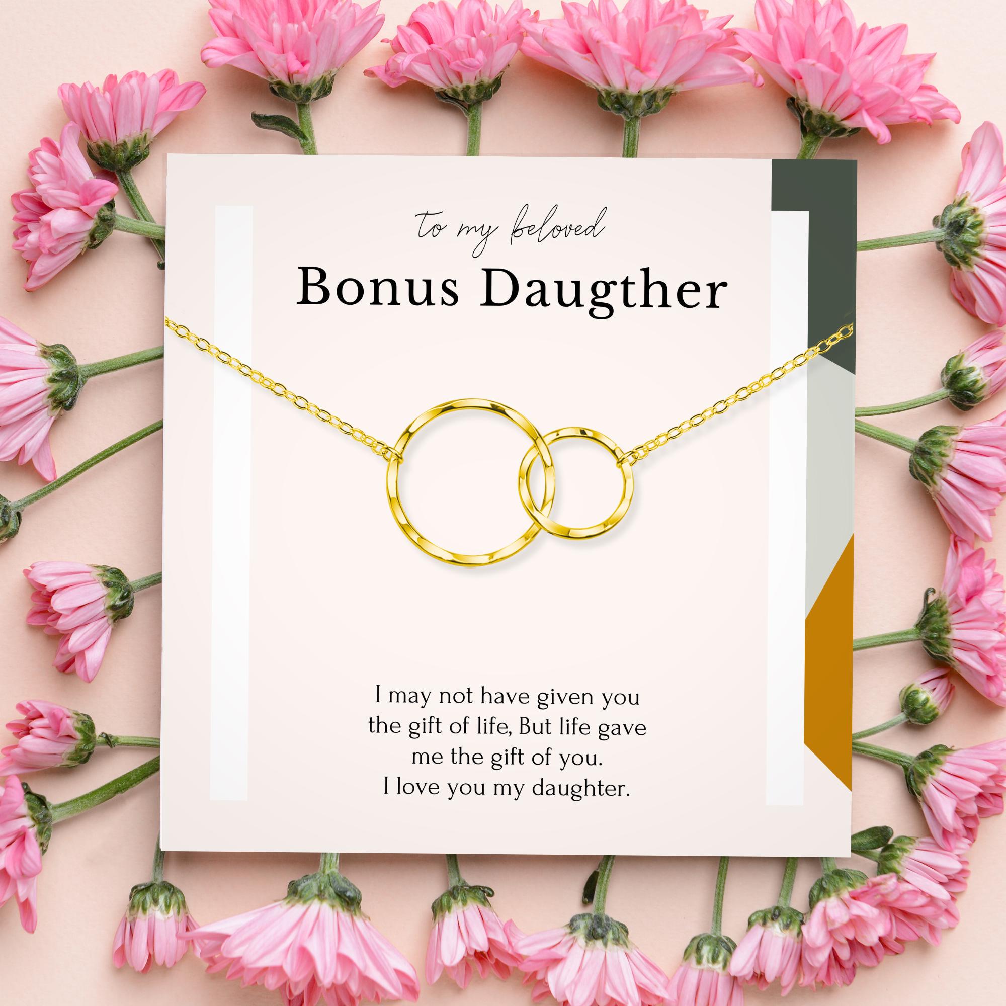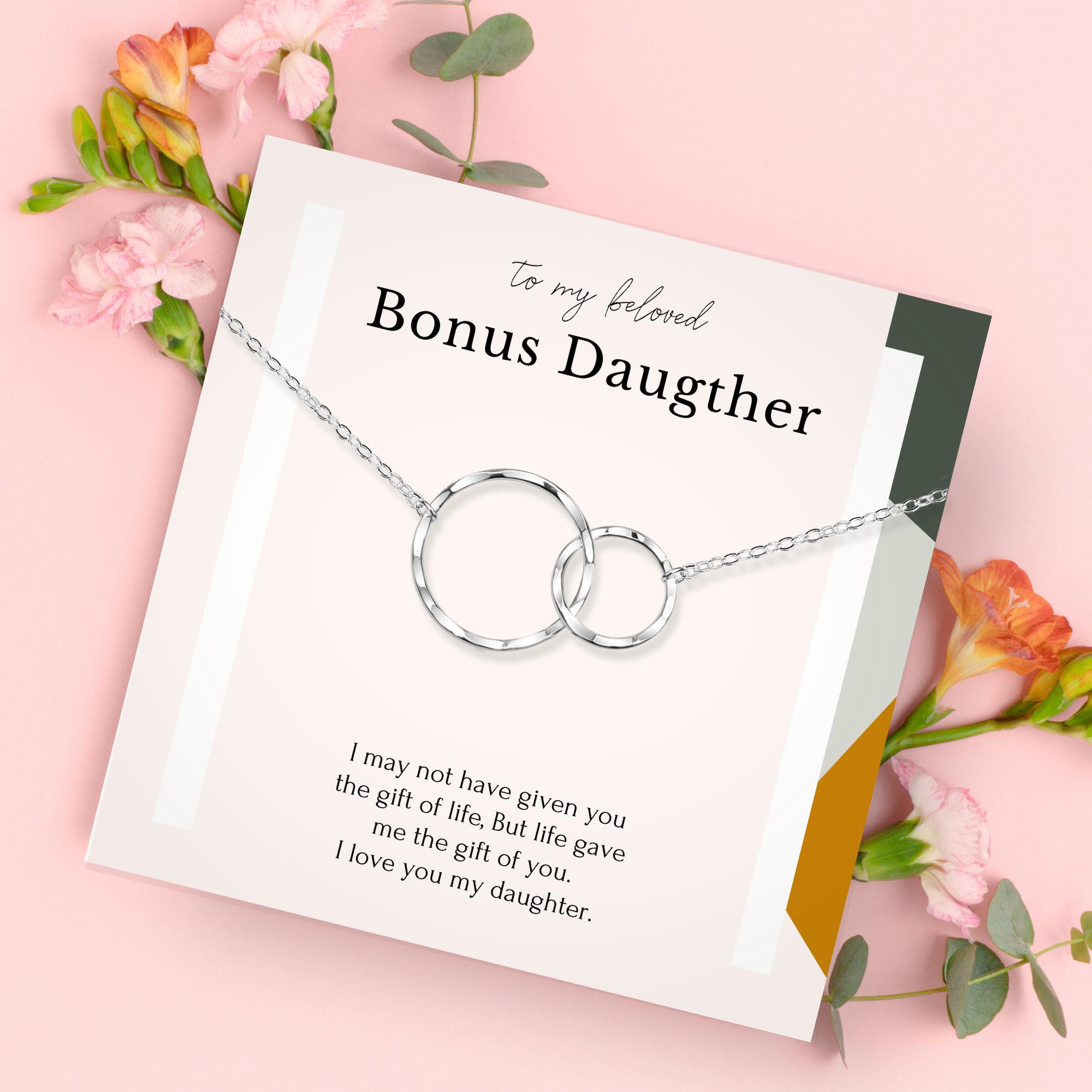 Bonus daughter necklace with card • Birthday gift for stepdaughter • Adopted daughter jewelry • Unbiological daughter necklace