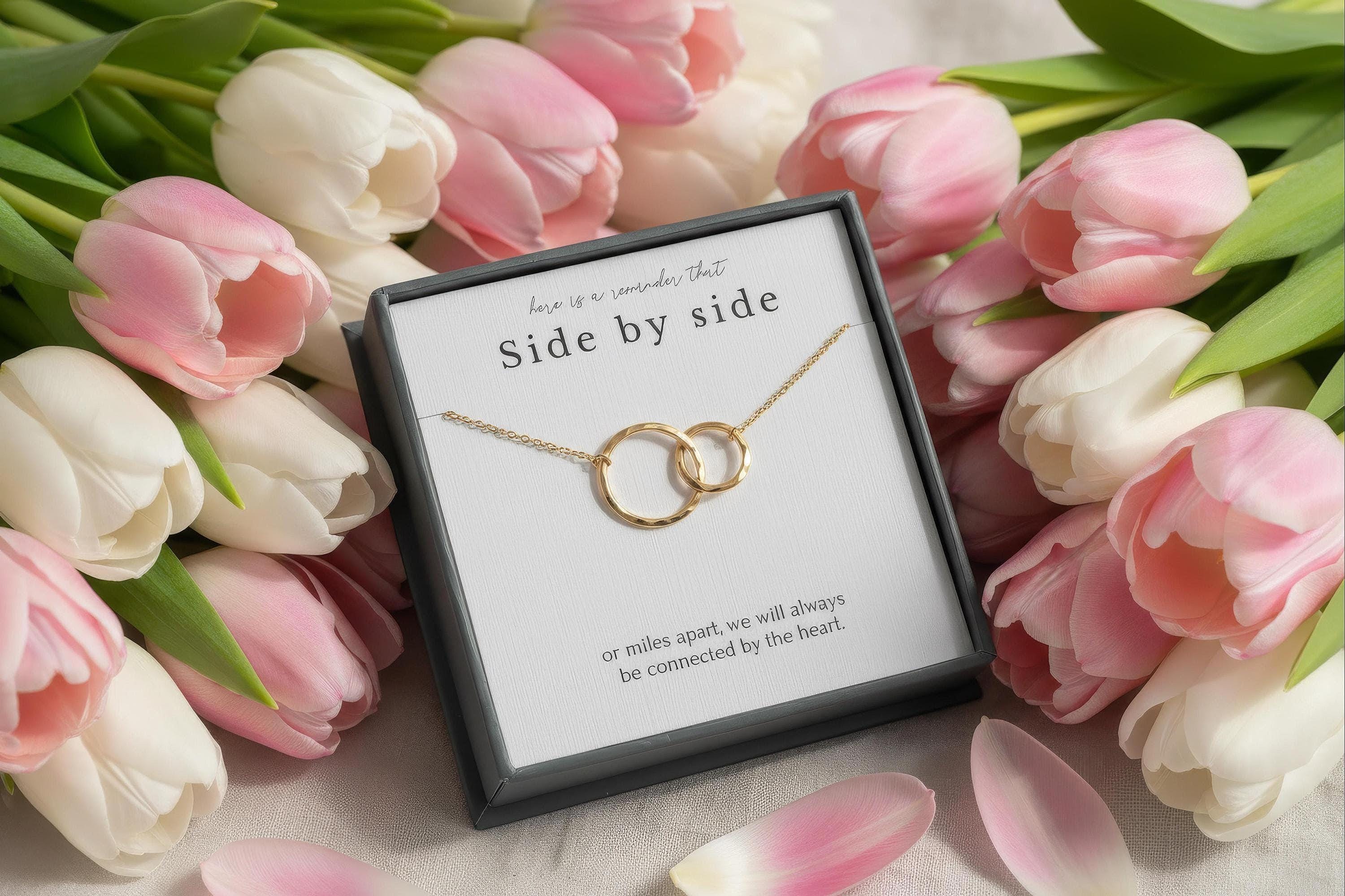 Side by side or miles apart necklace gift for best friend • BFF necklace • Long distance friendship • I miss you gift • Besties birthday jewelry • Gold necklace