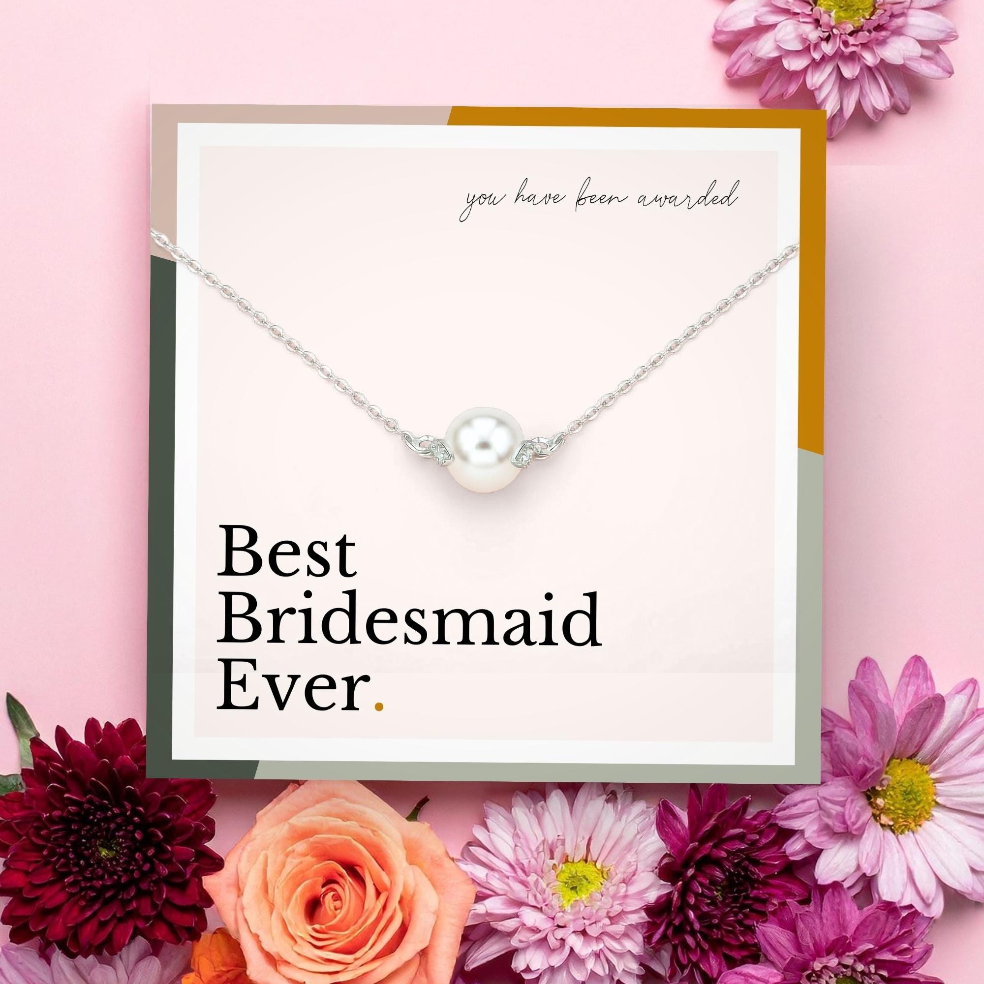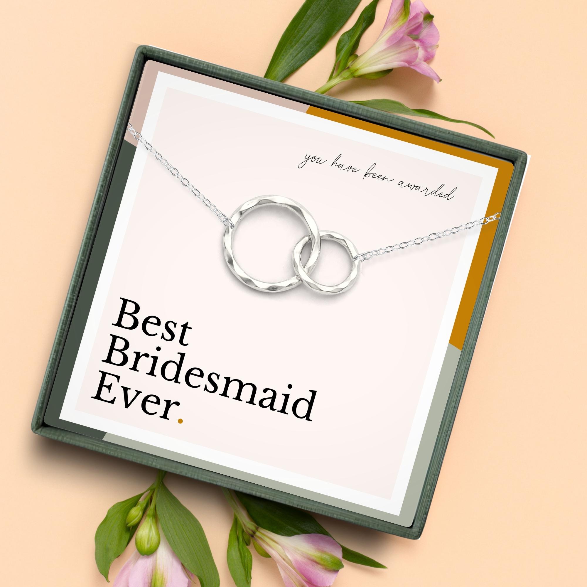 bridesmaid necklace gift from bride on wedding day, best bridesmaid ever, bridal party jewelry gift, bridesmaid thank you gift, gift for bridesmaid from bride, wedding party gift, bridal accessories, necklace with message card