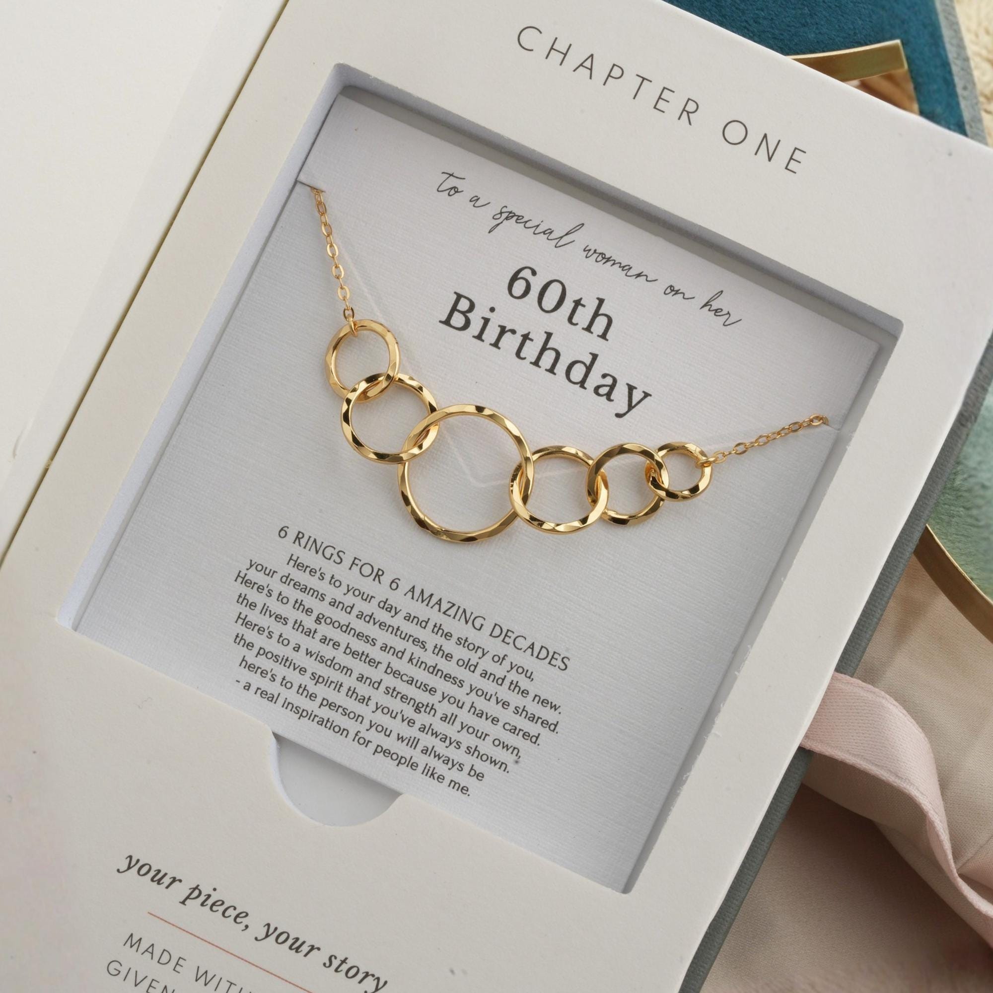 Thoughtful Gift Ideas If You Are Looking For: 60th birthday gifts for women, meaningful 60th birthday jewelry, 6 ring necklace for 6 decades, gift for woman turning 60, birthday gift for 60 year old female, gold necklace for mom’s 60th