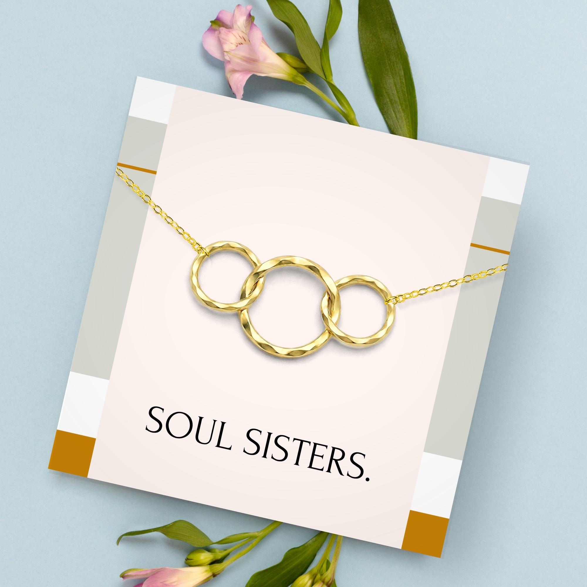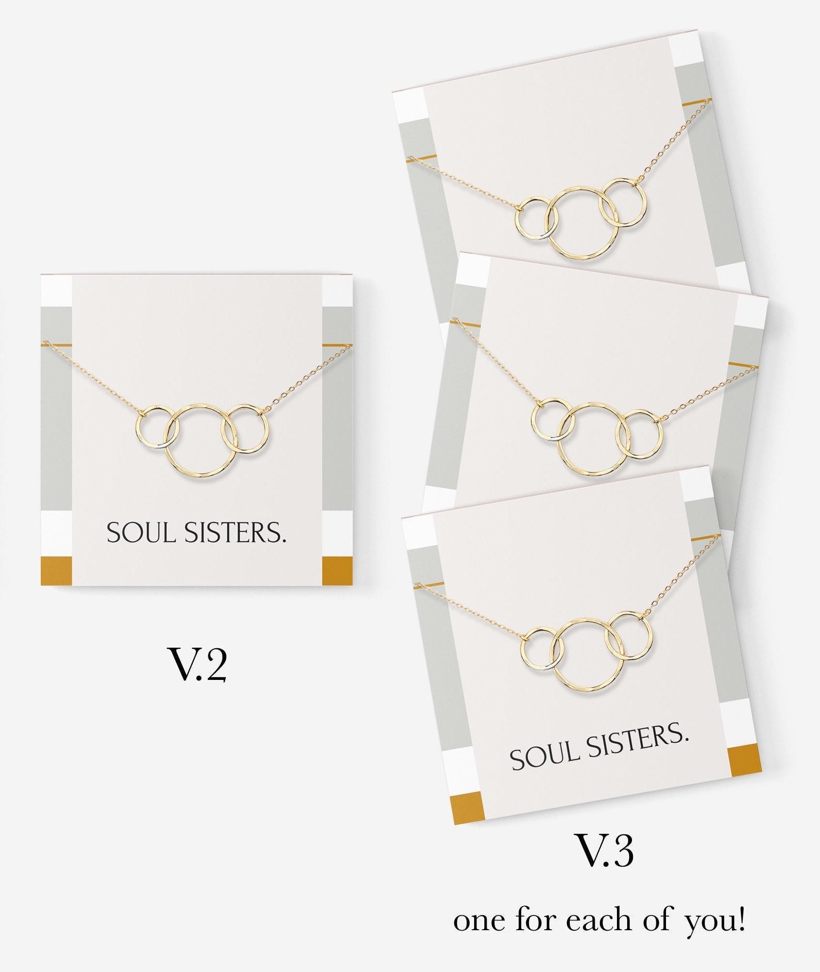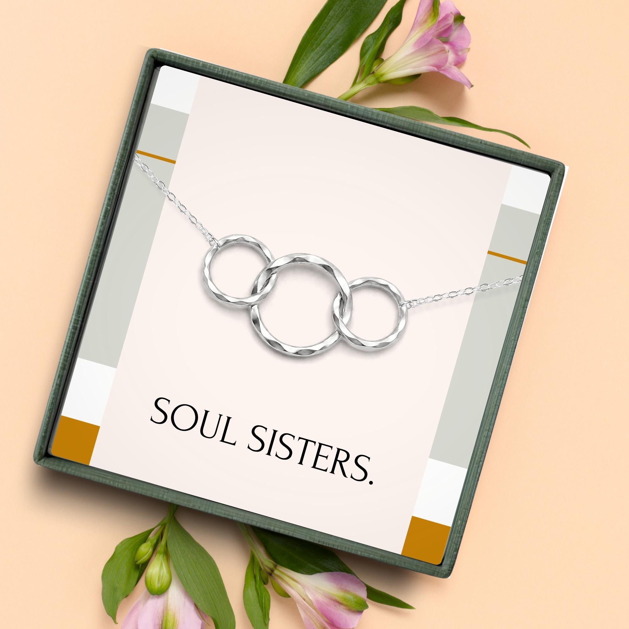 best friend necklace, gift for besties, soul sister jewelry, bridesmaid necklace, gift for BFF, friends forever, sister gifts, three sisters, matching bestie gifts, birthday gift ideas for friends