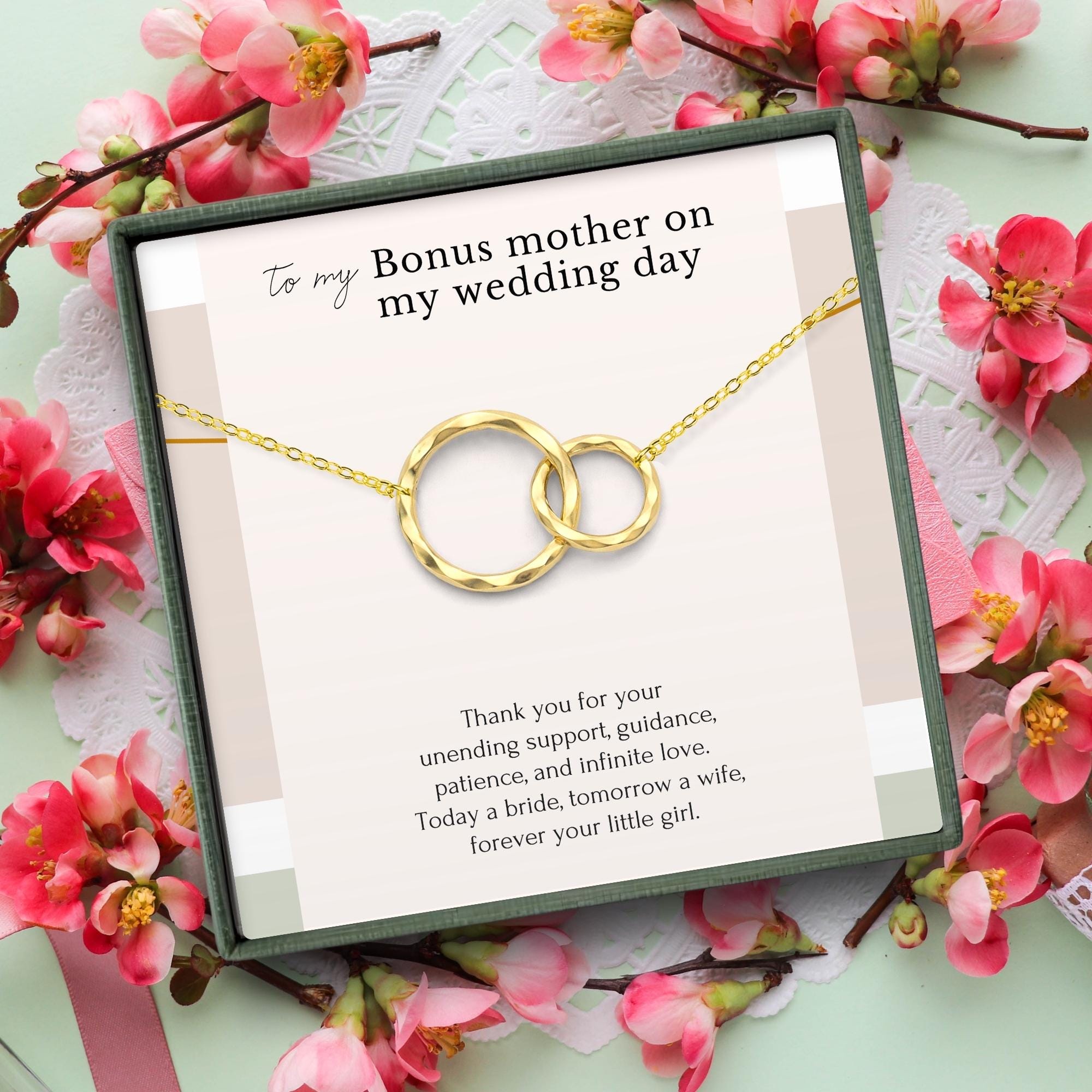 bonus mom wedding gift, stepmom thank you gift, wedding day gift for stepmother, mother of the groom gift, emotional gift from bride, chosen family jewelry, meaningful mom figure present