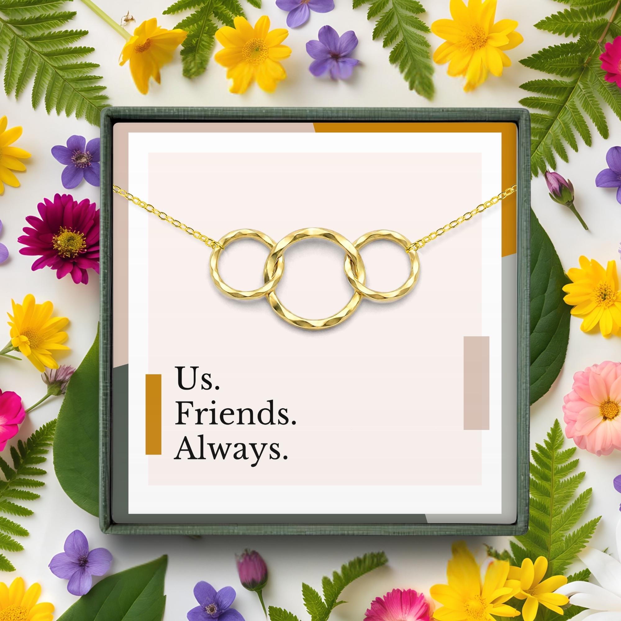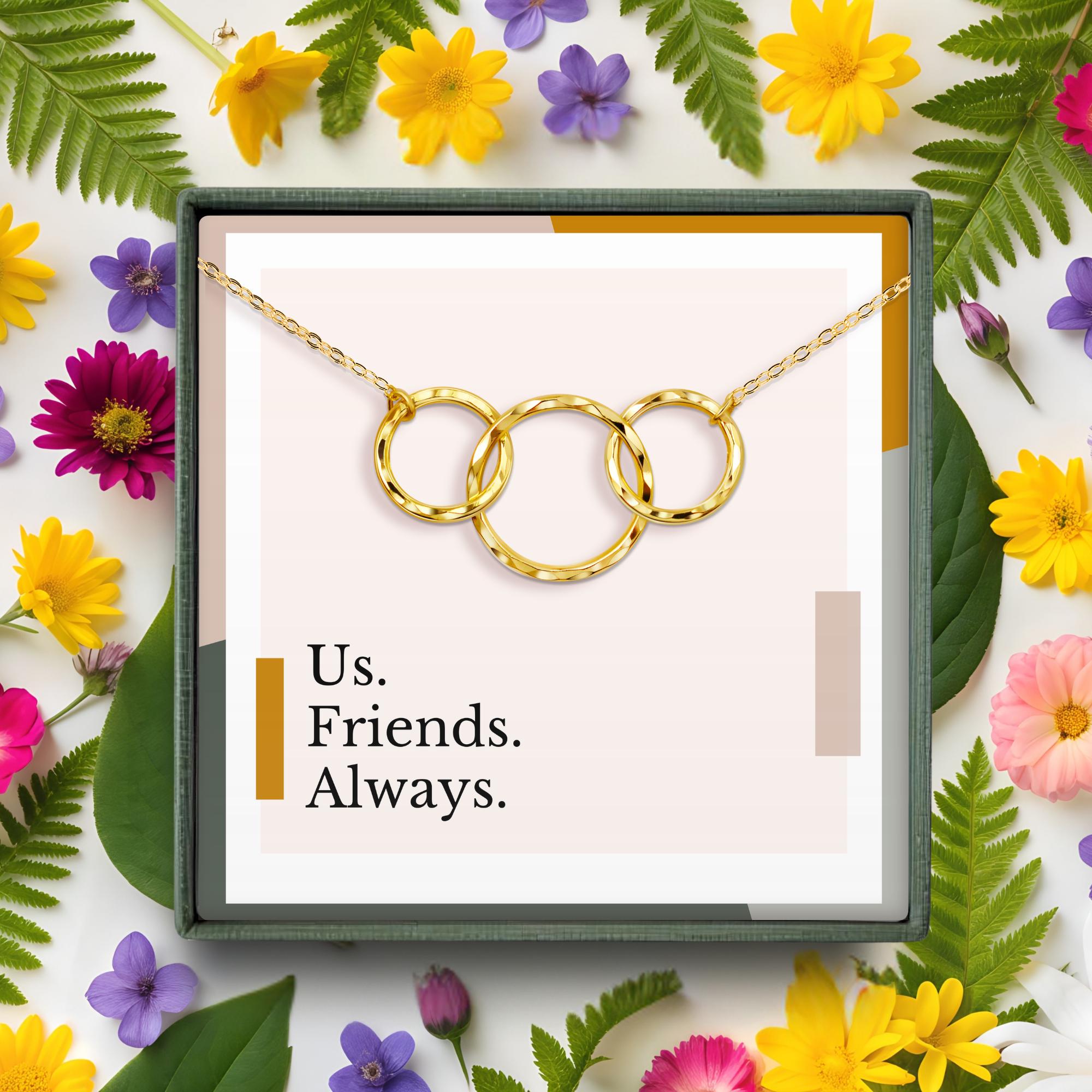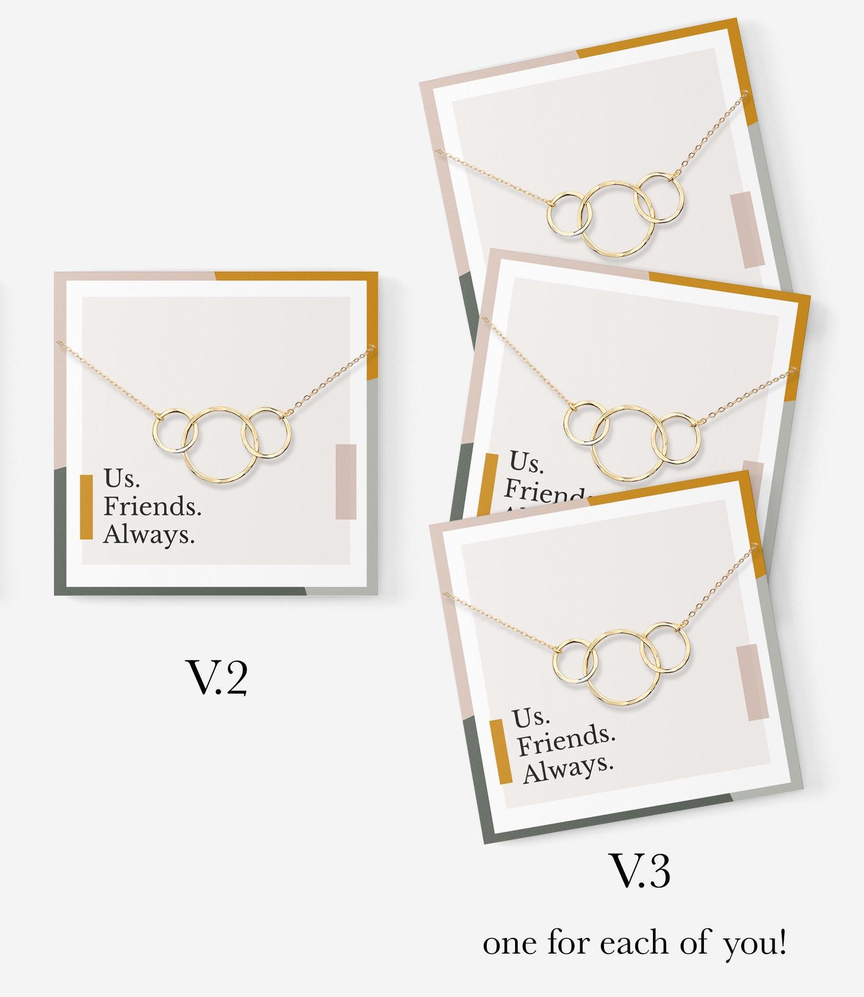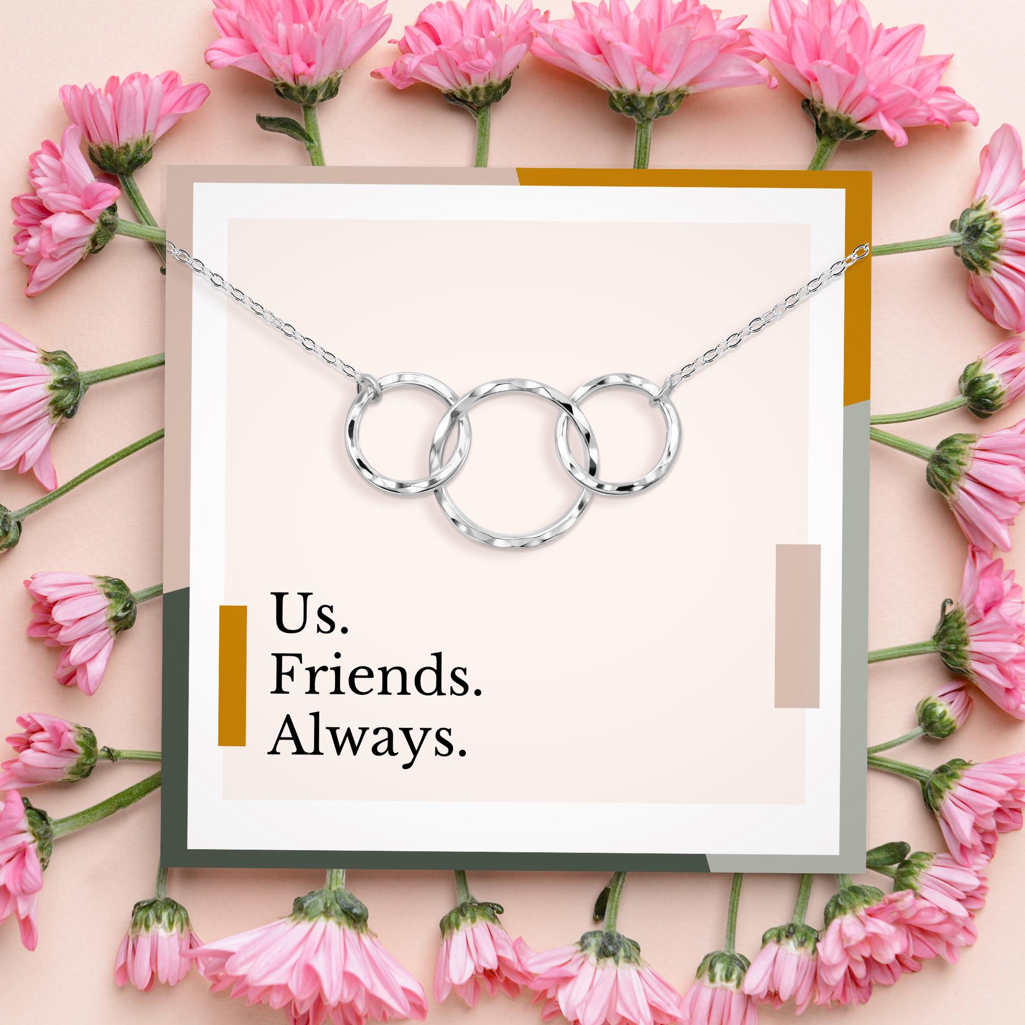 They say two's company and three's a crowd, but that isn't the case when it comes to you and your two sisters. With the option to get a single necklace with 3 interlocking rings, or a set of 3 matching 2-ring necklaces with one for each sister, this is a piece of jewelry she will hold close to her heart. Beautifully packaged, this gift is ready to give right away!