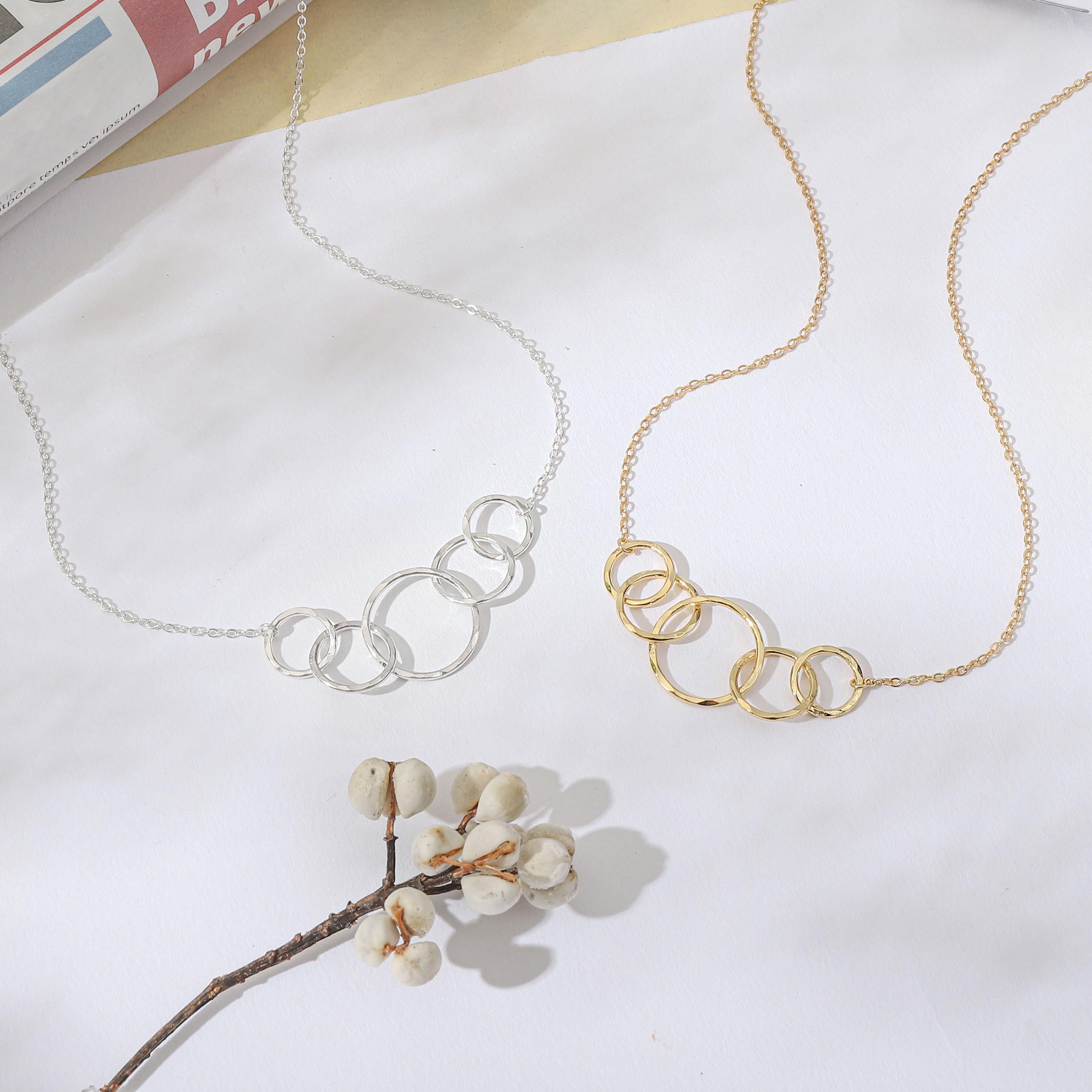 Your mom has spent her life raising and guiding you. Show her how grateful you are to have her as your mom with this beautiful 5 ring eternity necklace. 4 small rings on either side of 1 large ring symbolizes the unbreakable bond between a mother and her four children. Available in sterling silver or 14k gold vermeil, this is a gift she is sure to hold close to her heart.