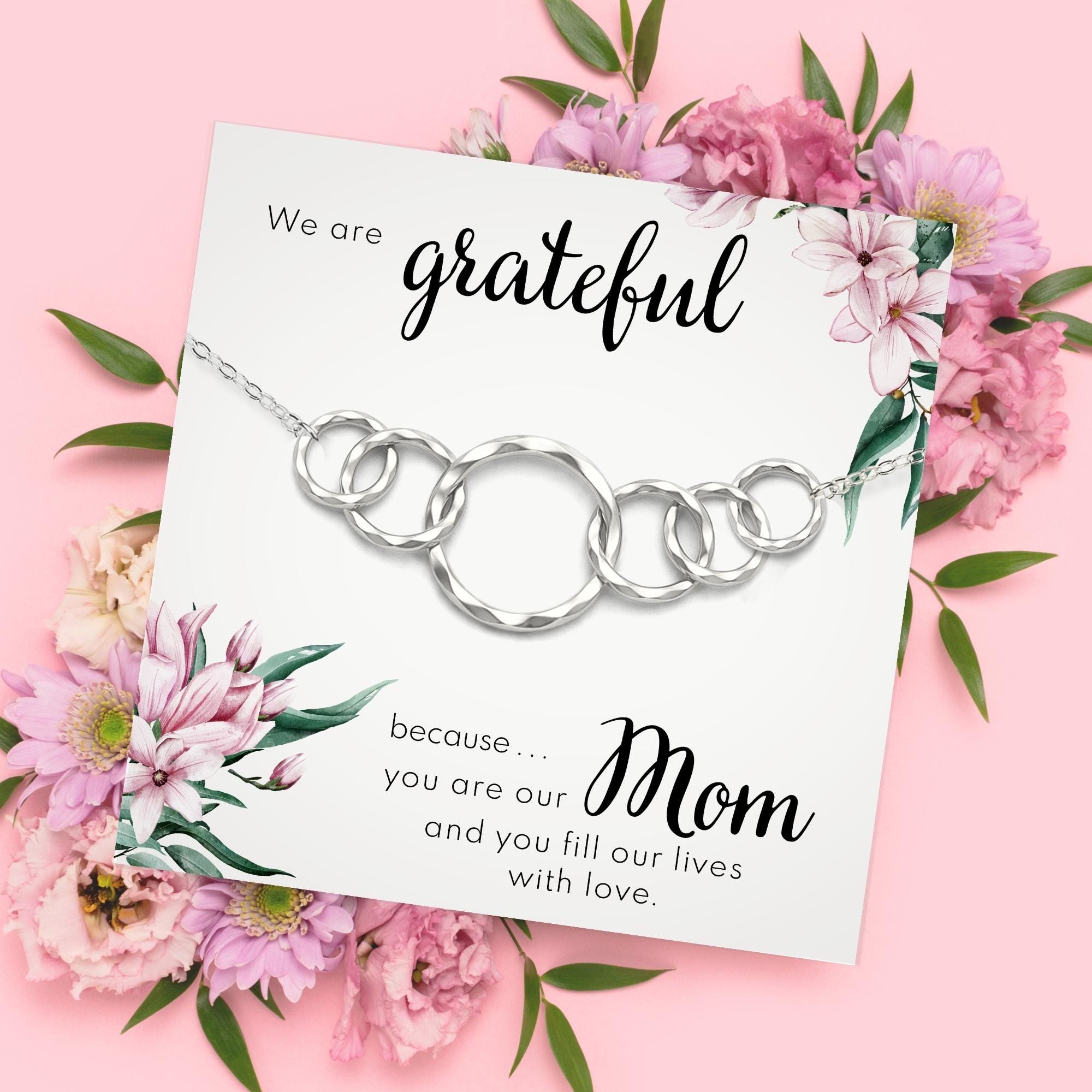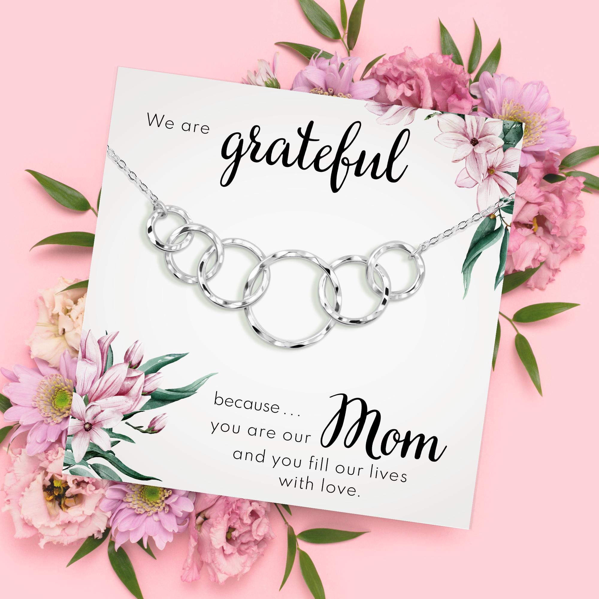 Gift for mom from 5 kids • Mother's day from daughters • Thank you mom • Necklace for mother from two children • Jewelry from son daughter