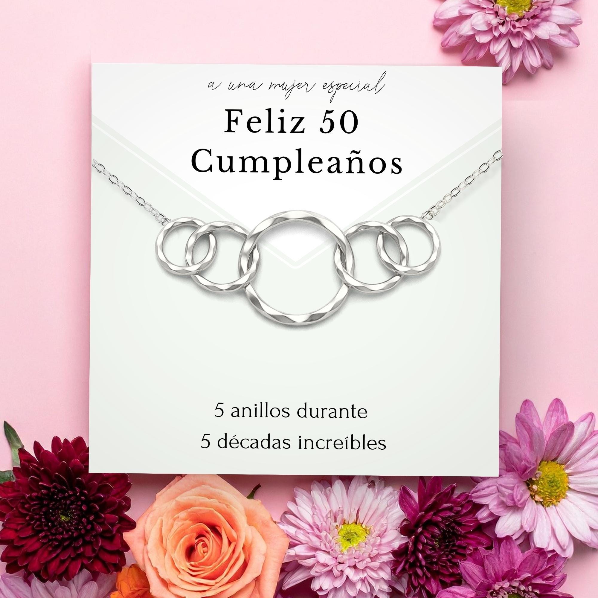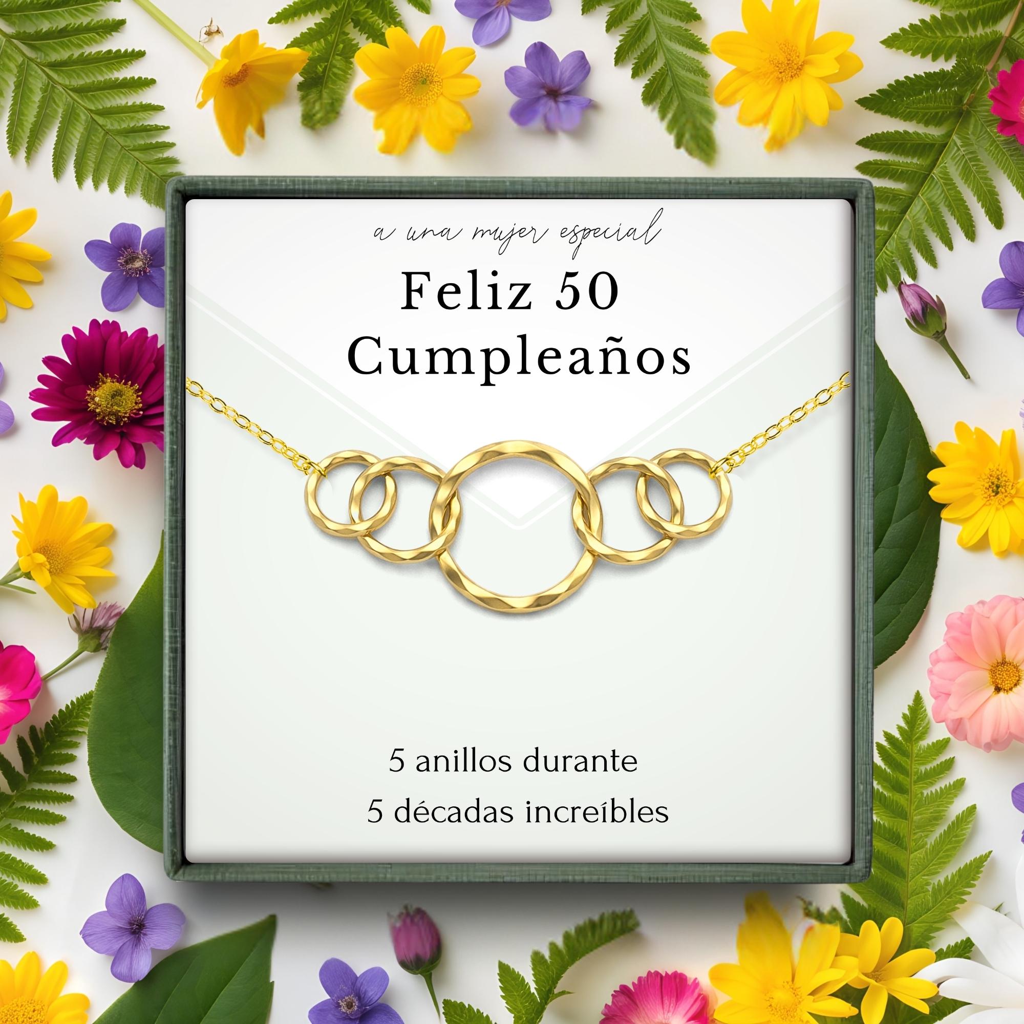 Regalo de 50 cumpleaños para mujer • 5 anillos durante 5 décadas • Joyas de 50 cumpleaños • Collar de regalo para ella