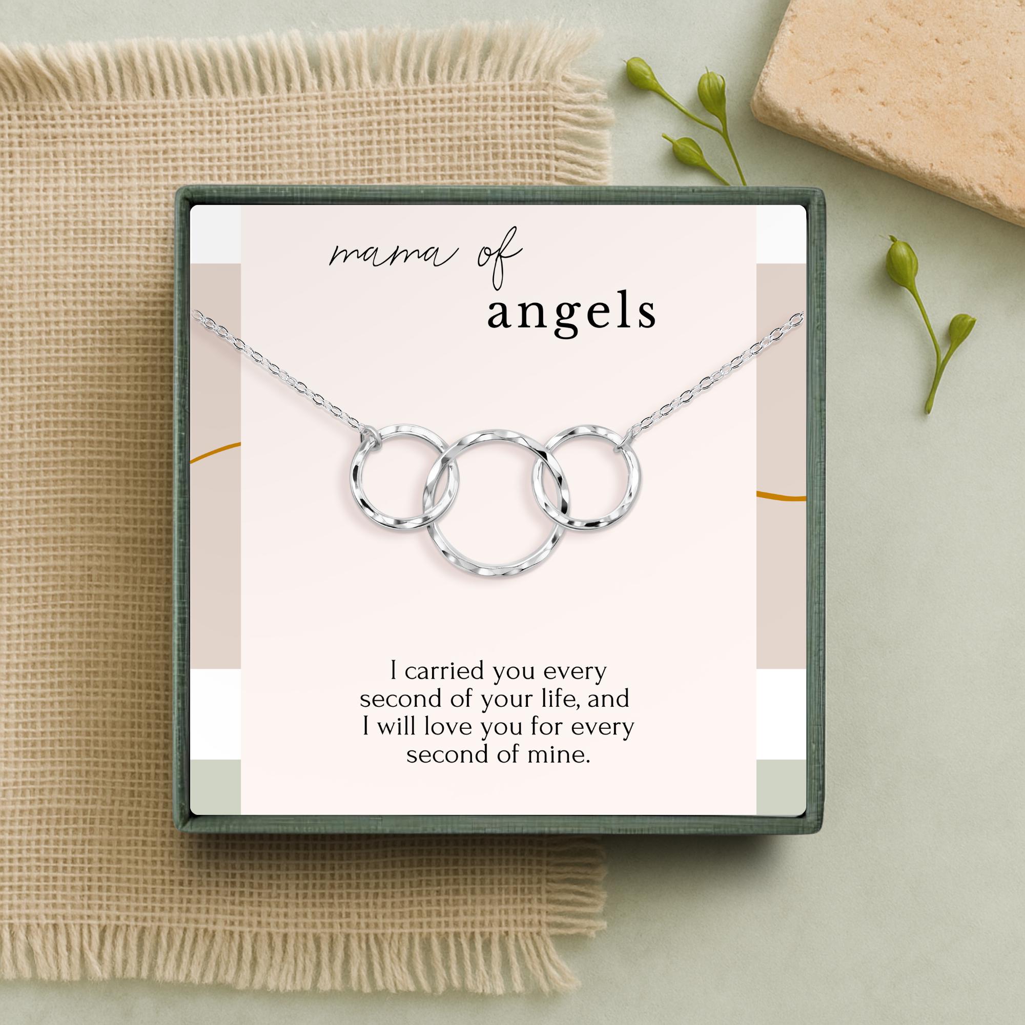 Twin baby loss necklace, angel baby memorial gift, remembrance jewelry for mom — this 3-ring necklace was created to honor the life and love of twins lost too soon. Each ring holds space for grief, connection, and the bond a mother carries forever. For the woman whose arms are empty, but whose heart is full of love.