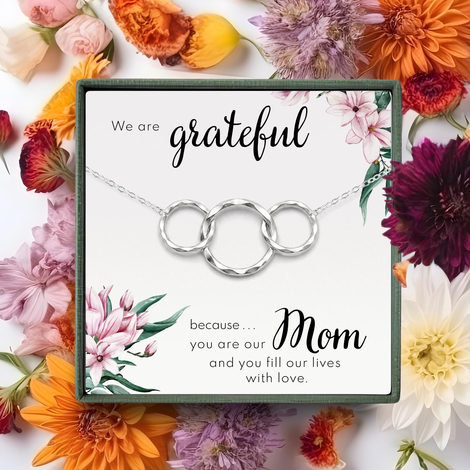 Gift for mom from kids • Mother''s day from daughters • Thank you mom • Necklace for mother from two children • Jewelry from son daughter