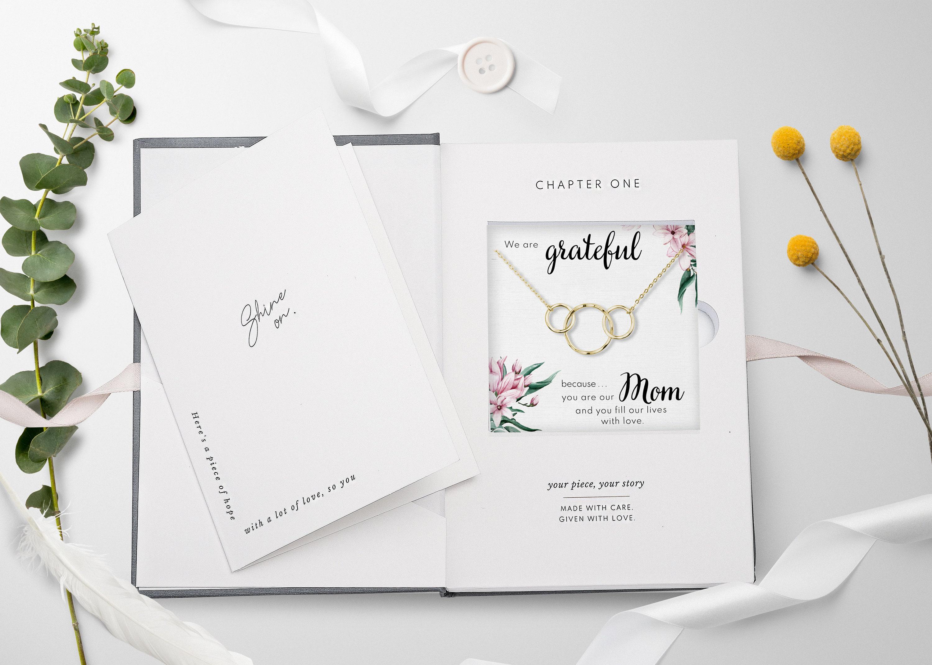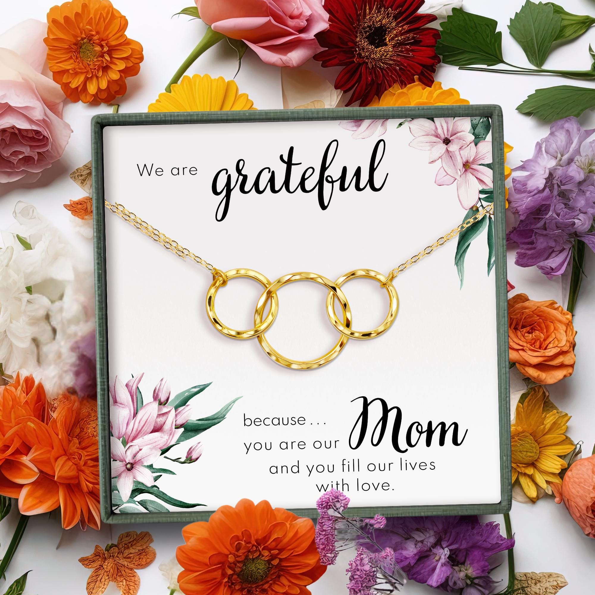 Your mom has spent her life raising and guiding you. Show her how grateful you are to have her as your mom with this beautiful 3 ring eternity necklace. 2 small rings on either side of 1 large ring symbolizes the unbreakable bond between a mother and her two children. Available in sterling silver or 14k gold vermeil, this is a gift she is sure to hold close to her heart.