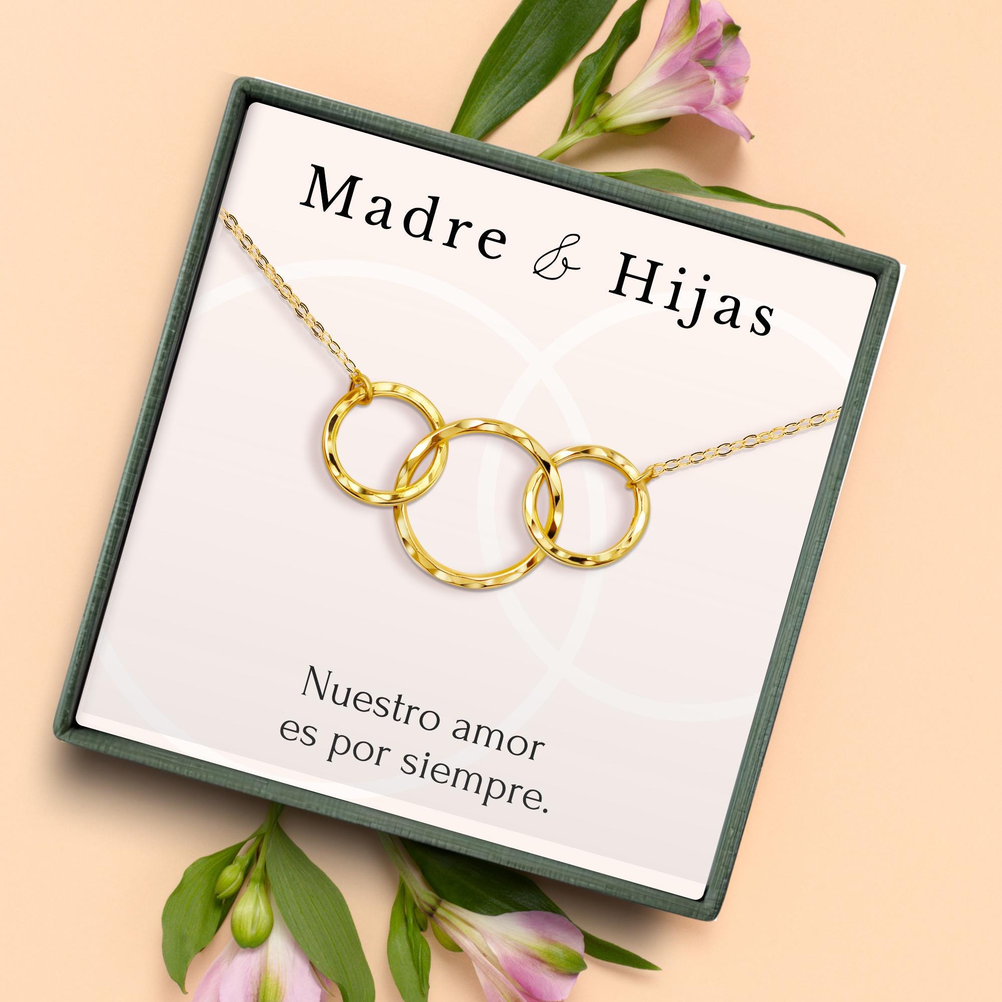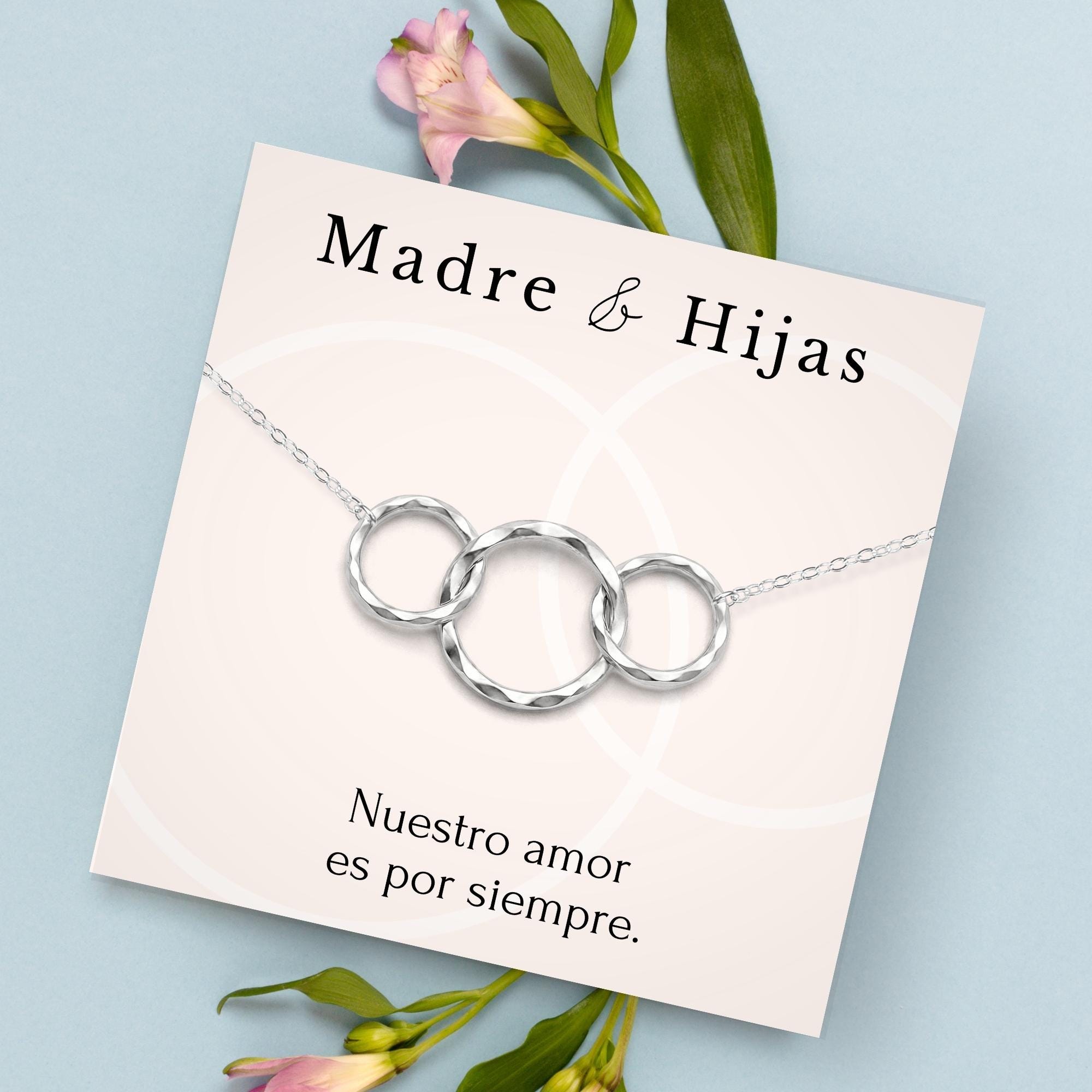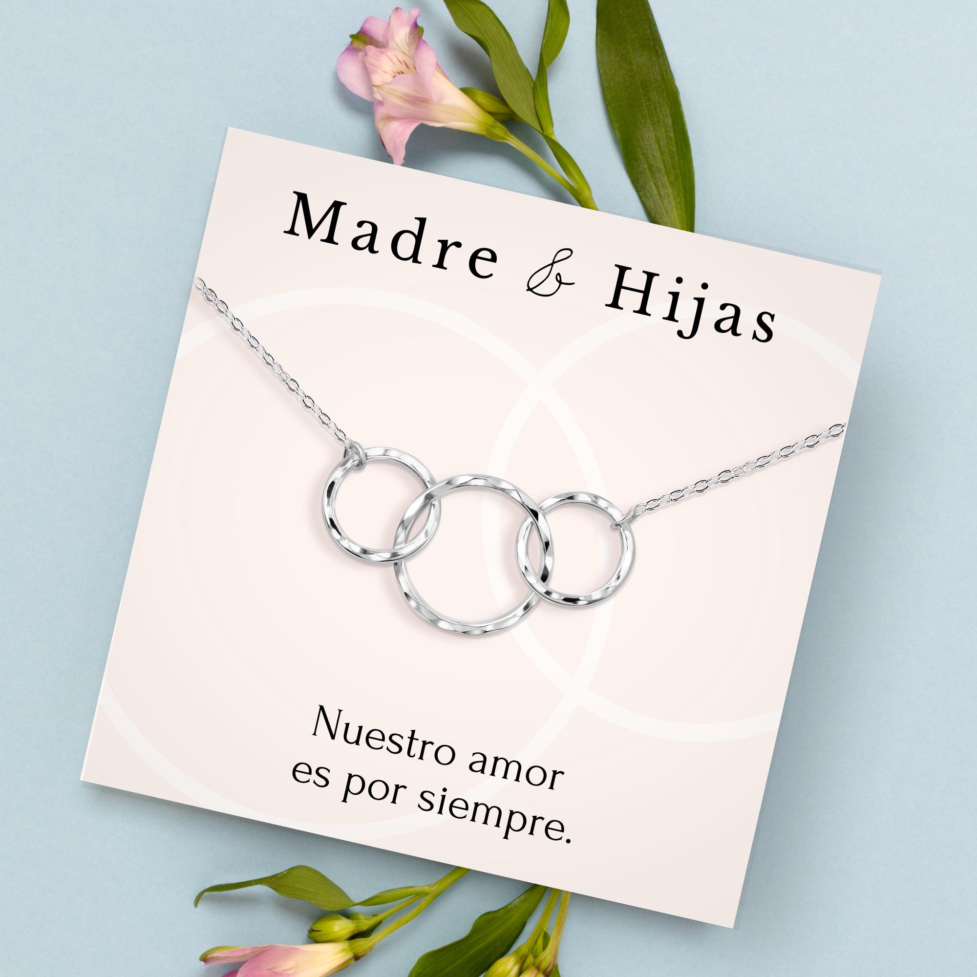 The necklace comes ready to gift in a keepsake box with the Spanish message: Madre & Hijas — Nuestro amor es por siempre. A heartfelt reminder that the love between a mother and her daughters is infinite.