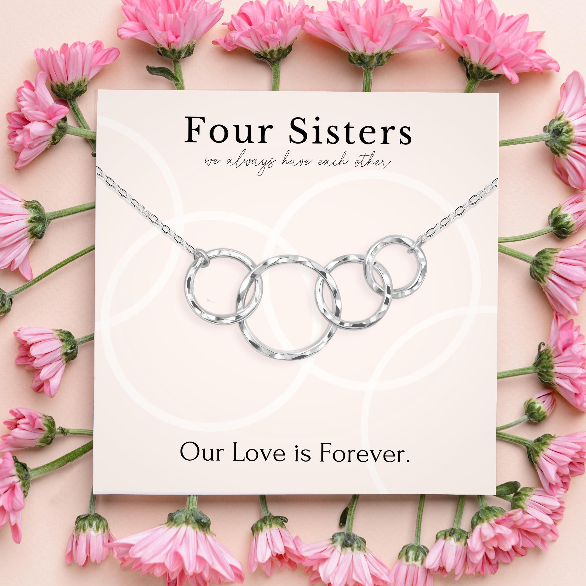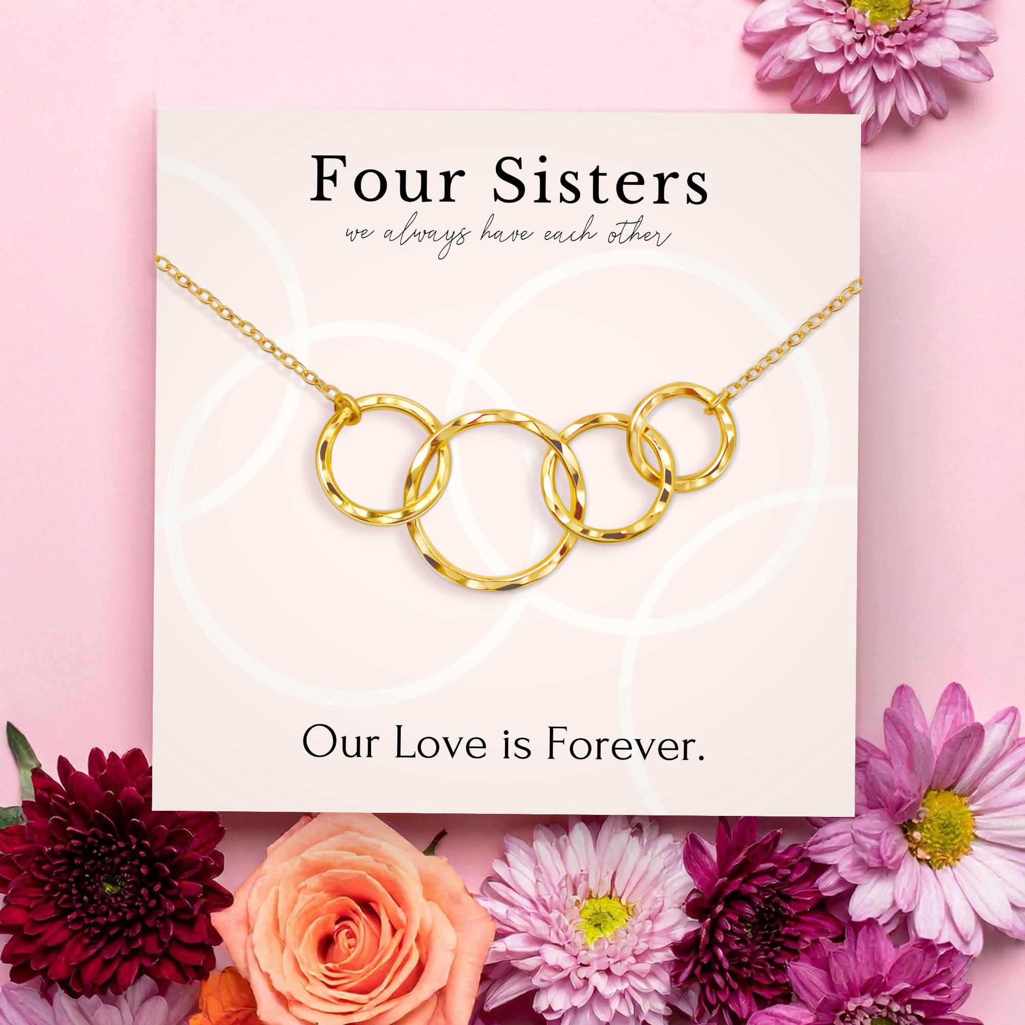 4 sisters necklace jewelry gift • 4 rings for 4 sisters necklace • Christmas present for sisters of four • Birthday gift for sisters