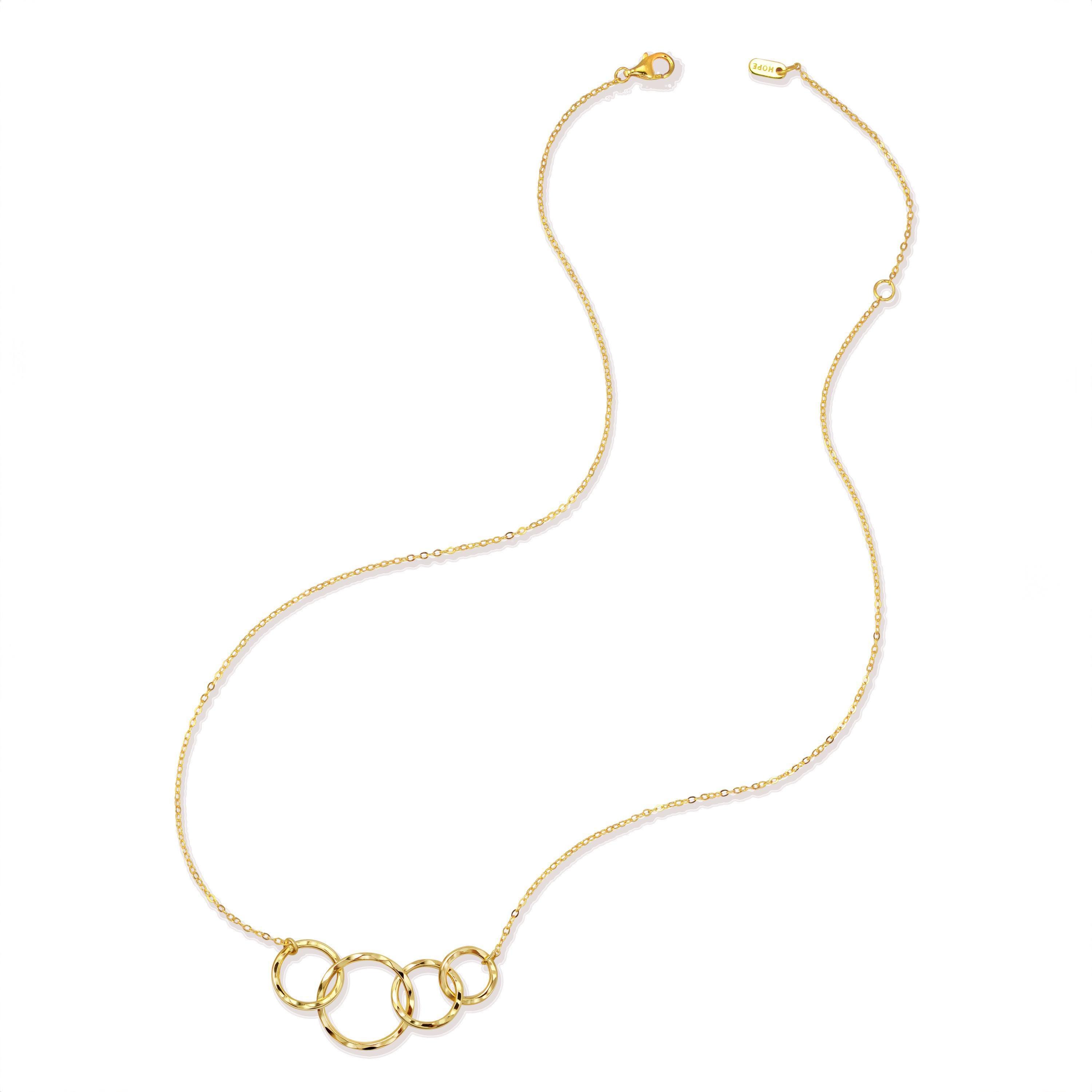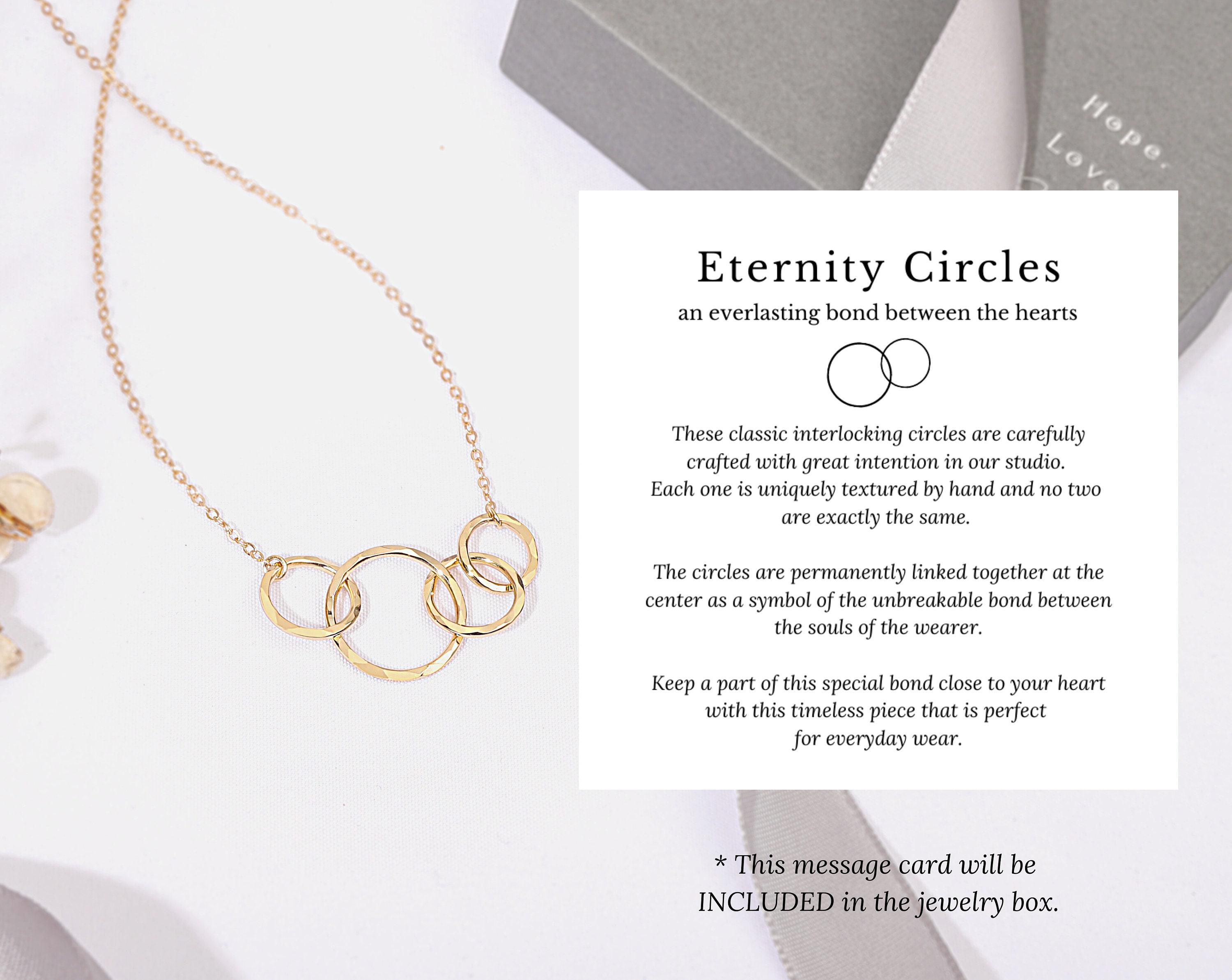 You have learned so much from your sisters and can't imagine your life without them. Celebrate your love with with this meaningful necklace, representing your unbreakable bonds. This interlocking circle necklace features 4 rings for 4 beautiful sisters. Each ring is uniquely textured by hand and no two are the same - just like each of you!