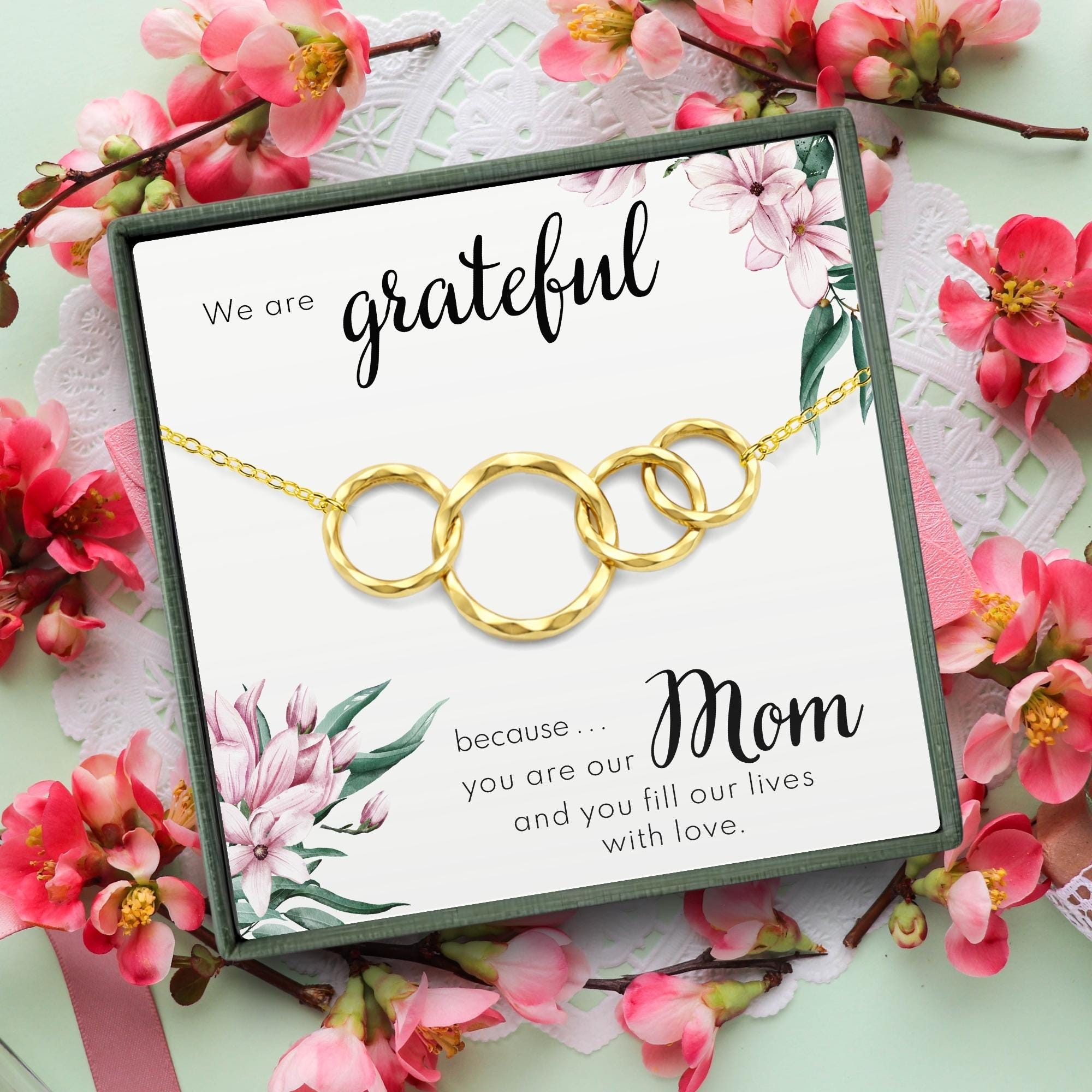 Gift for mom from kids • Mother's day from daughters • Thank you mom • Necklace for mother from 3 children • Jewelry from sons + daughters