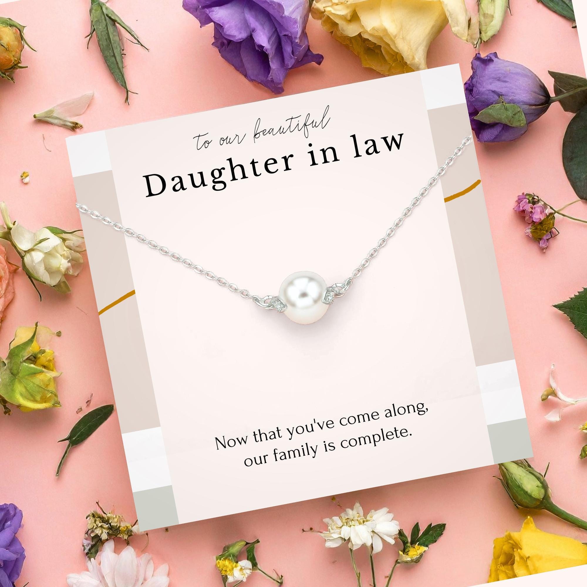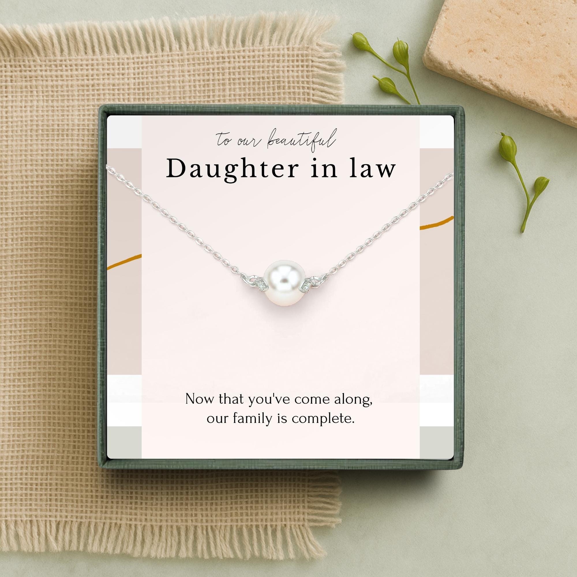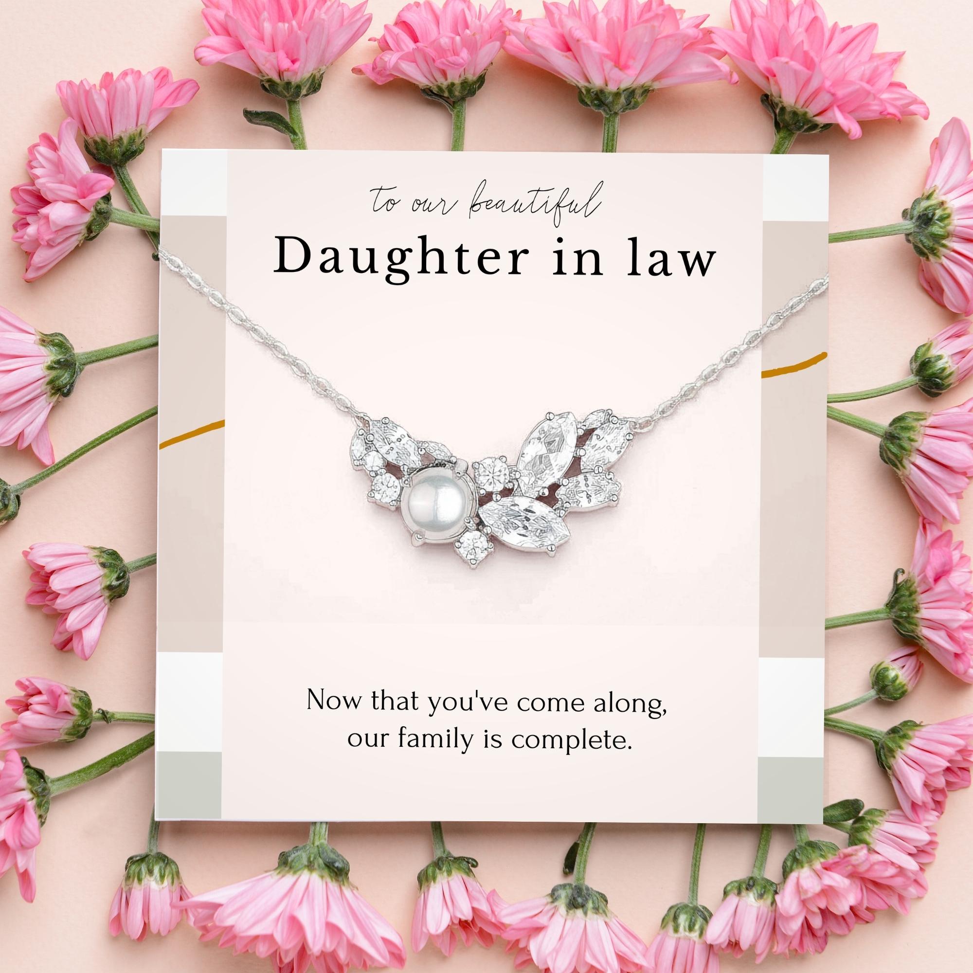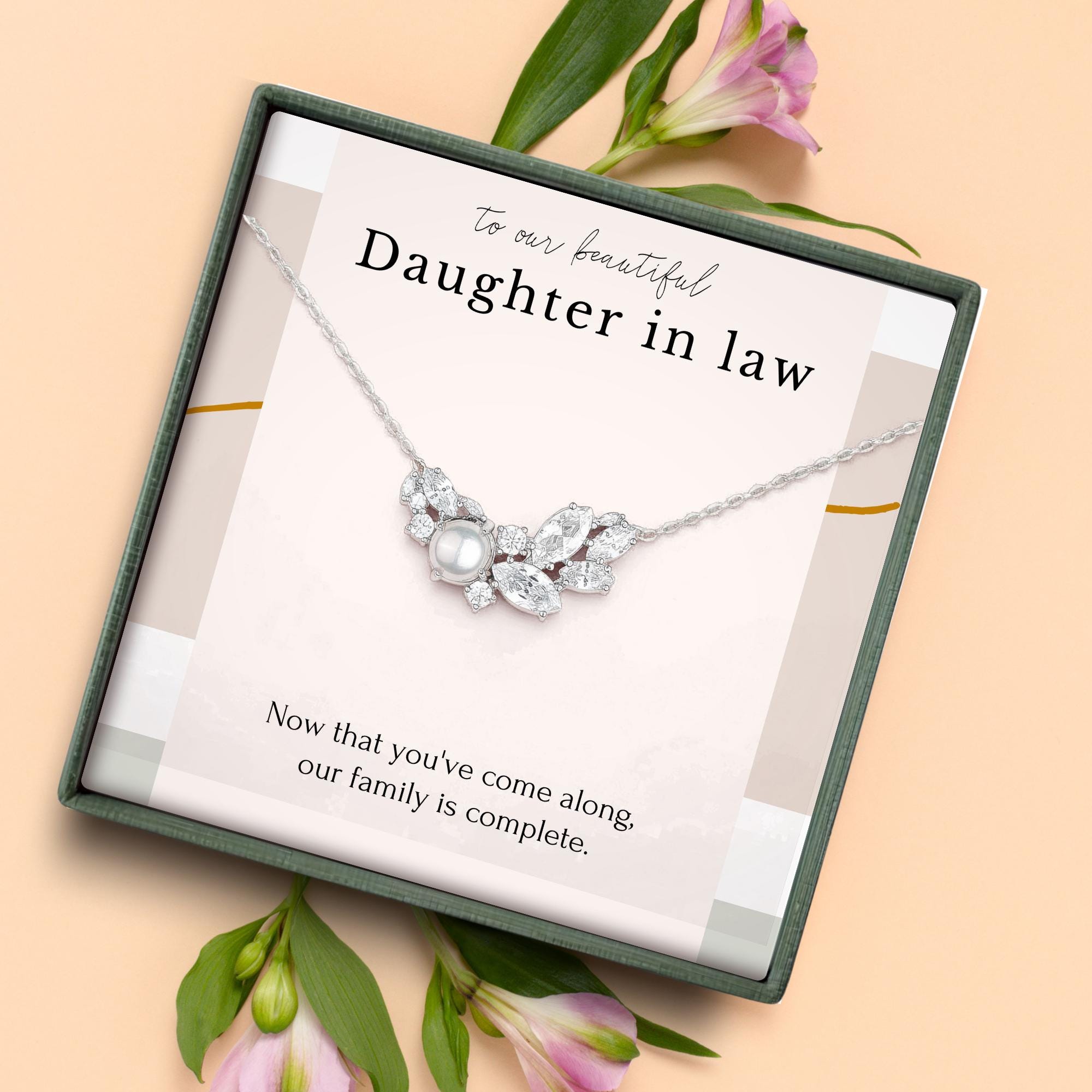 You spent your life raising your son to be the wonderful man he is today, and he has repaid you by bringing the perfect addition to your family. Welcome your new daughter-in-law with this stunning jewelry gift. Beautifully packaged with a meaningful message, this is a gift she is sure to love. With an option to choose either a pearl necklace or a pearl & crystal necklace, there is something to fit every style.