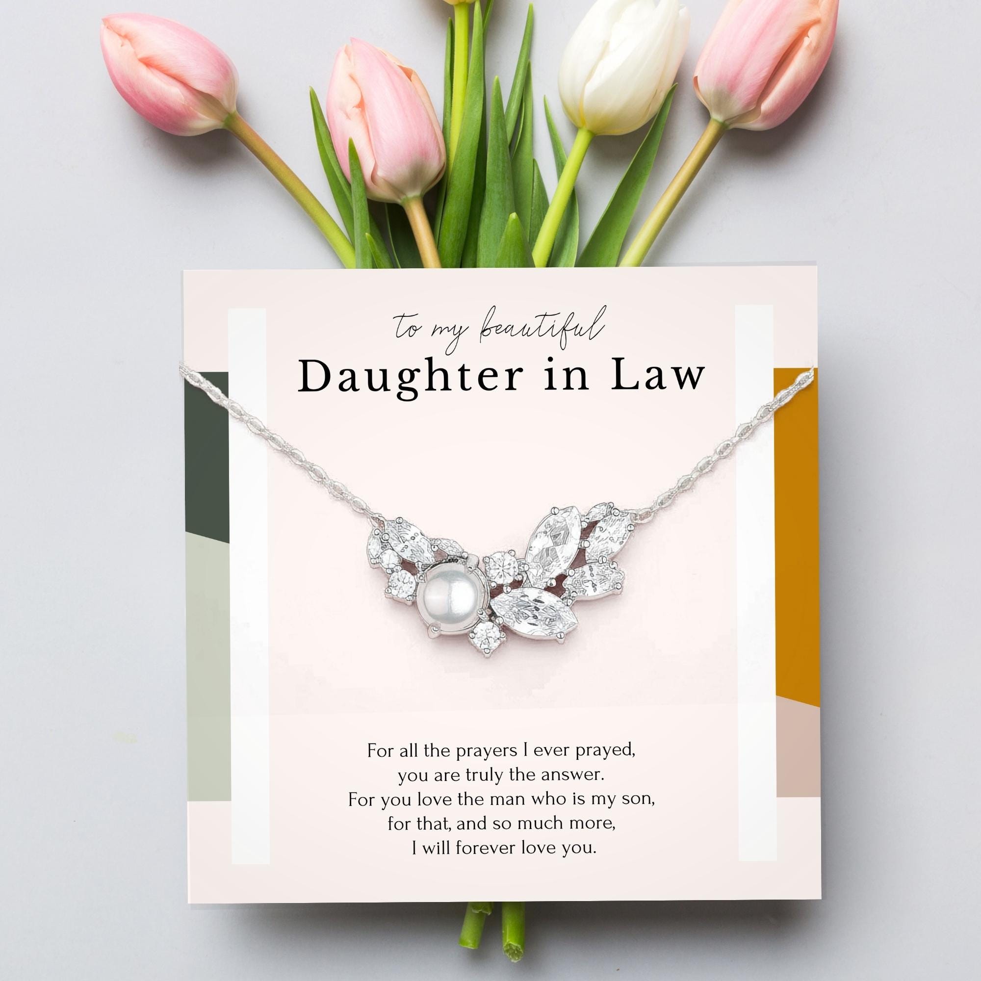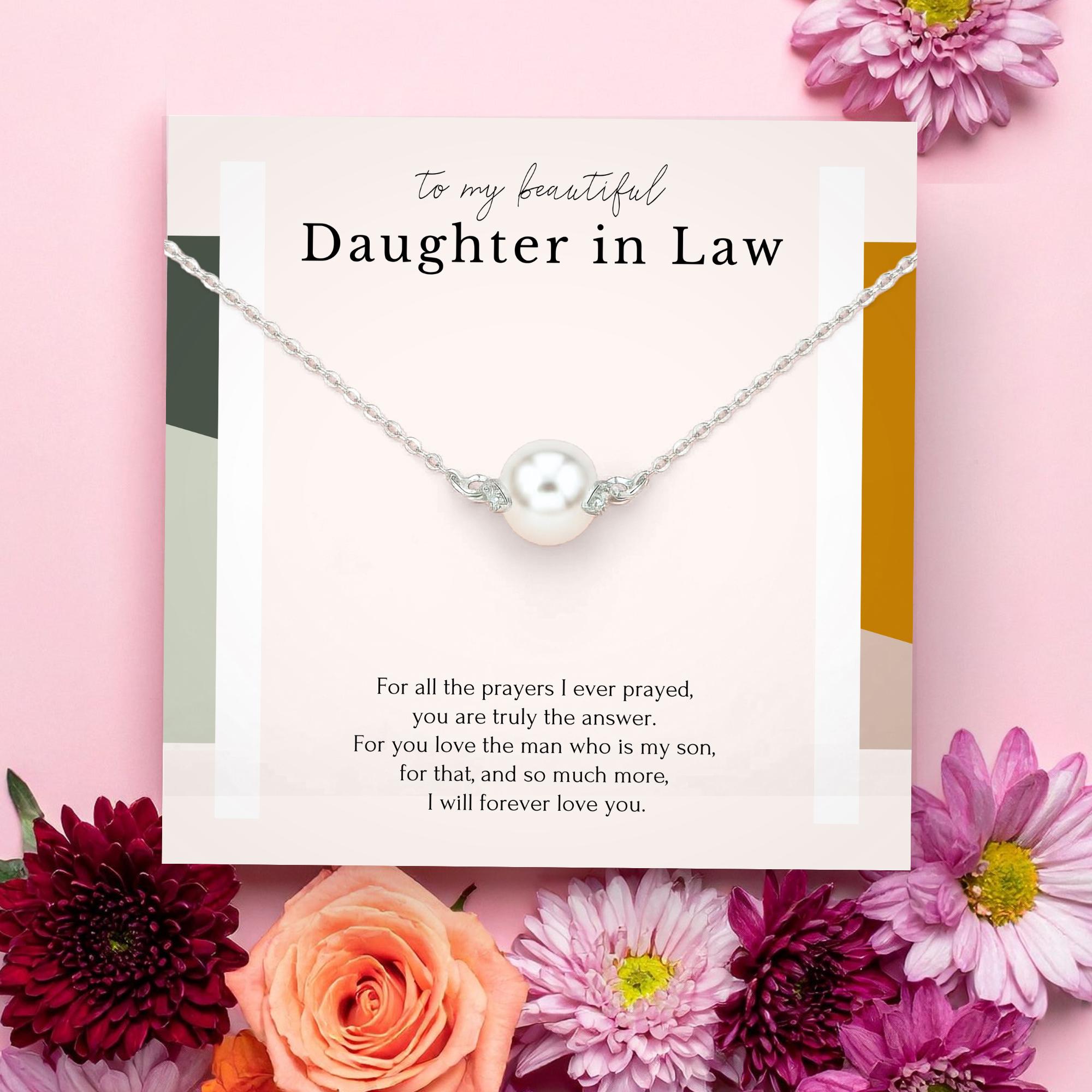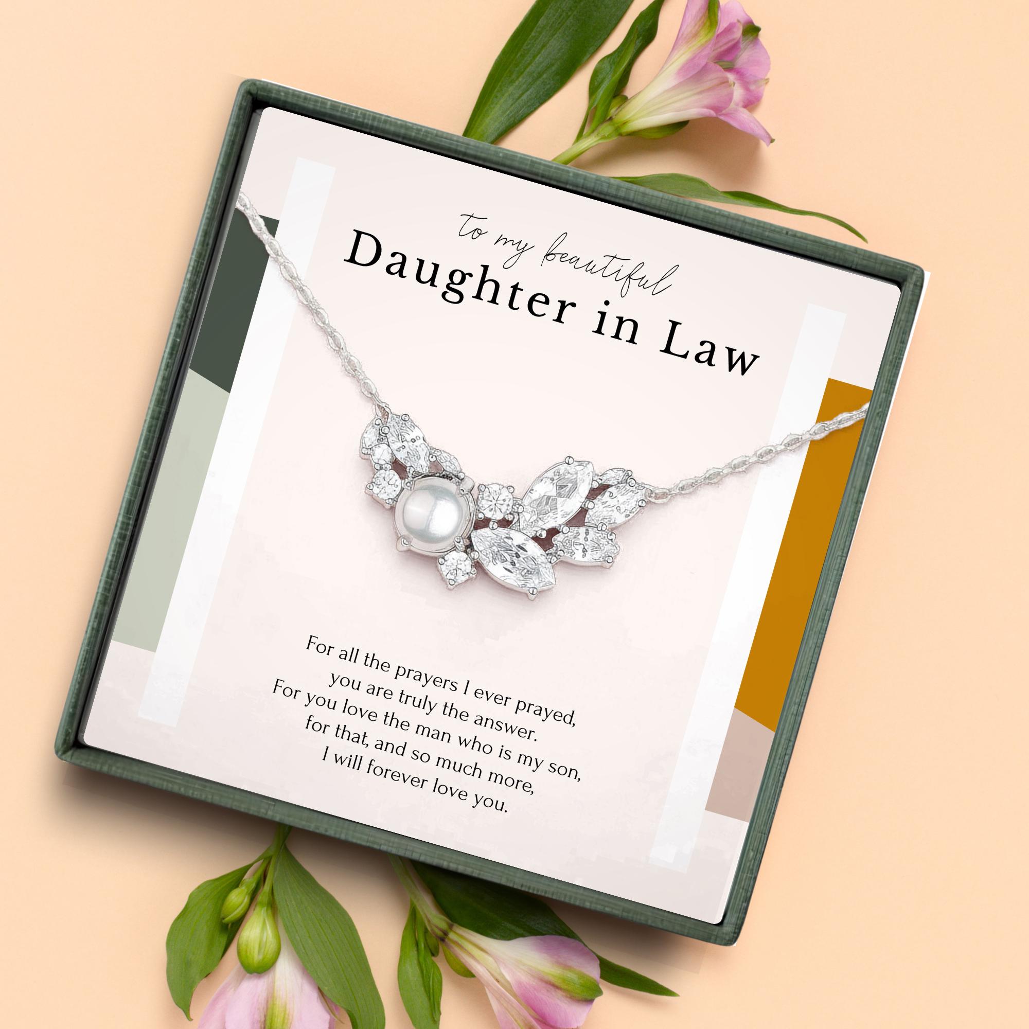 You spent your life raising your son to be the wonderful man he is today, and he has repaid you by bringing the perfect addition to your family. Welcome your new daughter-in-law with this stunning jewelry gift. Beautifully packaged with a meaningful message, this is a gift she is sure to love. With an option to choose either a pearl necklace or a pearl & crystal, there is something to fit every style.