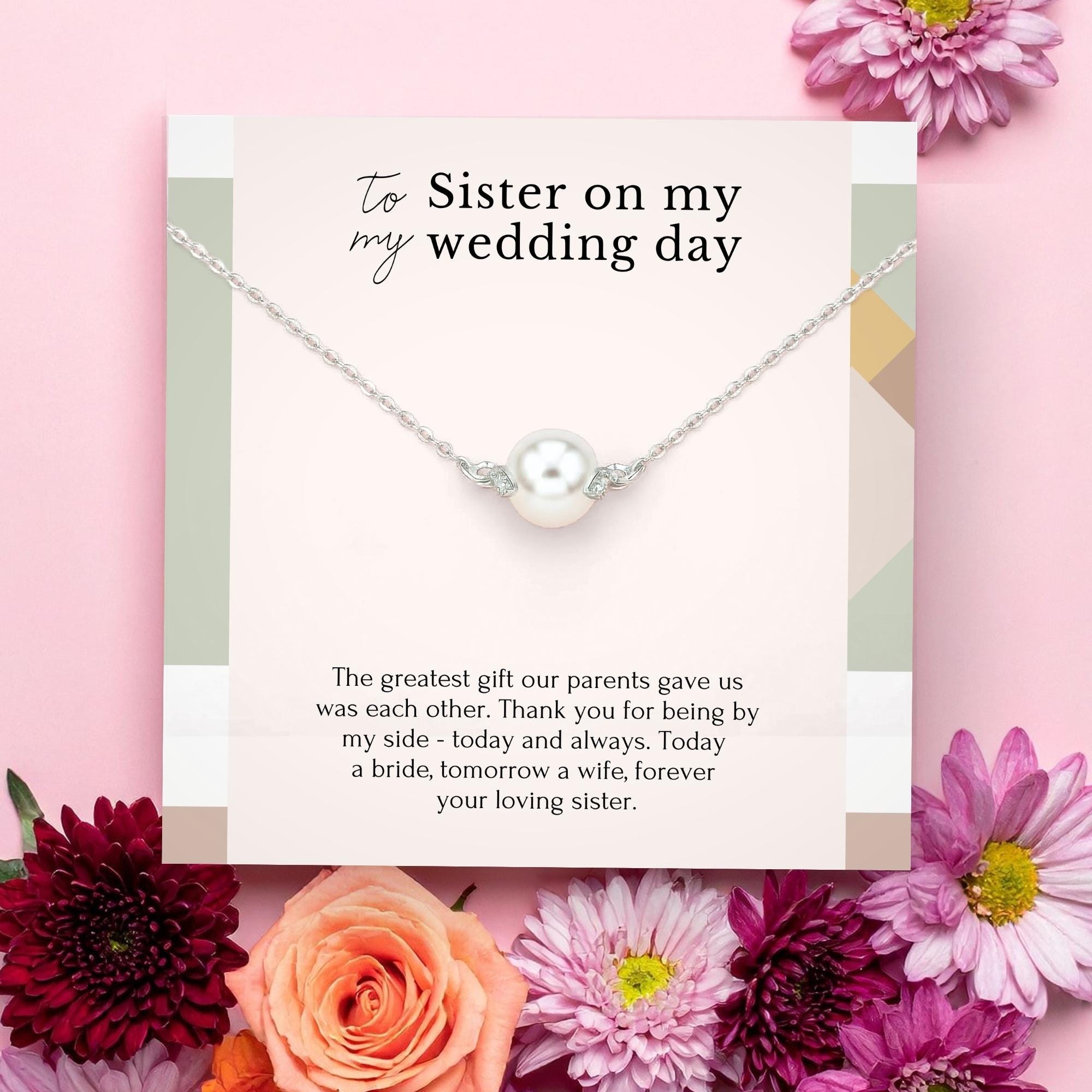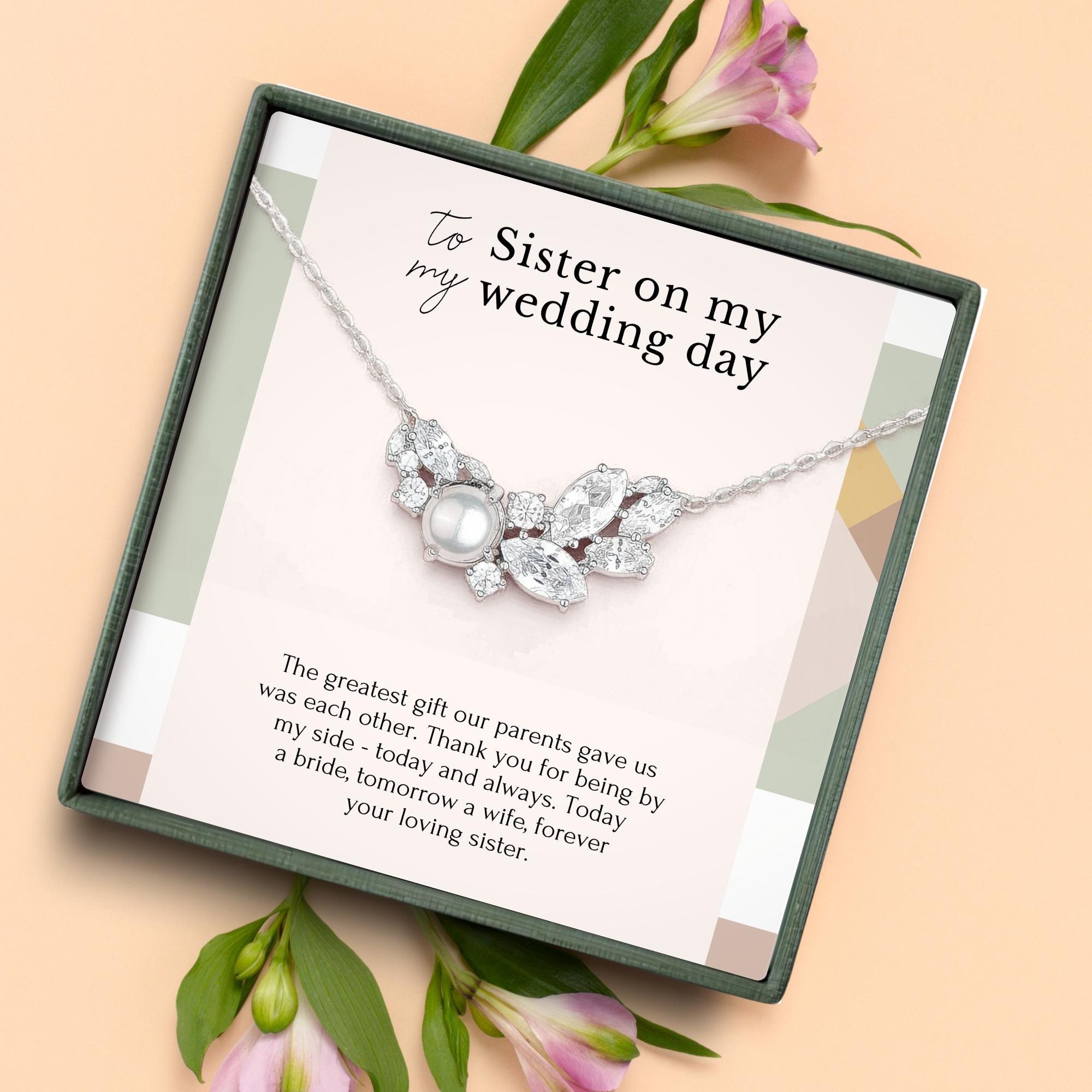 Sister Wedding Gift from Sister, Sister Wedding day gift necklace with message, Rehearsal Dinner Gift for sister, Gold, Silver necklace