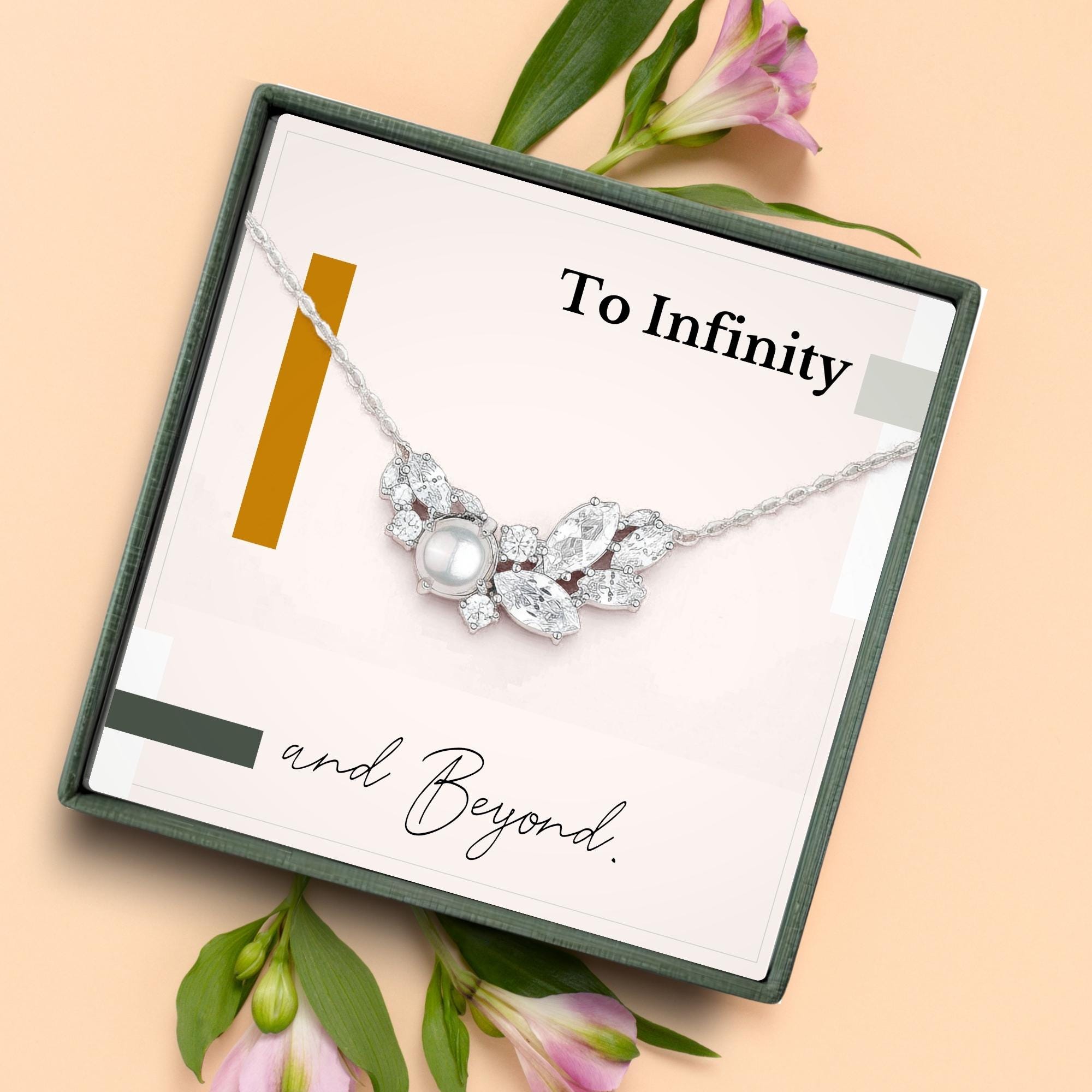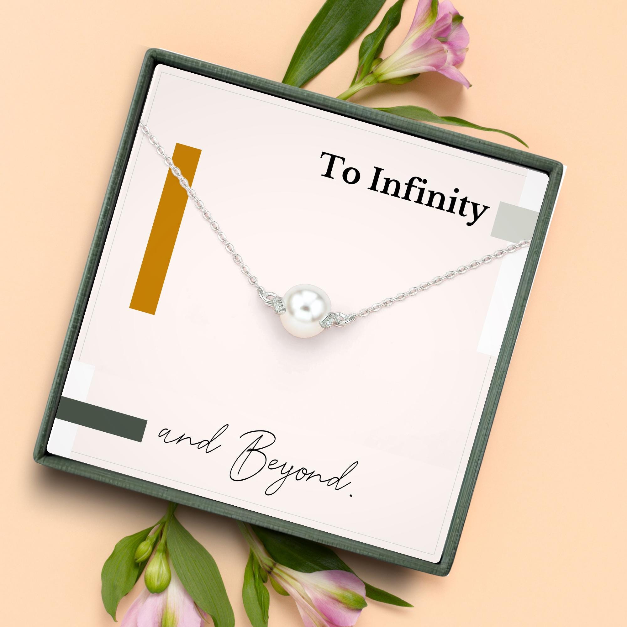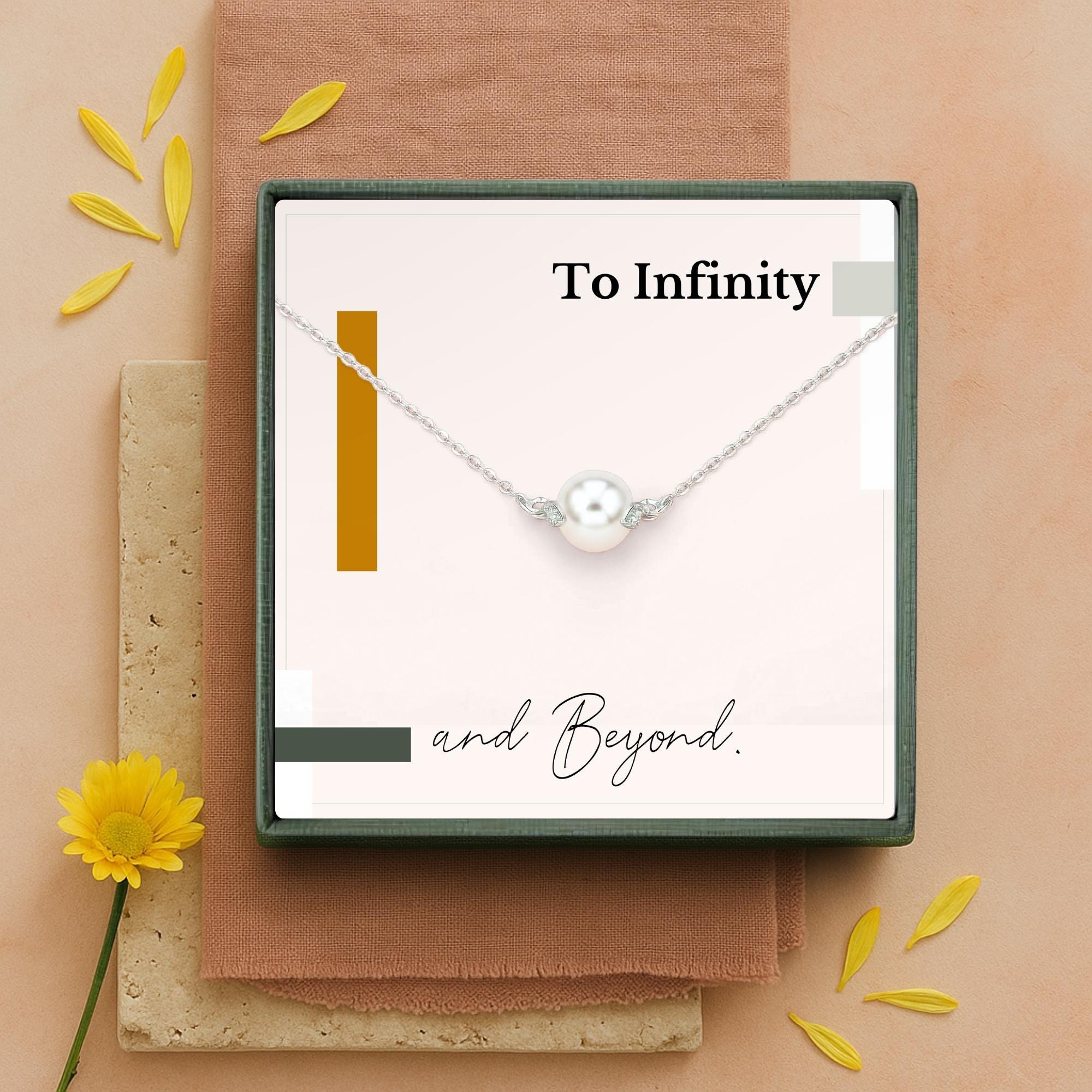Let your love speak volumes with this timeless pearl necklace, paired with a powerful message card that reads simply, “To Infinity and Beyond.” Symbolizing purity, grace, and everlasting love, the single pearl serves as a quiet yet meaningful reminder of a bond that knows no end. Whether given on your wedding day, anniversary, or just because, this romantic gift is perfect for the woman who holds your forever. Beautifully packaged and ready to gift, it’s a heartfelt keepsake she’ll treasure always.