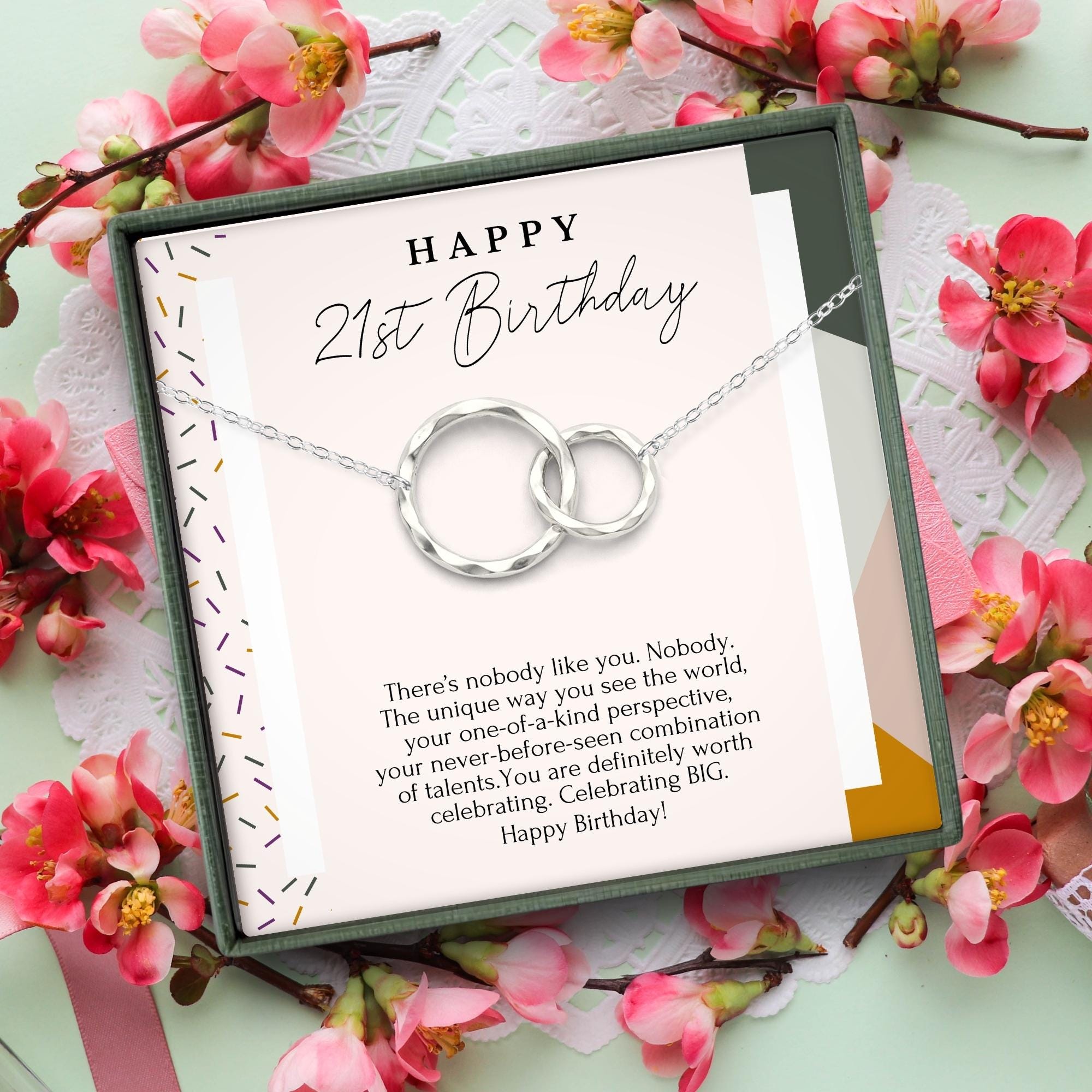 21st Birthday Gift for her, 21st birthday gift for best friend, 21st birthday card with necklace, Gold filled, Sterling Silver