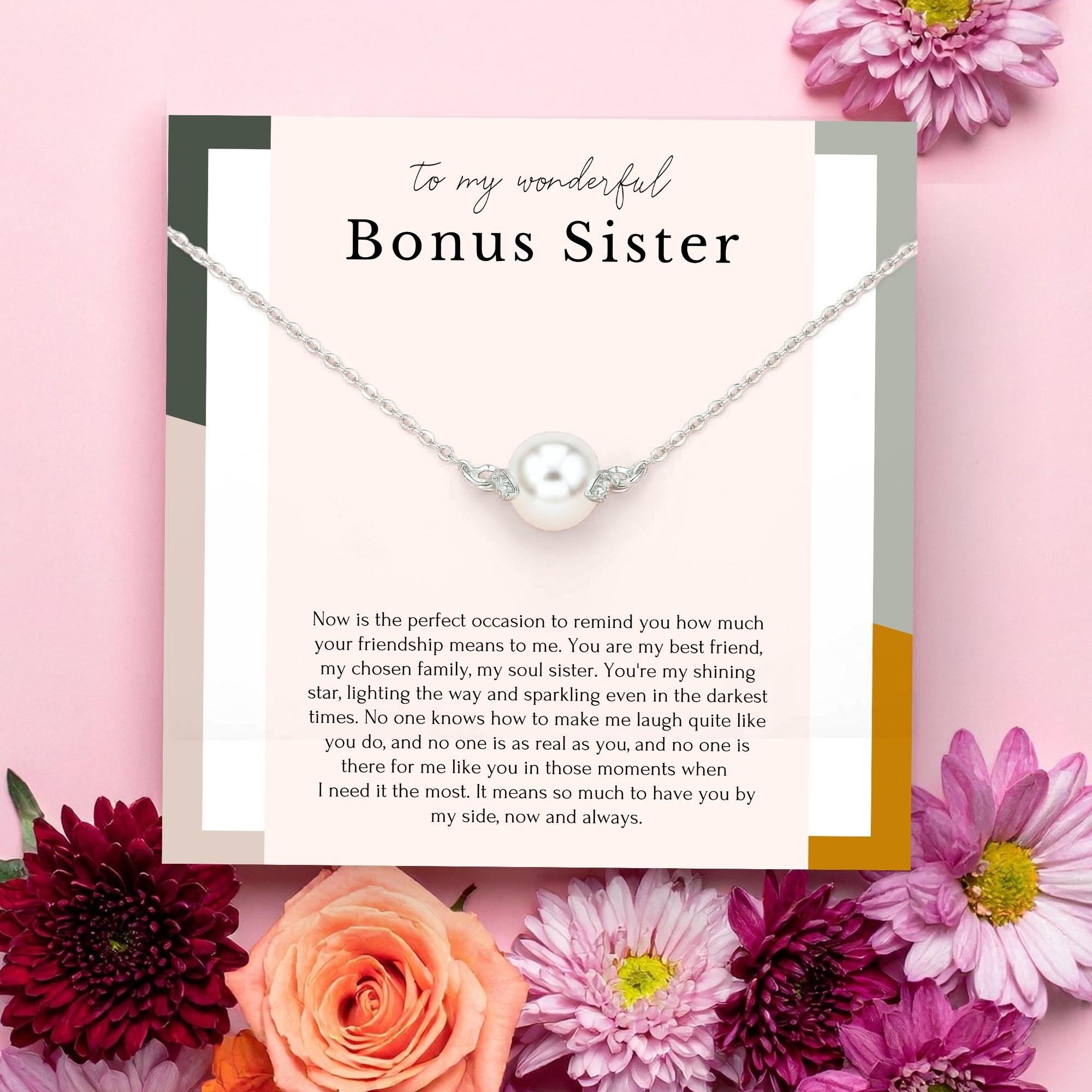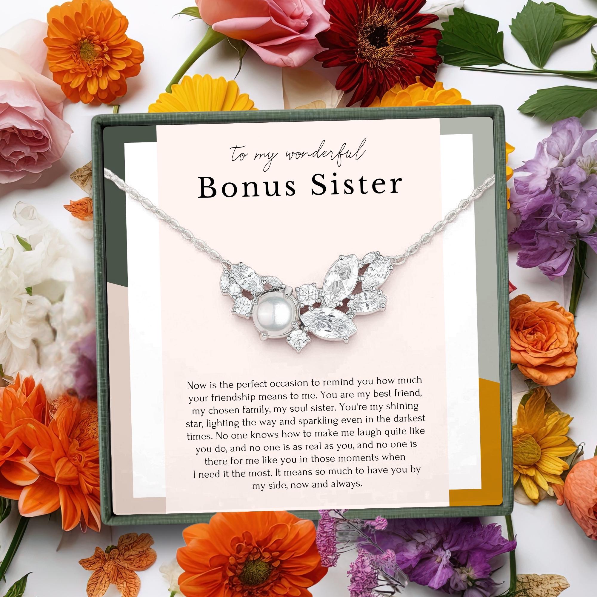 Bonus sister necklace, unbiological sister gift, soul sister jewelry, bridesmaid necklace gift, best friend gift jewelry, sister-in-law keepsake, heartfelt thank you gift, chosen family present, just because friendship gift, emotional BFF gift