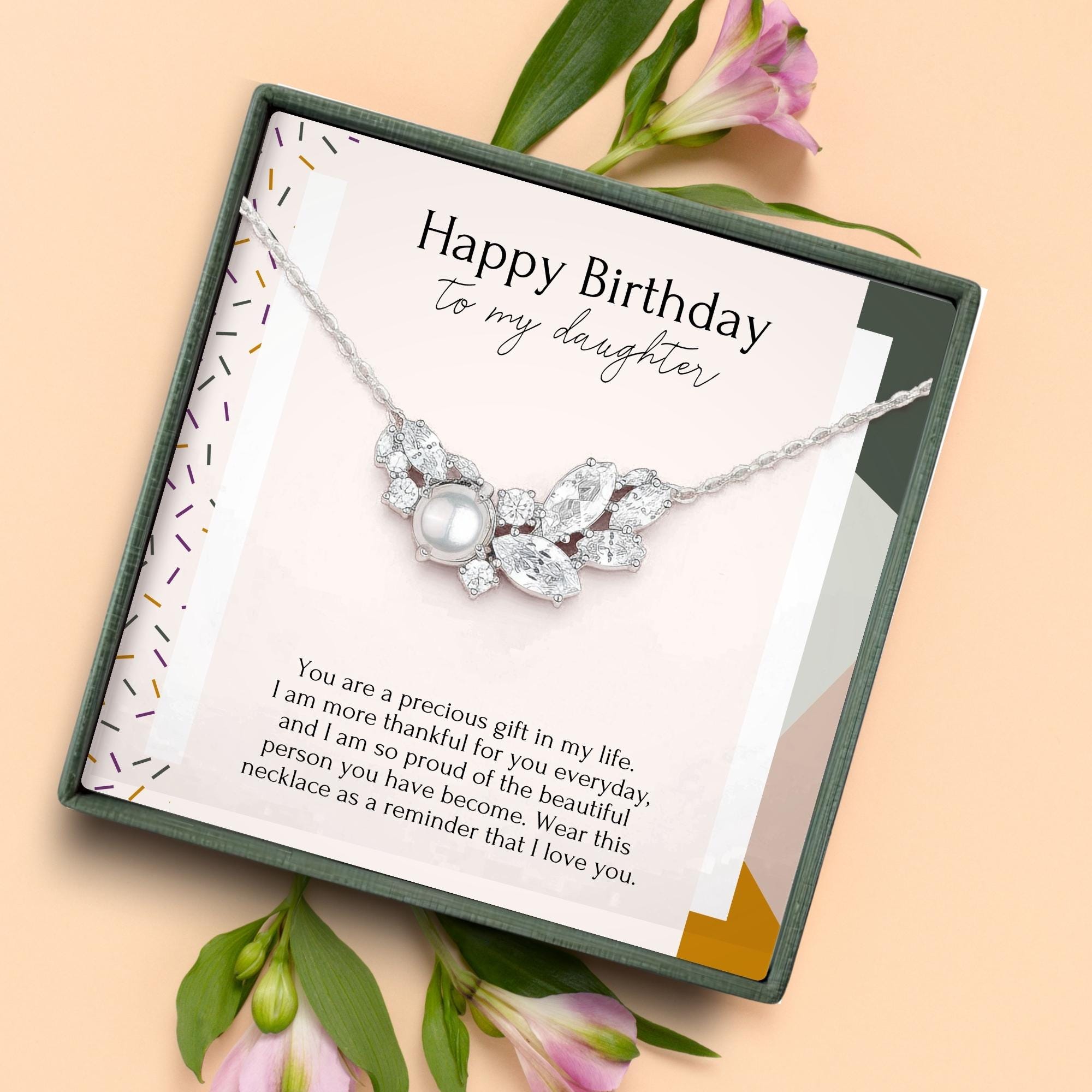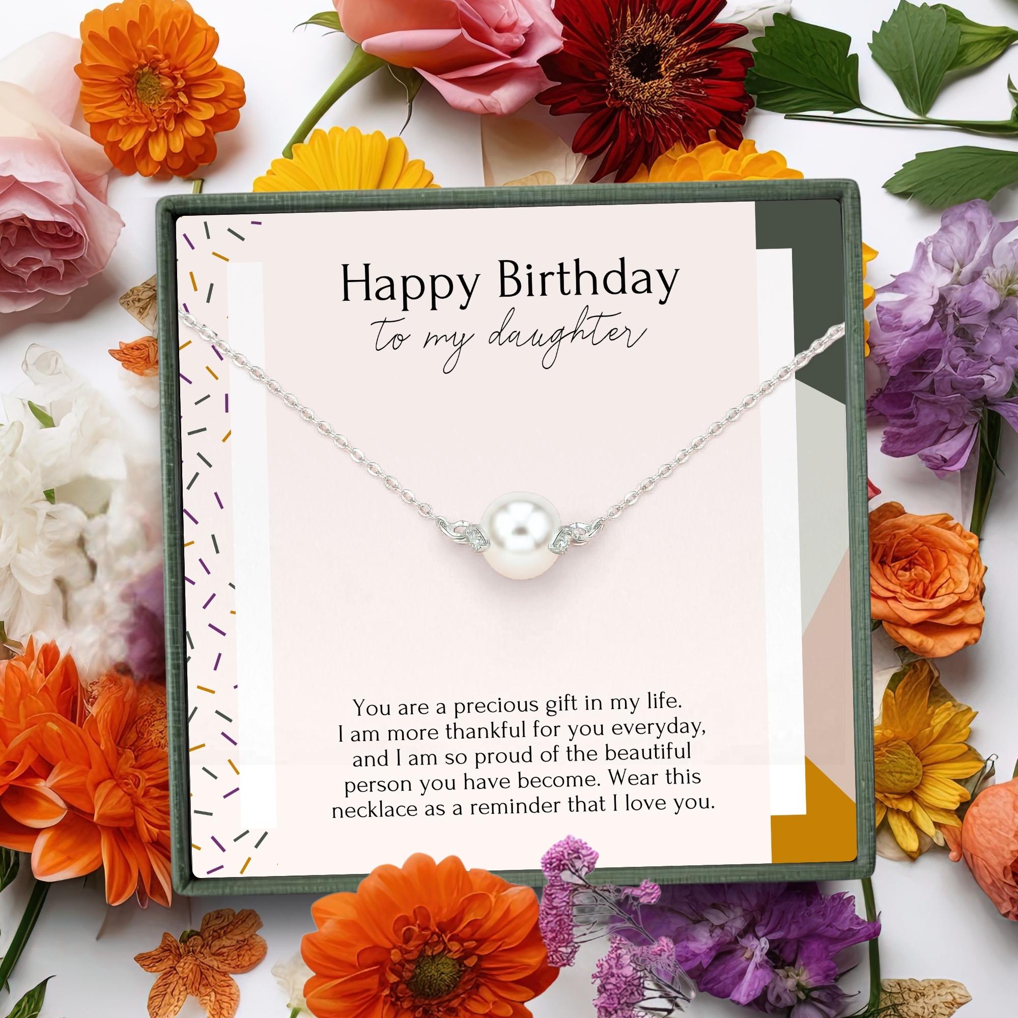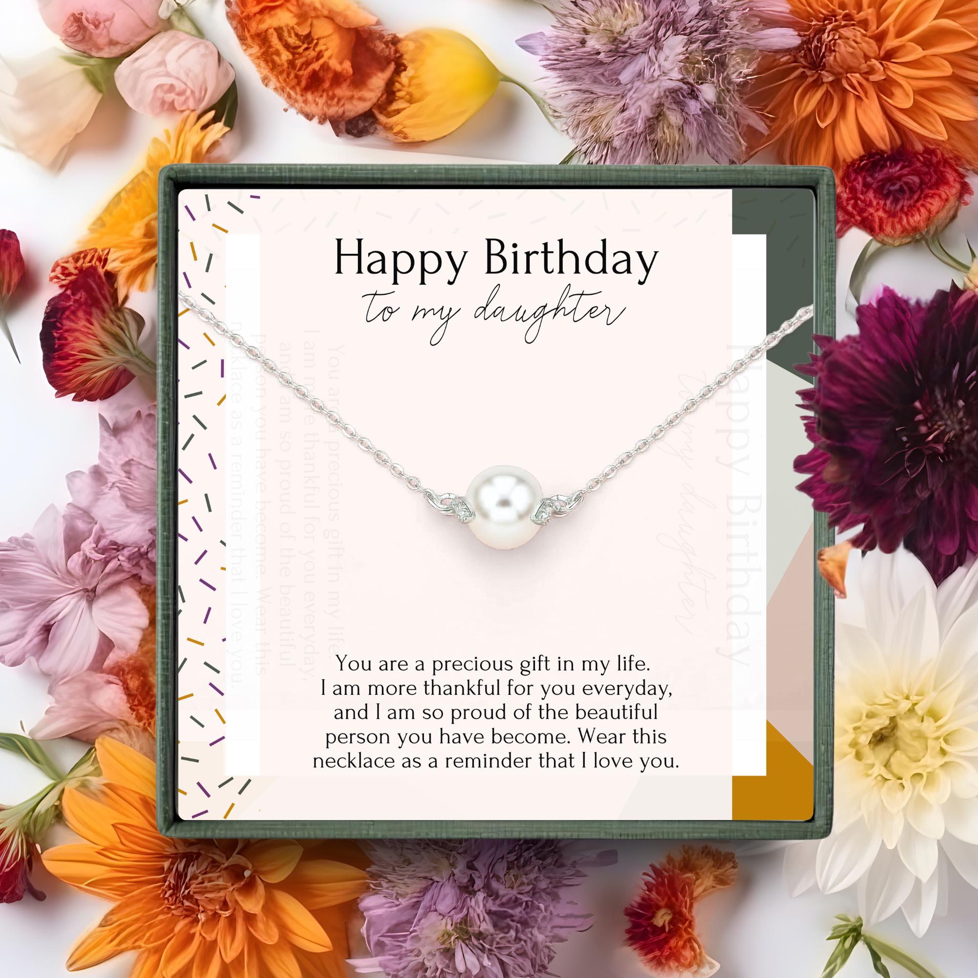 birthday gift for daughter, bday present from mom, birthday necklace from mom for daughter, dainty jewelry gift for her, 21st birthday gift, 16th birthday jewelry, 30th birthday necklace, 40th birthday gift for daughter, pearl necklace, crystal jewelry, mother daughter gift