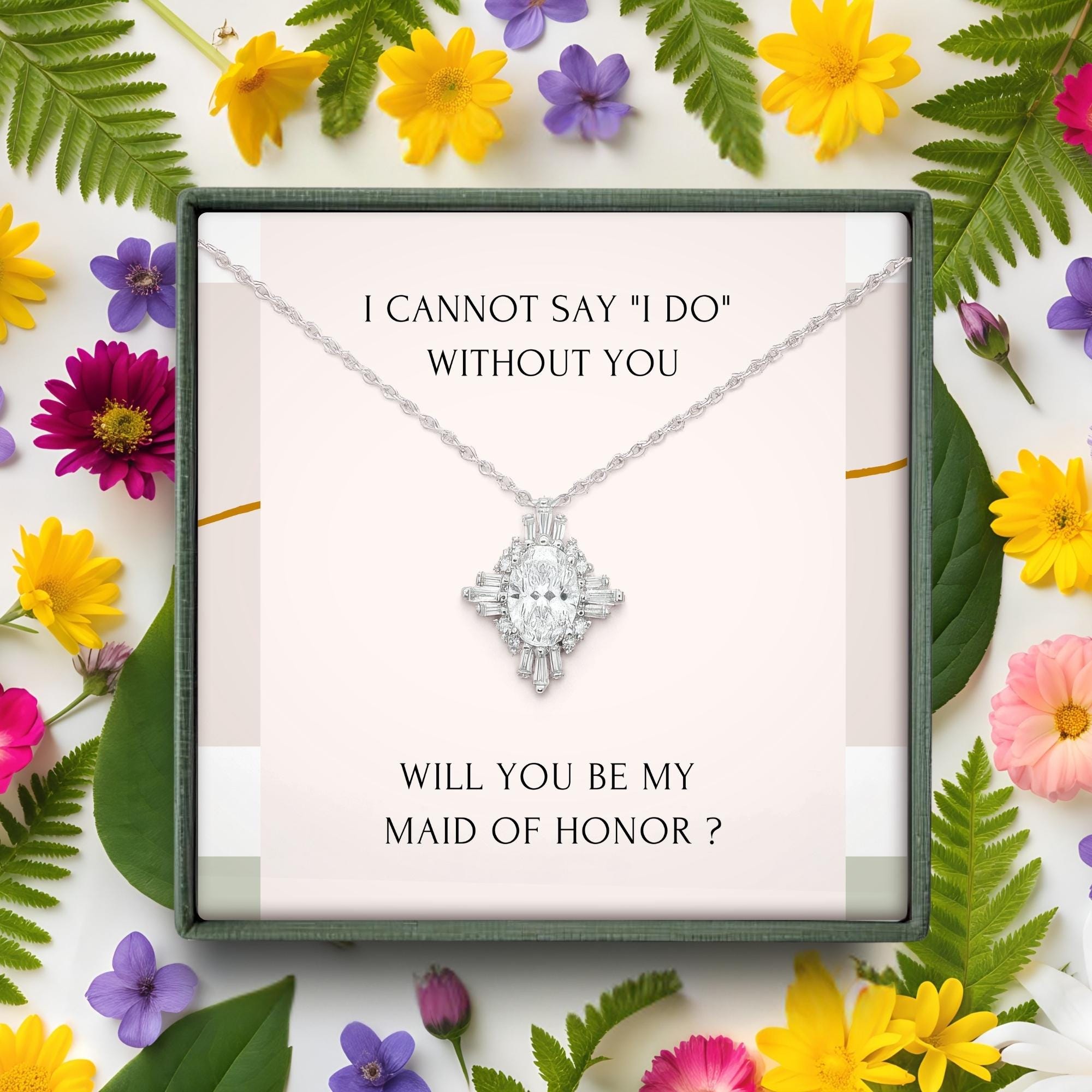 Ask your dearest friend the most meaningful question with this “Will you be my Maid of Honor?” necklace—a heartfelt proposal gift from the bride. Whether you choose a dainty interlocking circles necklace, a vintage-inspired pearl and diamond crystal set, or an elegant sterling silver design, each piece comes nestled in a proposal gift box with a sentimental message card. This is more than jewelry—it’s a keepsake symbolizing your friendship, love, and the unbreakable bond you want standing beside you on your wedding day. Perfect for sisters, best friends, or anyone you can’t say “I do” without, this maid of honor jewelry gift creates a lasting memory at the heart of your celebration.