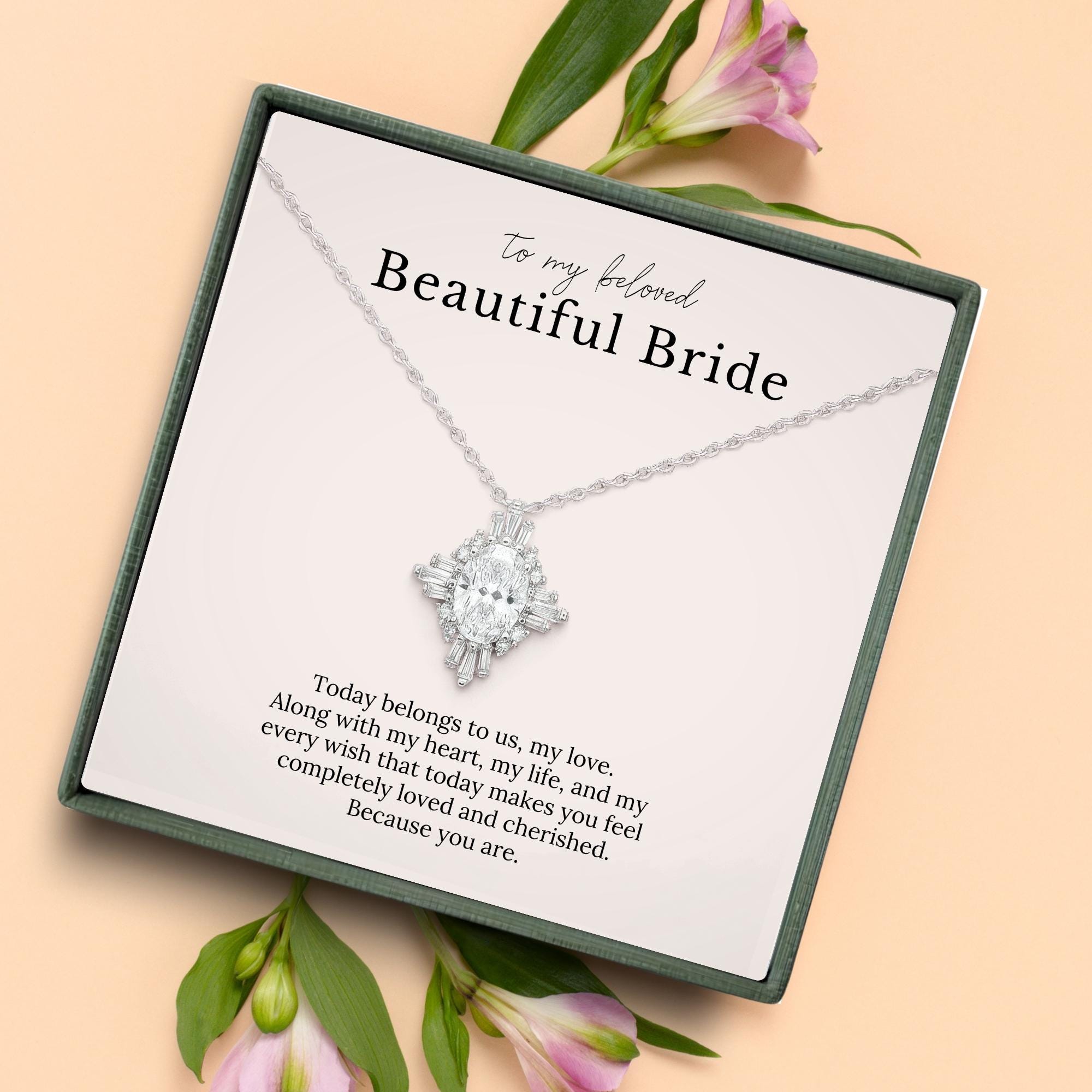Give your bride a timeless token of your love with this Bridal Wedding Necklace & Earrings Set—an elegant and romantic gift from groom to bride on your wedding day. Paired with a heartfelt card expressing your devotion, this bride jewelry gift set is designed to make her feel cherished from the moment she opens the box. Whether you choose a vintage-inspired bridal necklace, an earring set or both, this keepsake is more than jewelry—it's your love made wearable.