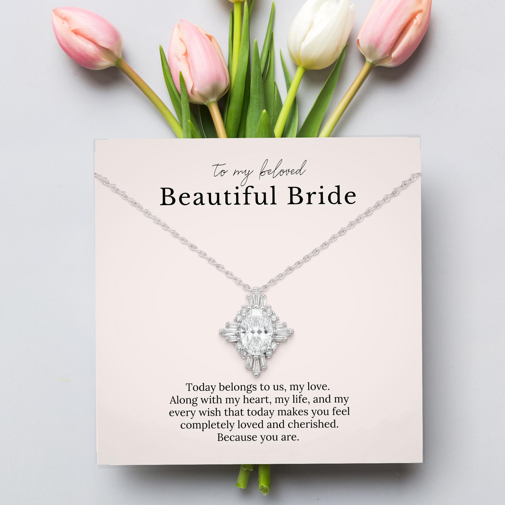 Give your bride a timeless token of your love with this interlocking circles necklace—an elegant and romantic gift from groom to bride on your wedding day. Paired with a heartfelt card expressing your devotion, this bride jewelry gift set is designed to make her feel cherished from the moment she opens the box. Whether you choose a vintage-inspired bridal necklace and earring set or a sleek minimalist design, this keepsake is more than jewelry—it's your love made wearable.