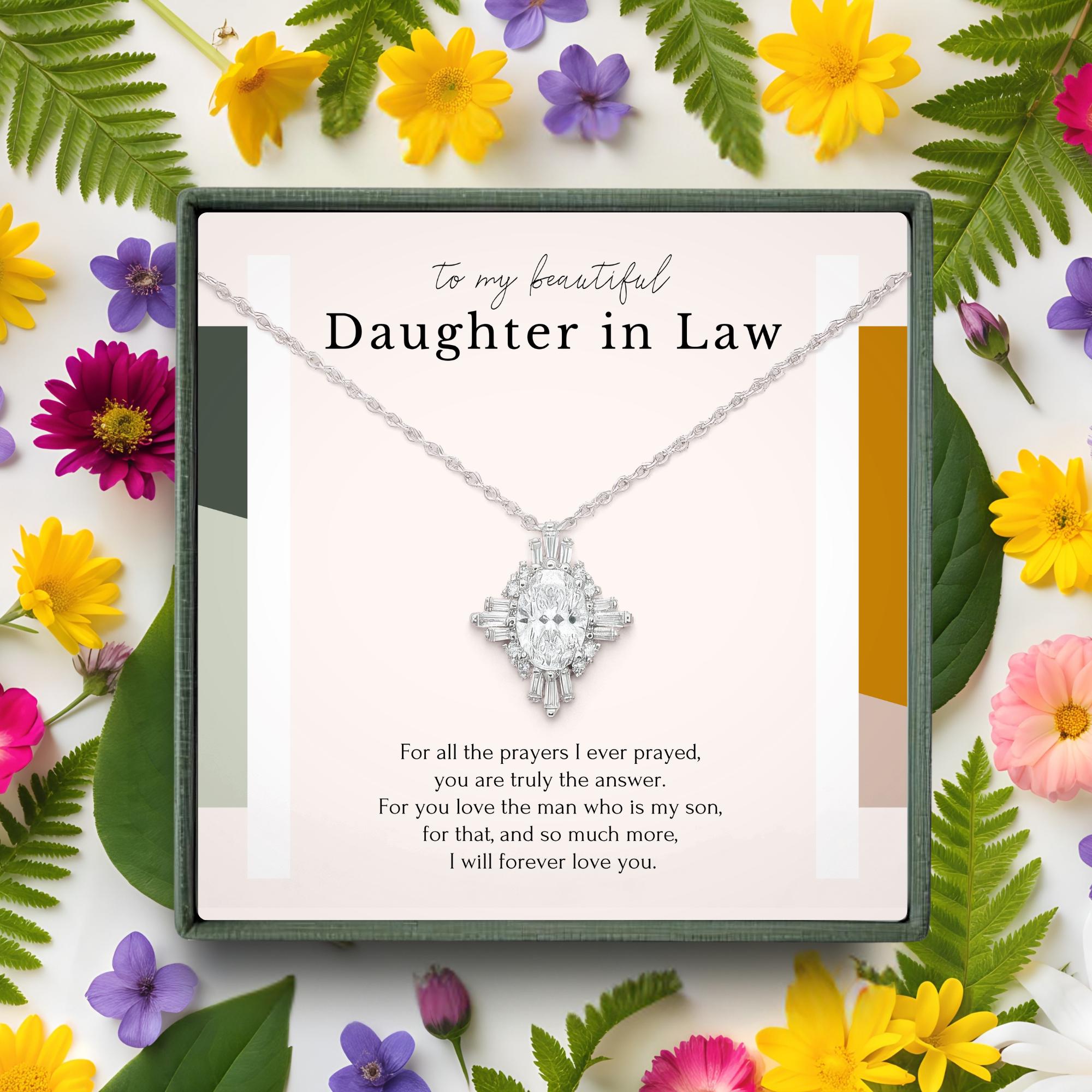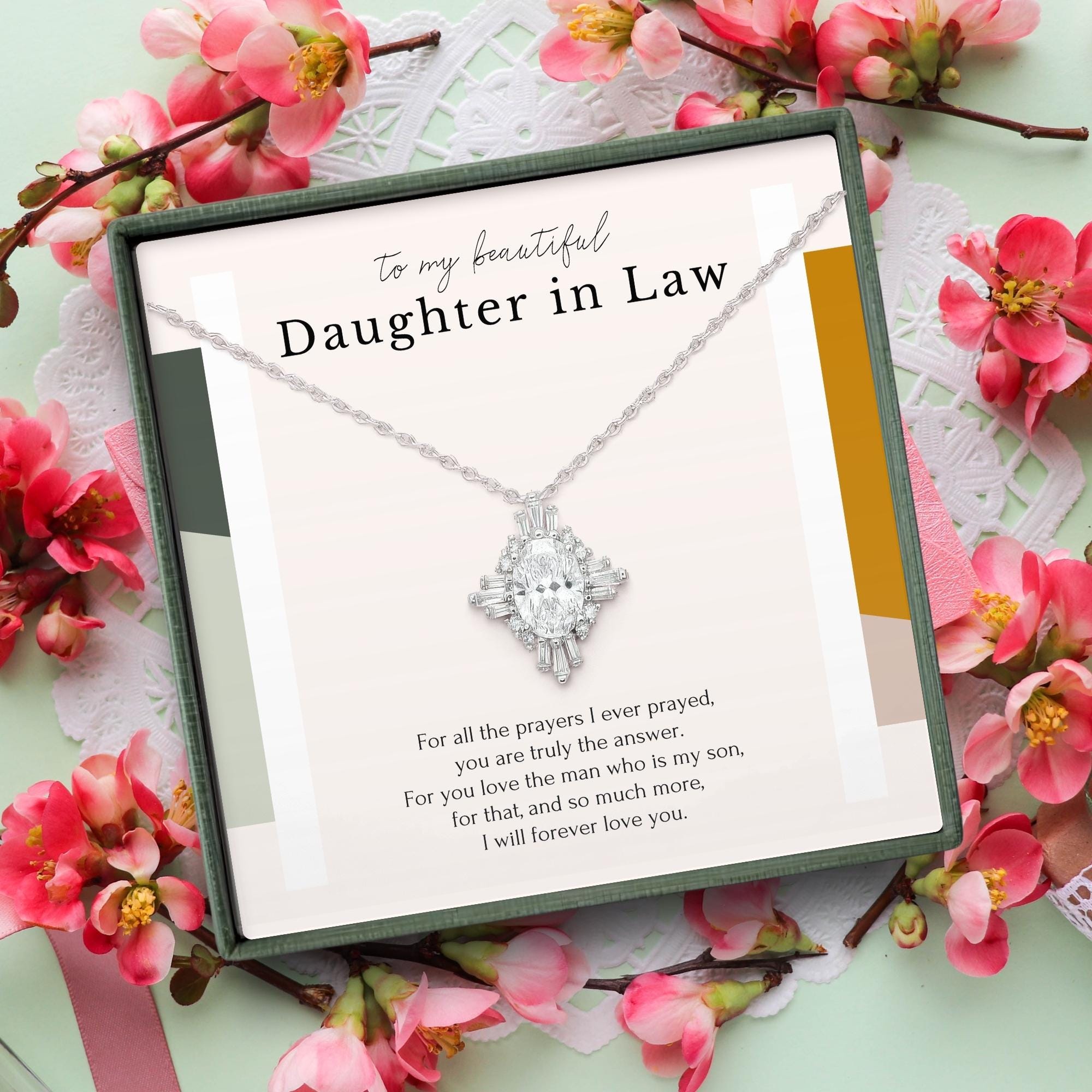 Celebrate your daughter-in-law on her wedding day with this beautifully sentimental necklace from the mother of the groom. Featuring your choice of a sterling silver double circle or dainty pearl pendant, this piece symbolizes love, unity, and the unbreakable bond formed through marriage. The card message, “For all the prayers I ever prayed, you are truly the answer,” captures the heart of a mother welcoming the woman who loves her son. Whether you’re giving it before the ceremony or on the morning of the wedding, this elegant and emotional gift will remind her she’s not just gaining a husband—she’s gaining a forever family. Thoughtfully packaged and ready to give, it’s a keepsake she’ll cherish for years to come.