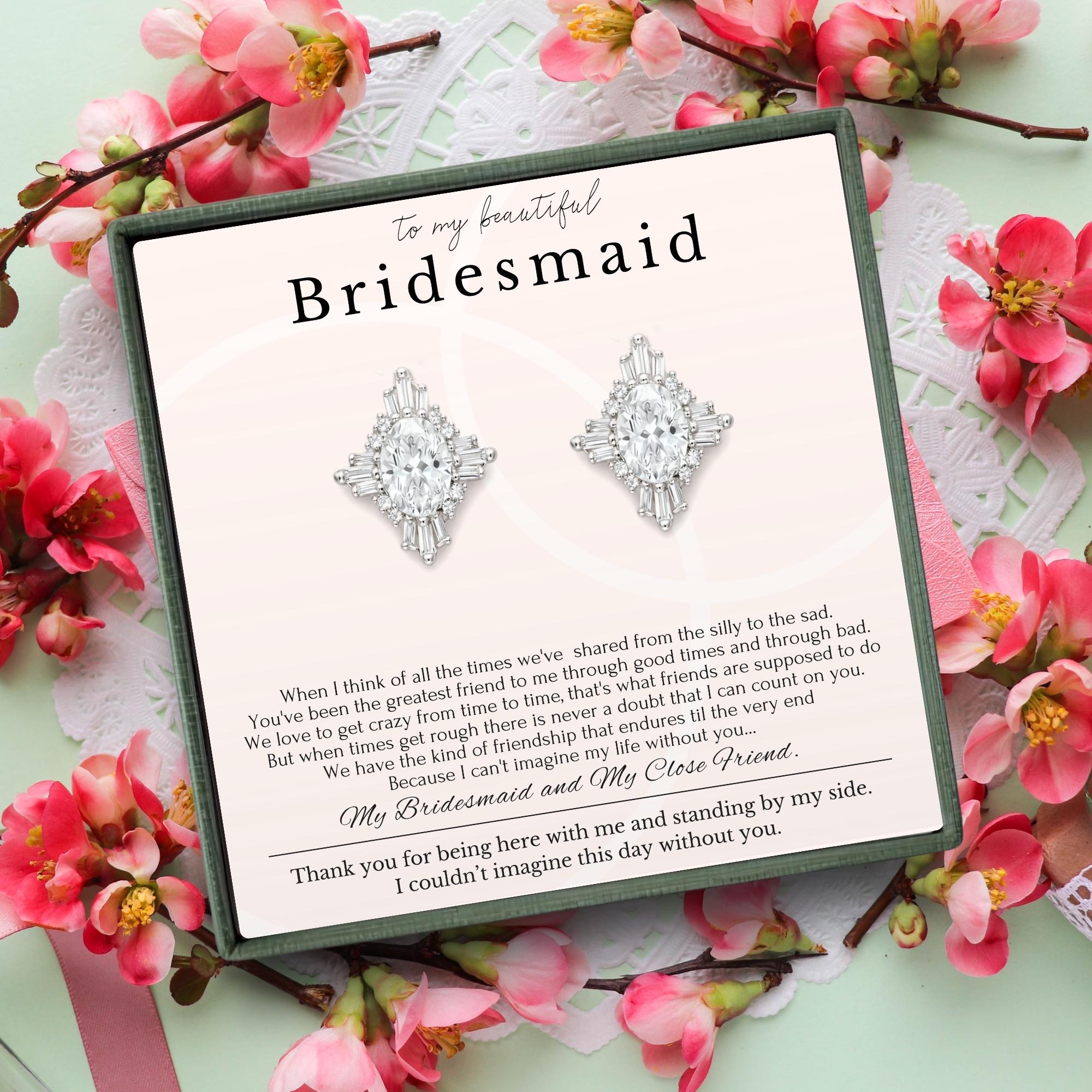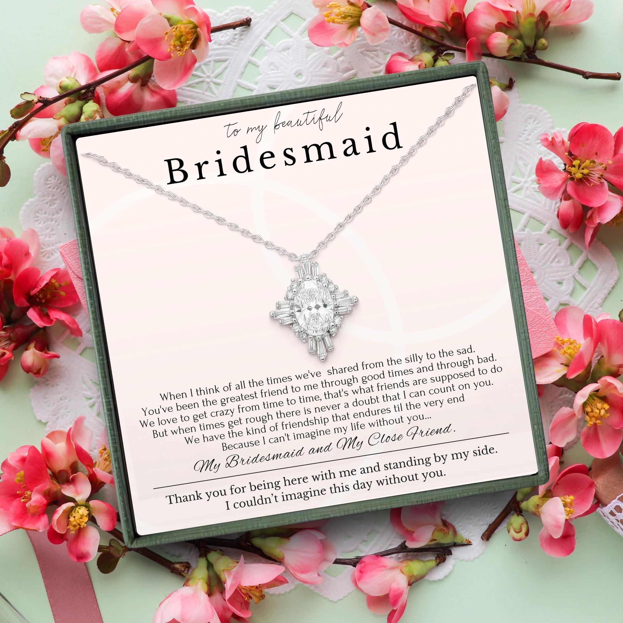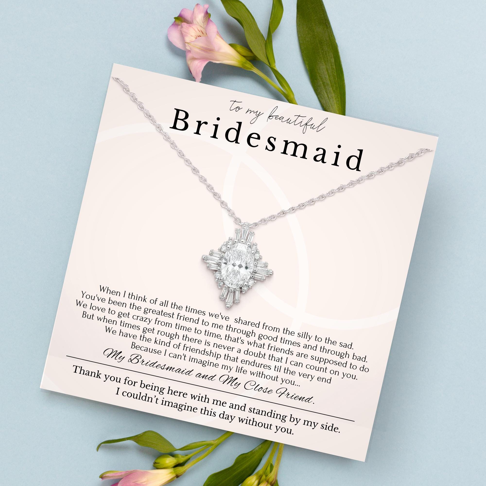 Show your bridesmaid how thankful you are for her with this beautiful vintage inspired necklace and earring set. The final touch - the jewelry - is what makes a dress belong to the bride and bridesmaids. Here is a piece set with just the right amount of sparkle to give it a personal touch and complete the look.