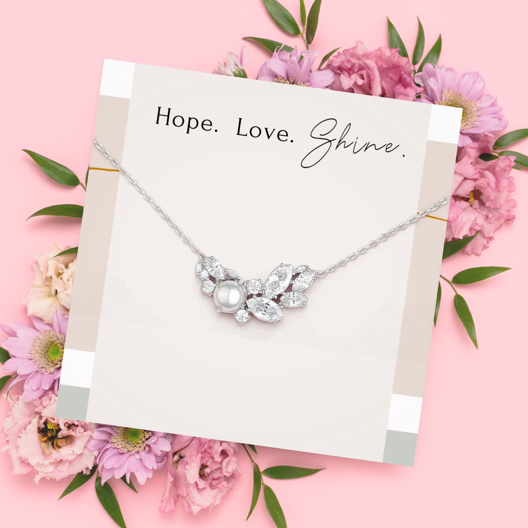 Pearl Crystal Cluster vintage necklace diamond, Bridesmaid necklace vintage wedding, boho, romantic bridal jewelry set of 6