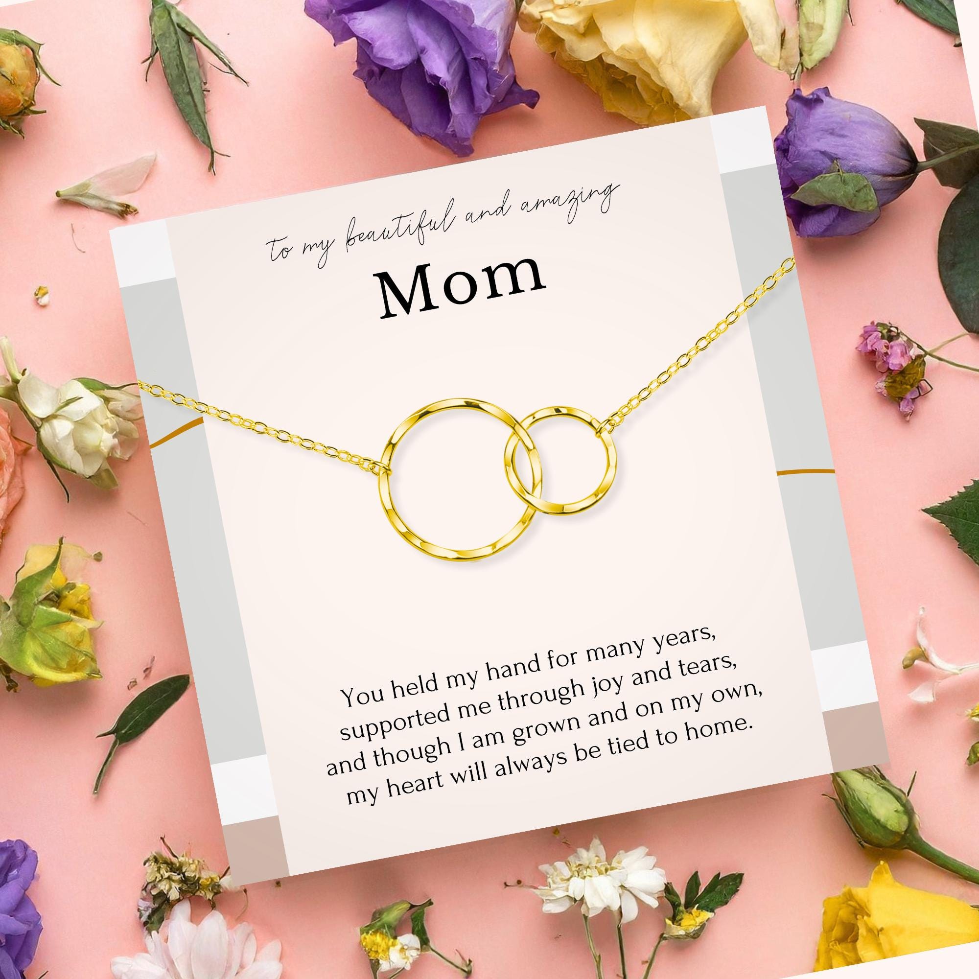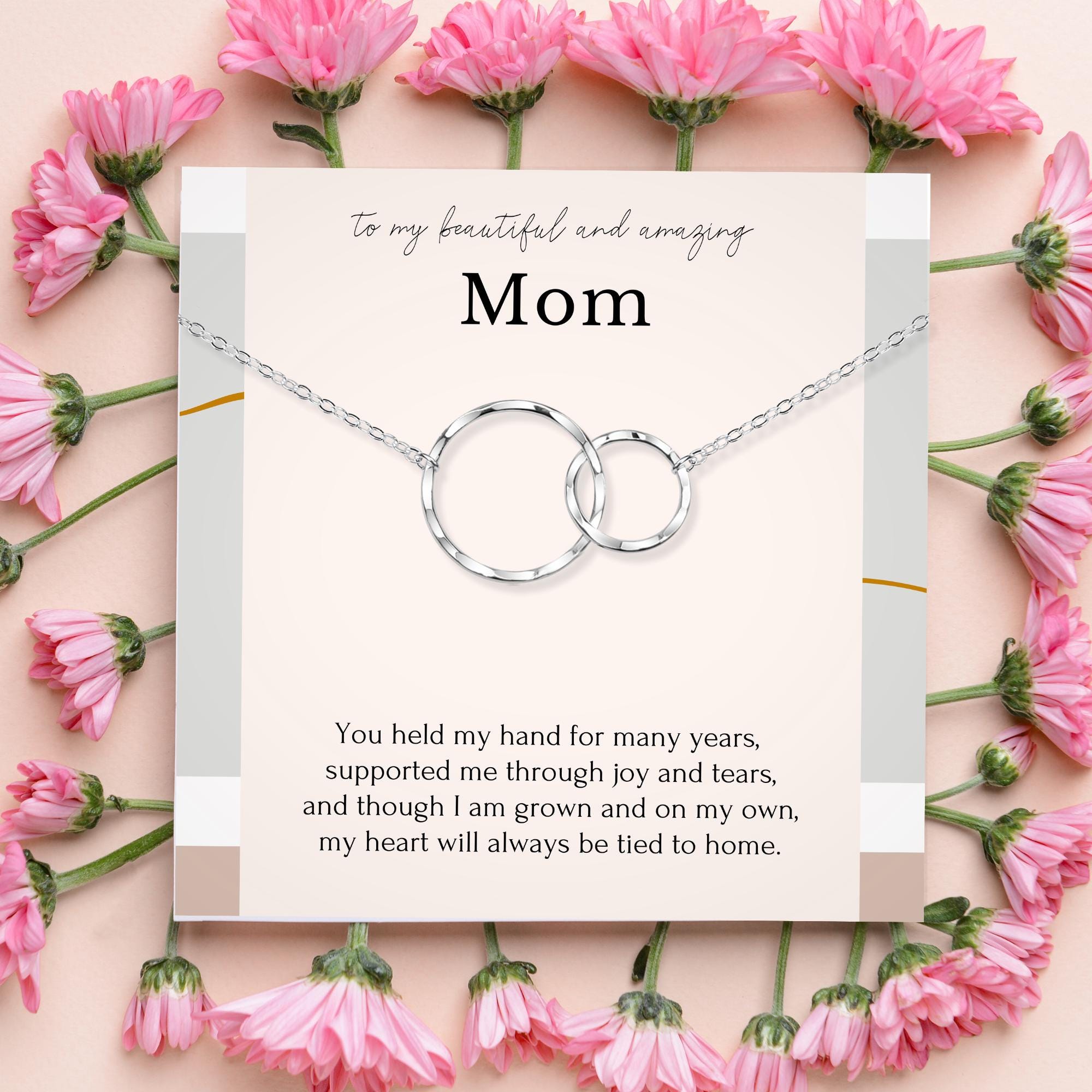 Your mom spent her life raising you to be the amazing person you are today. Even as you enter this next chapter of your life, you will always be part of hers. Show your love and appreciation to your mom with this stunning jewelry gift. Beautifully packaged with a meaningful message, this is a gift she is sure to love. With an option to choose either interlocking circles or a pearl necklace, there is something to fit every style.