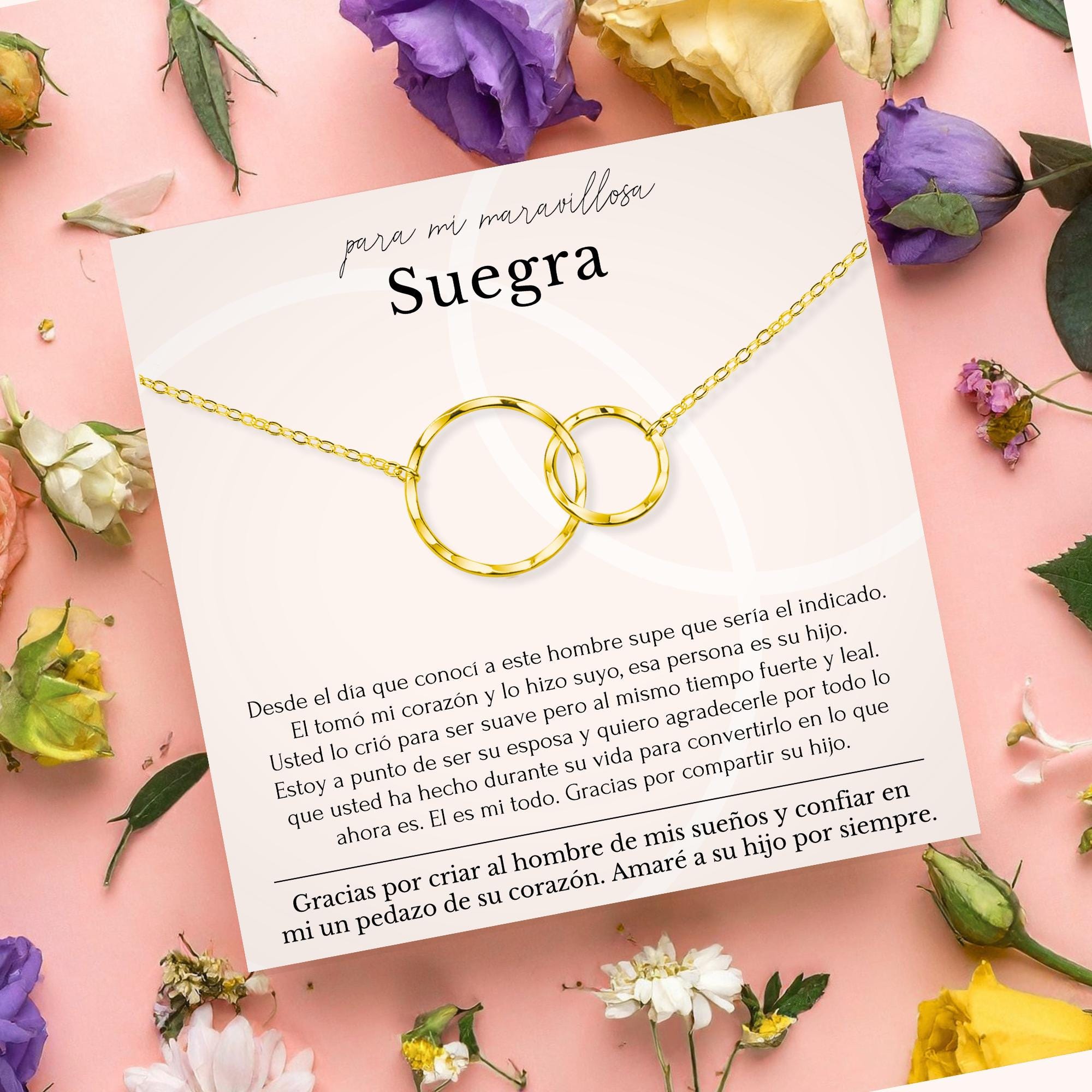 Regalo de la madre del novio de la novia, regalo del collar de la suegra, tarjeta de poema, círculos entrelazados, regalo de la novia