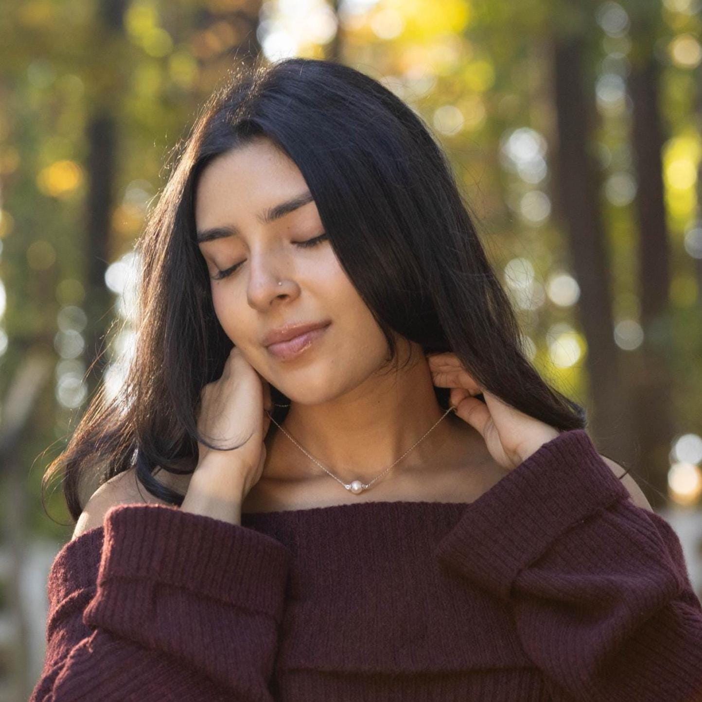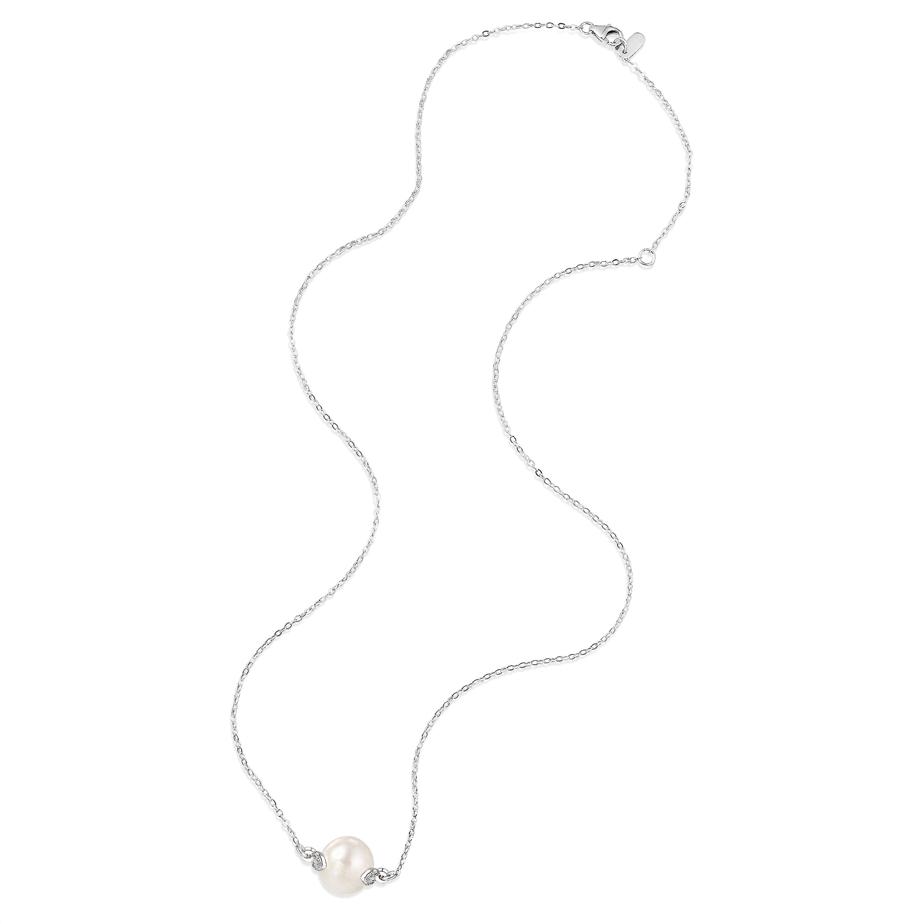 - AAA round freshwater pearl. Sterling silver setting and necklace.