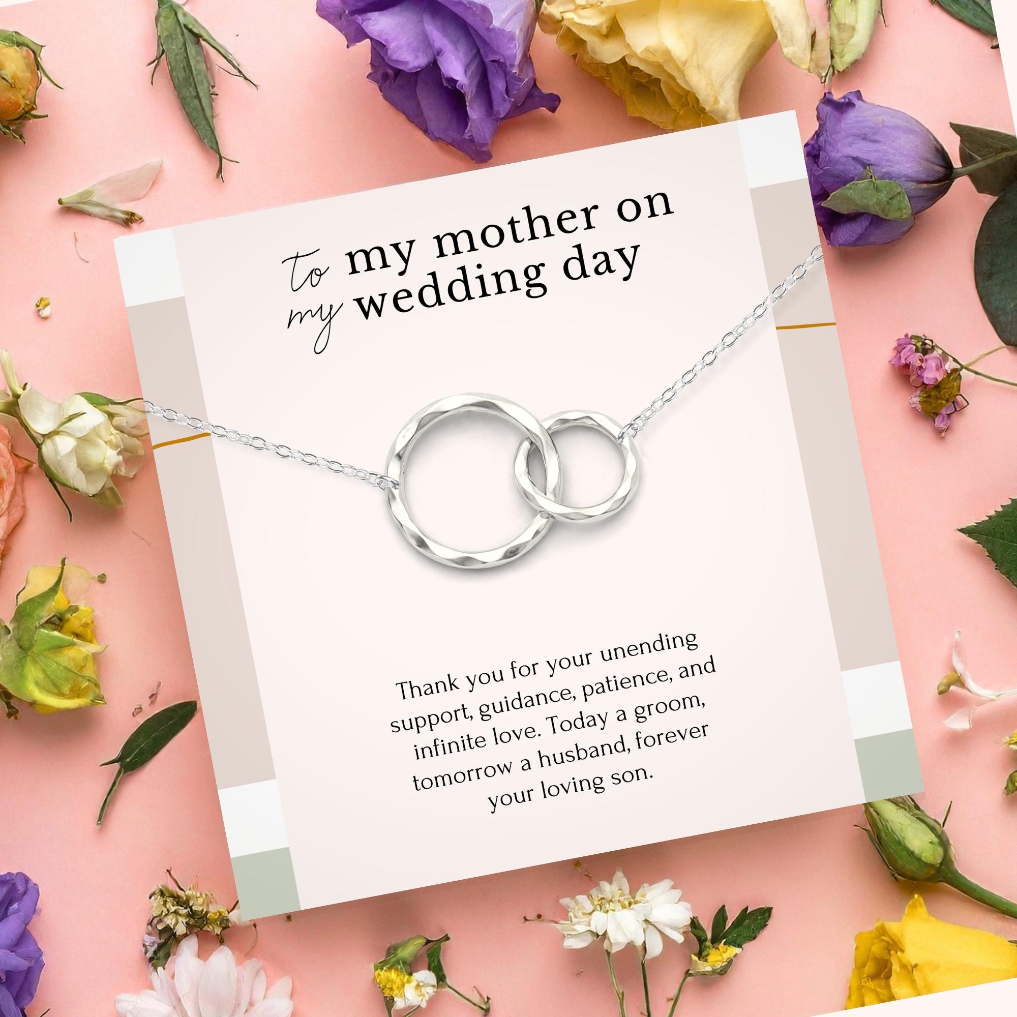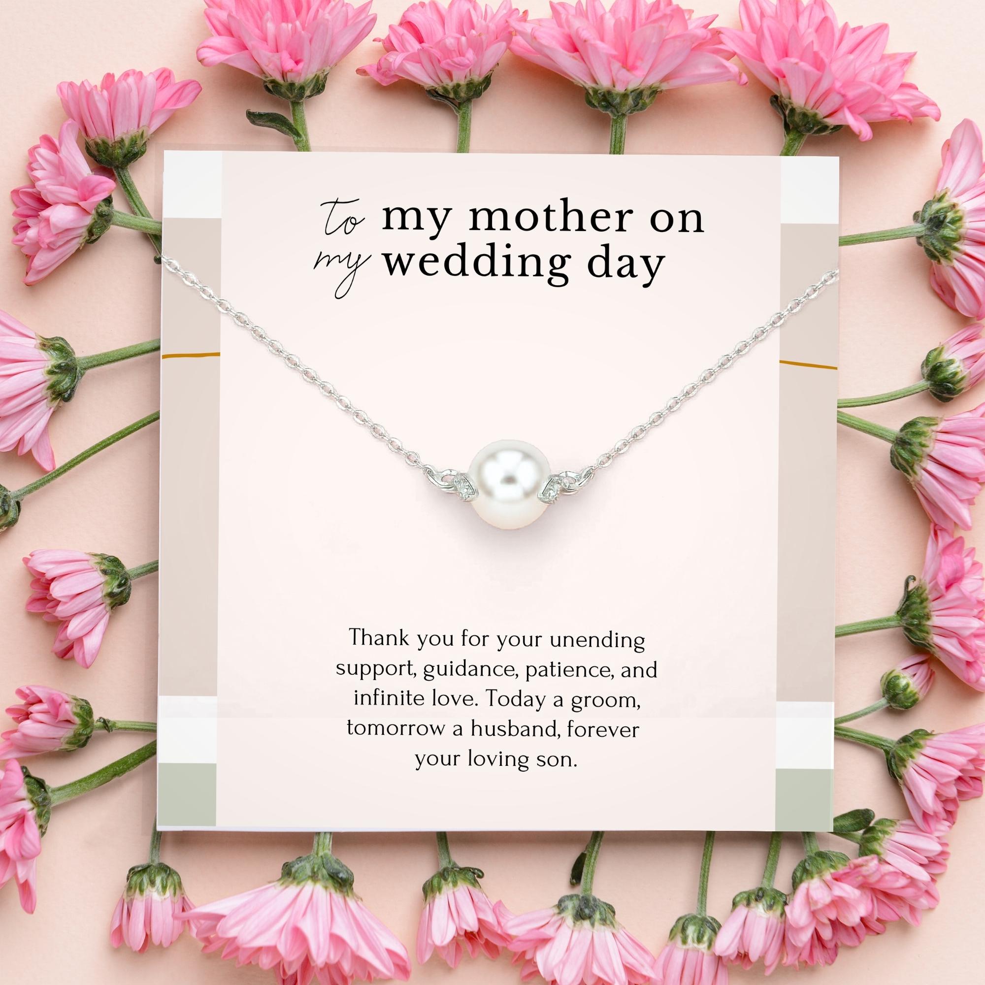 Celebrate a special bond with our necklace, a heartfelt gift for mom from her son on his wedding day. This necklace, a gift from the groom, is a meaningful token of appreciation for the mother of the groom. Crafted with care, it symbolizes the love and gratitude shared between a mother and her son. Presented in an elegant gift box, it's a cherished keepsake for this memorable occasion.