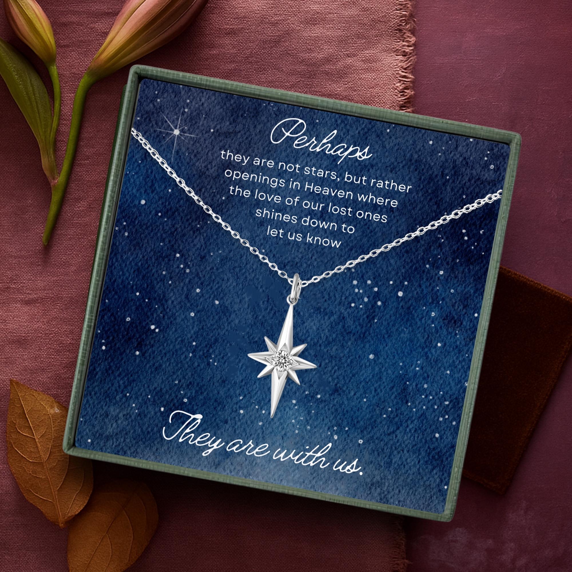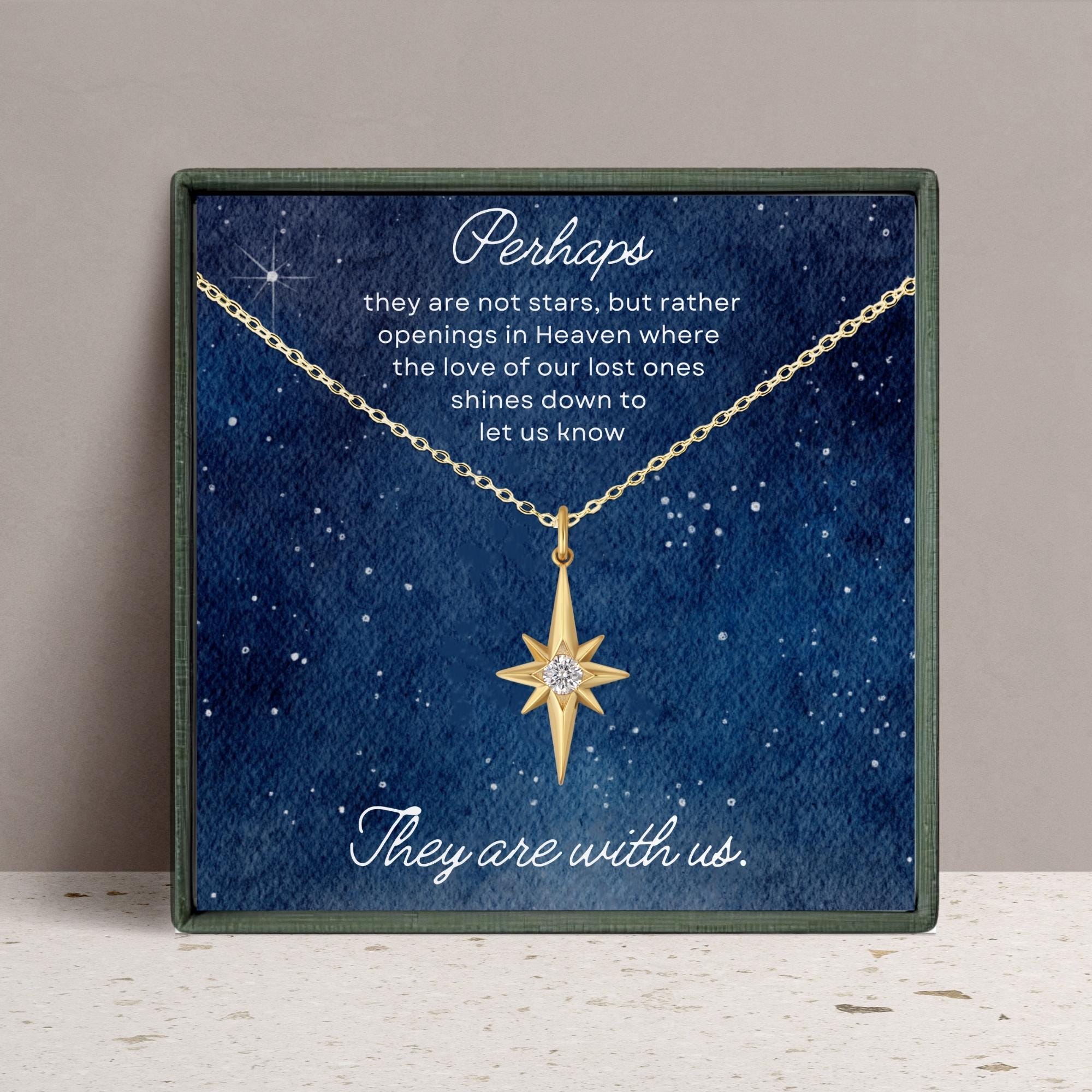Loss of Father Mother Son Daughter Grandmother Grandfather Pet Memorial necklace, Loved one reminder jewelry, anniversary keepsake, Condolence gift, forever in my heart, always with you Star necklace gift box