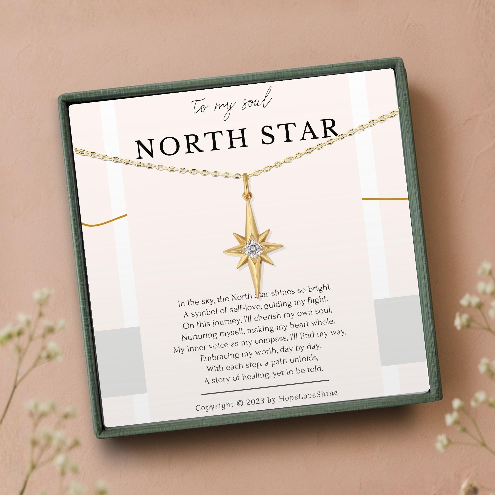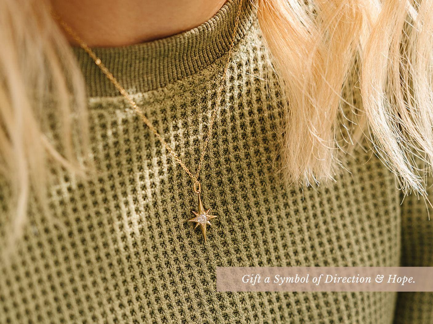 Celebrate the beauty of new beginnings and the journey of self-discovery with the New Beginnings North Star Necklace—a treasured keepsake for any woman setting out on the empowering journey of self-love and transformation.