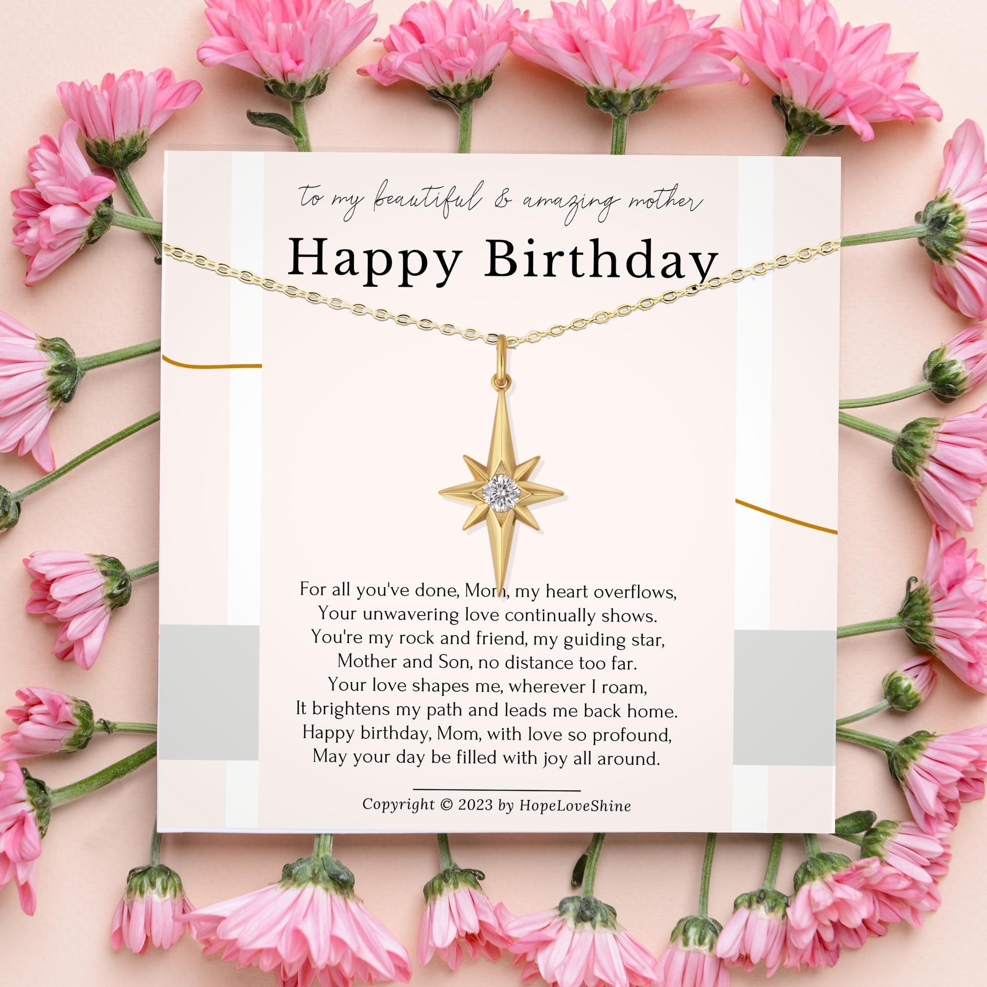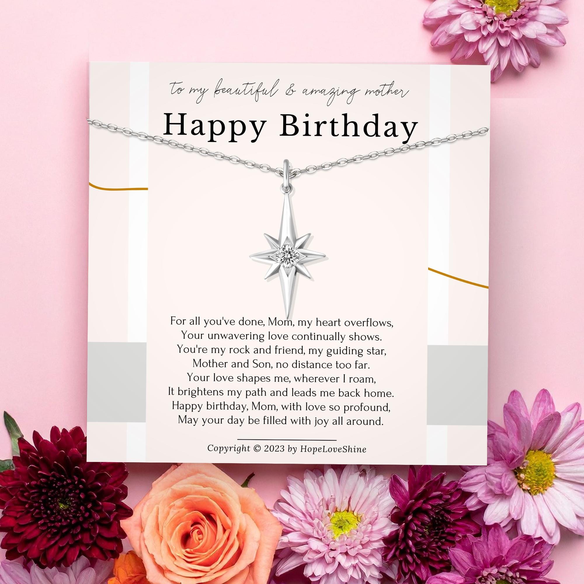 Celebrate the incredible woman who’s been your guiding star with this heartfelt birthday necklace for Mom. Designed to express deep love and appreciation, this meaningful gift features a touching message that honors her unwavering support, strength, and warmth. Whether you're celebrating her 30th, 40th, 50th, or 70th birthday, this jewelry gift is the perfect way to say “Happy Birthday, Mom” with love that lasts. Ideal for daughters or kids looking for a sentimental and unique gift for their mother, it arrives beautifully packaged and ready to make her feel cherished. Whether it’s her milestone birthday or just a reminder of how much she means to you, this necklace captures the emotion perfectly.