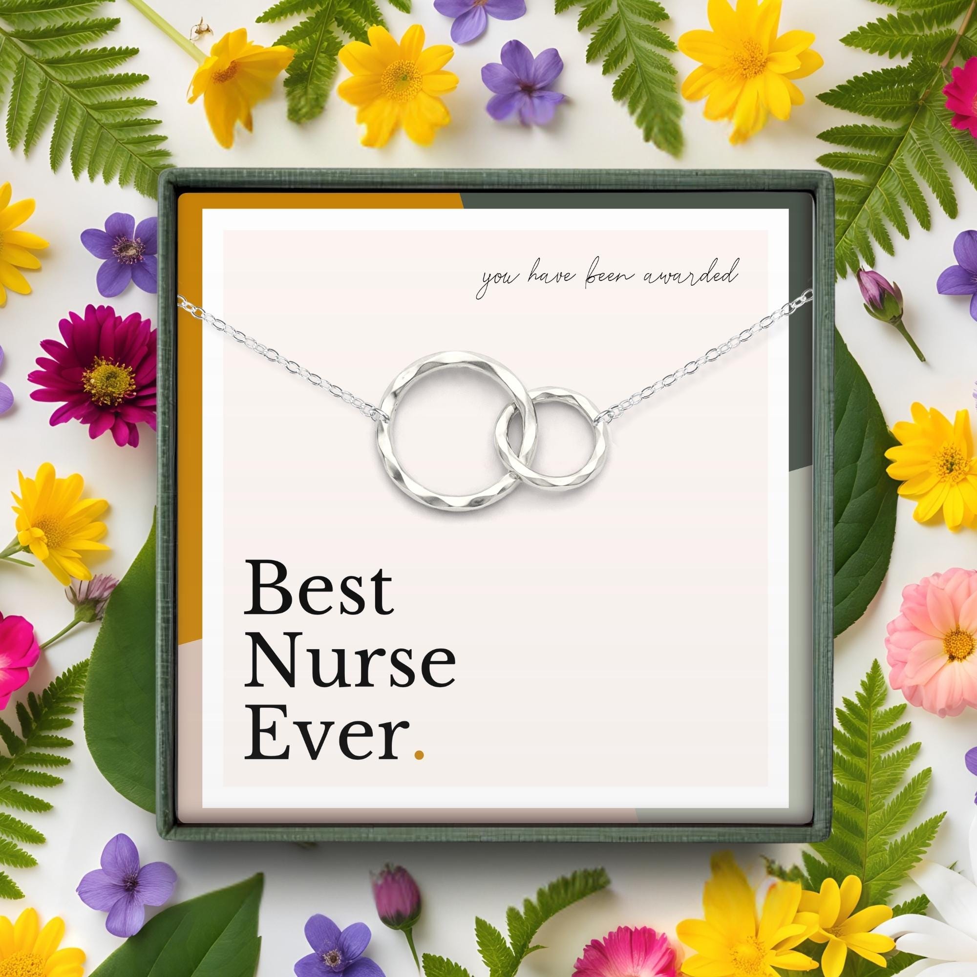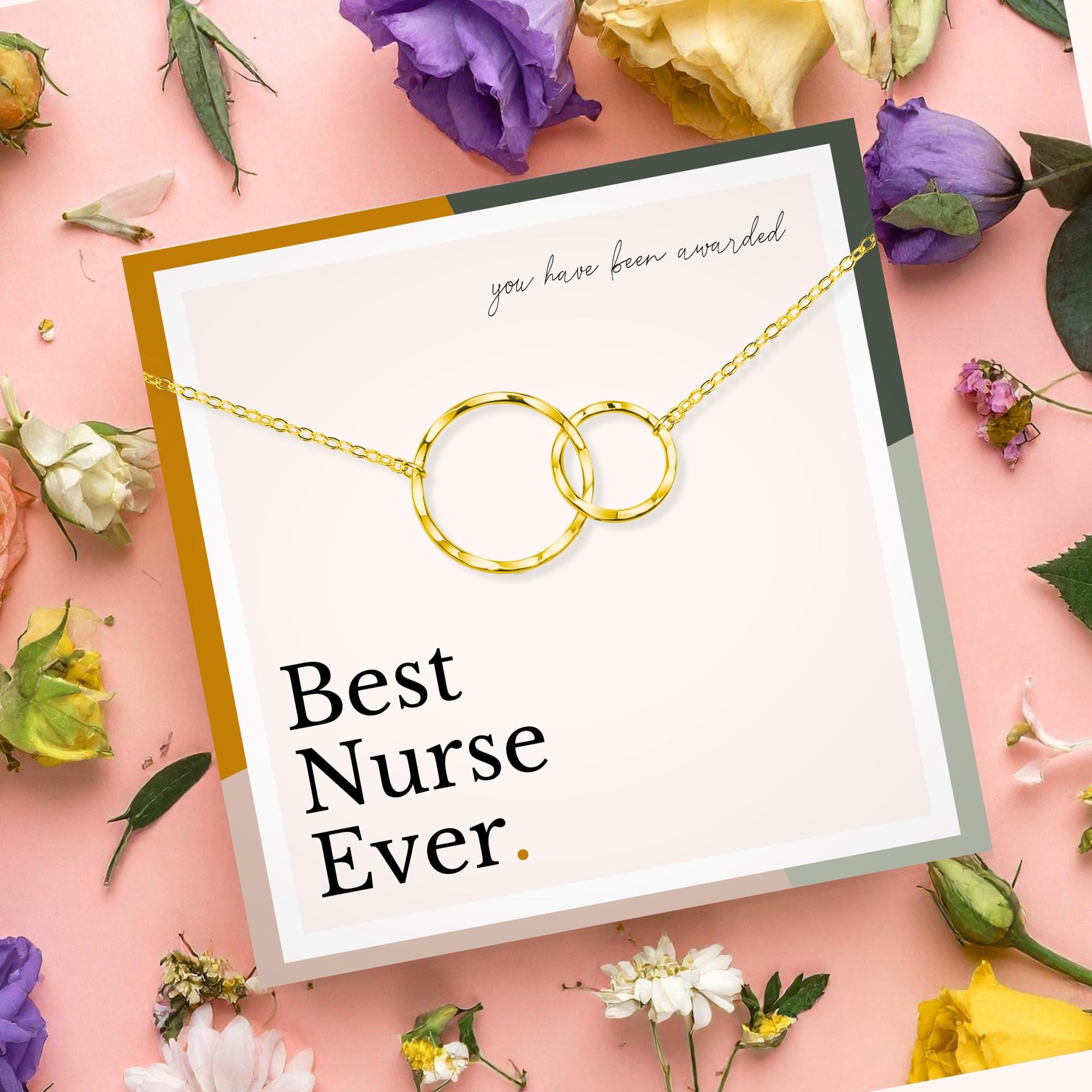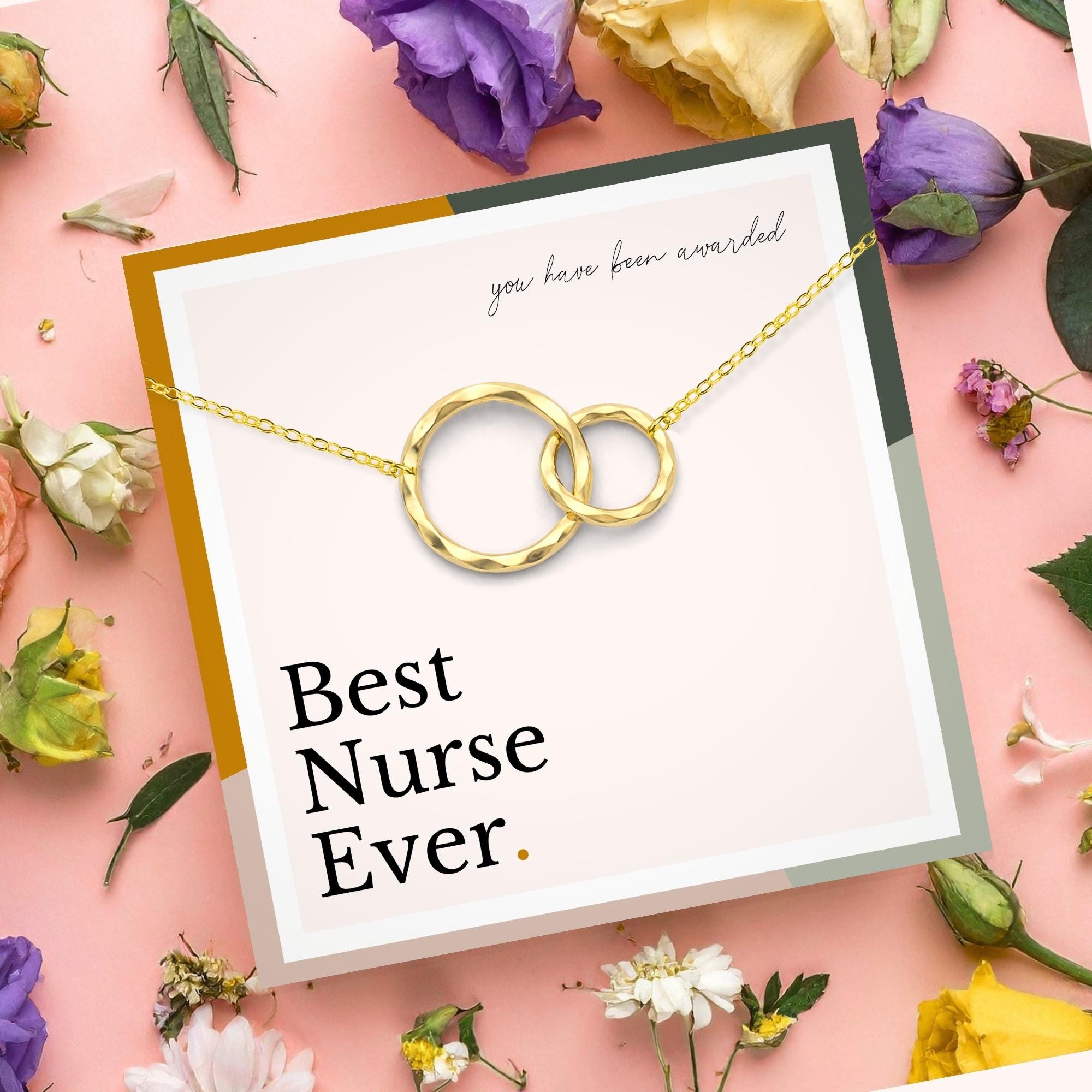 nurse appreciation gift, graduation gift for nurse, nurse grad jewelry, RN necklace gift, meaningful gift for nurse, best nurse ever gift, healthcare hero necklace, thank you nurse gift, interlocking circles necklace, nurse practitioner gift, jefa enfermera regalo