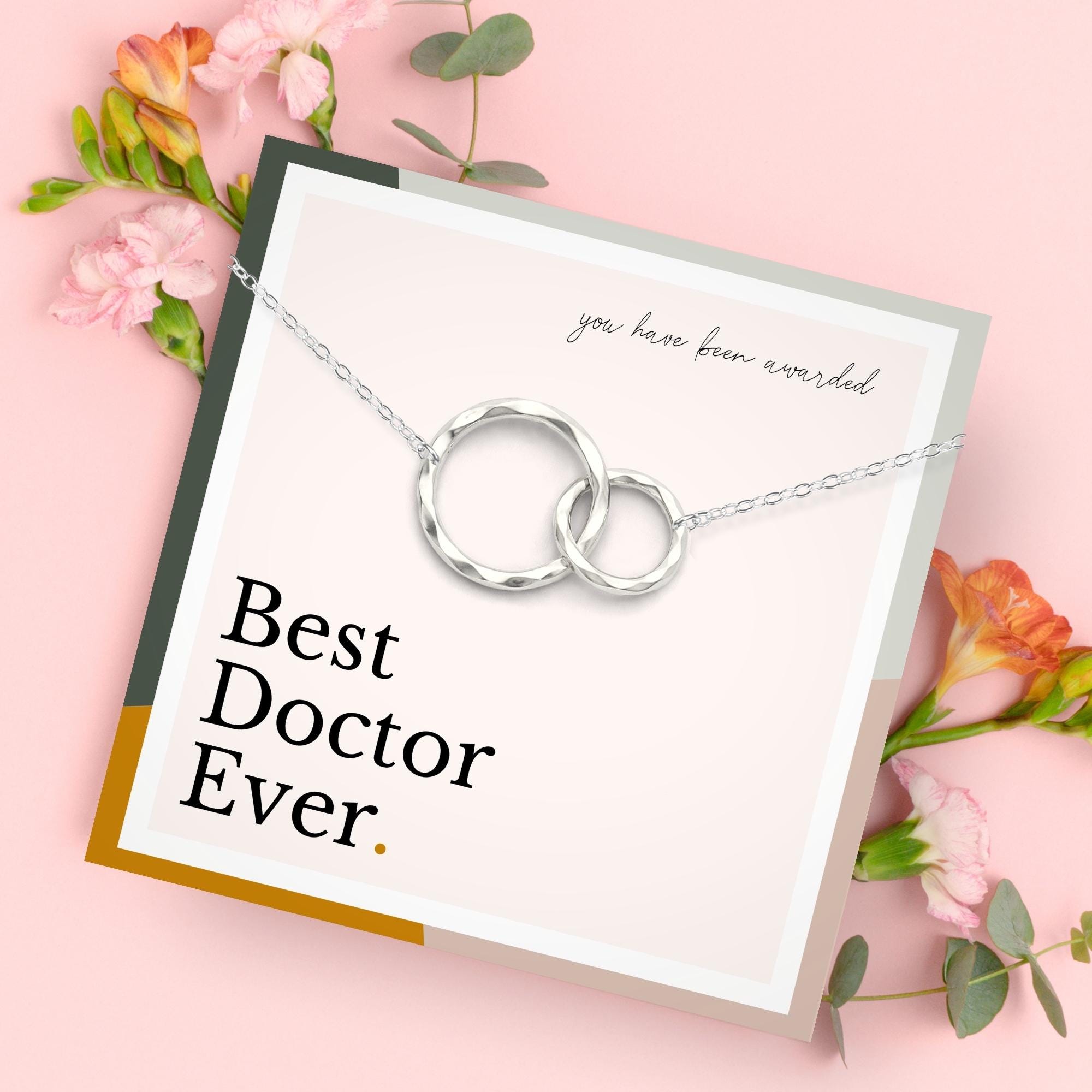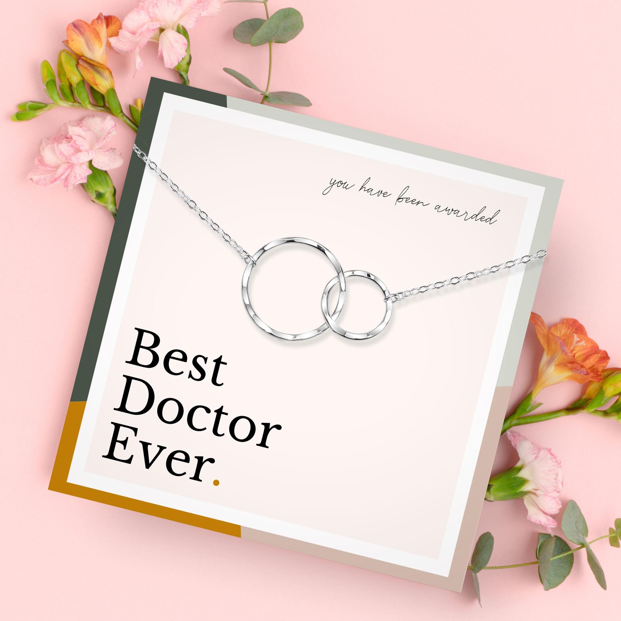 The interlocking circles are a symbol of unity, representing the close bond that doctors share with their patients and their colleagues. A tangible symbol of their tireless service, this necklace will be a daily reminder of the respect and admiration they've earned.