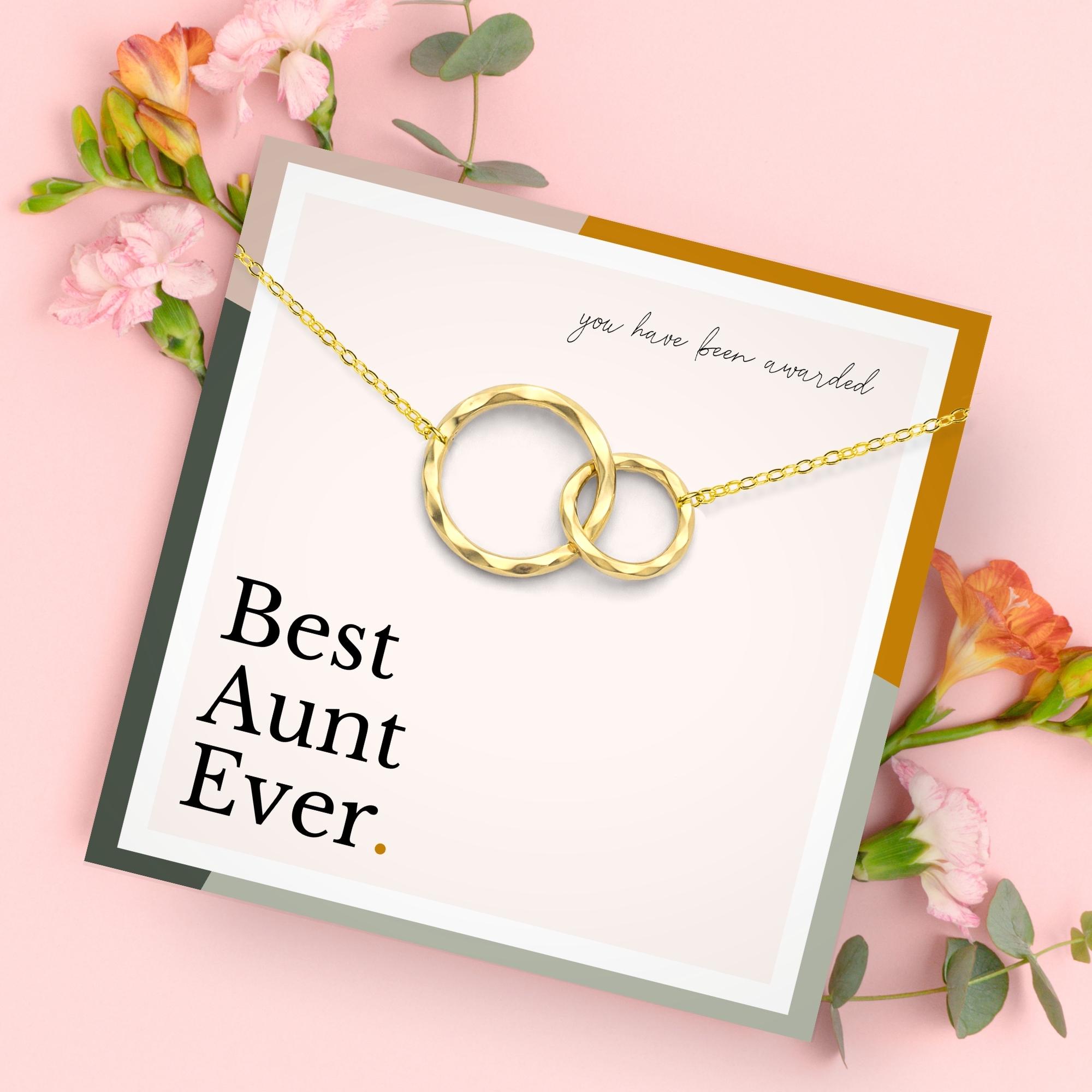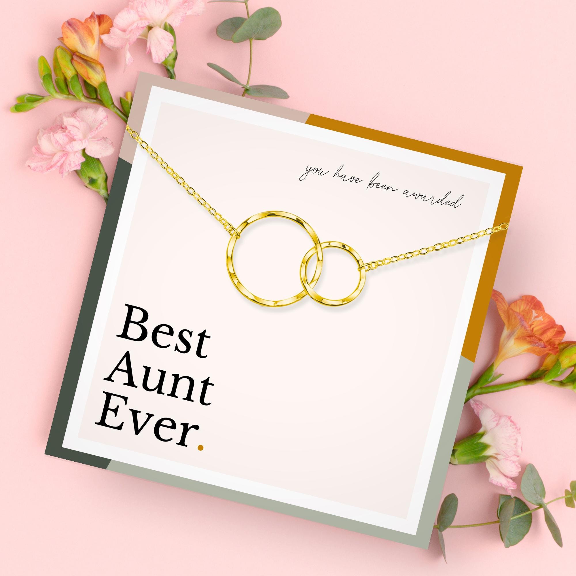 Best Aunt Ever Necklace Gift From Niece, Aunt and Niece Jewelry Gift, Interlocking Circle Necklace, Sterling Silver or 14k Gold Vermeil