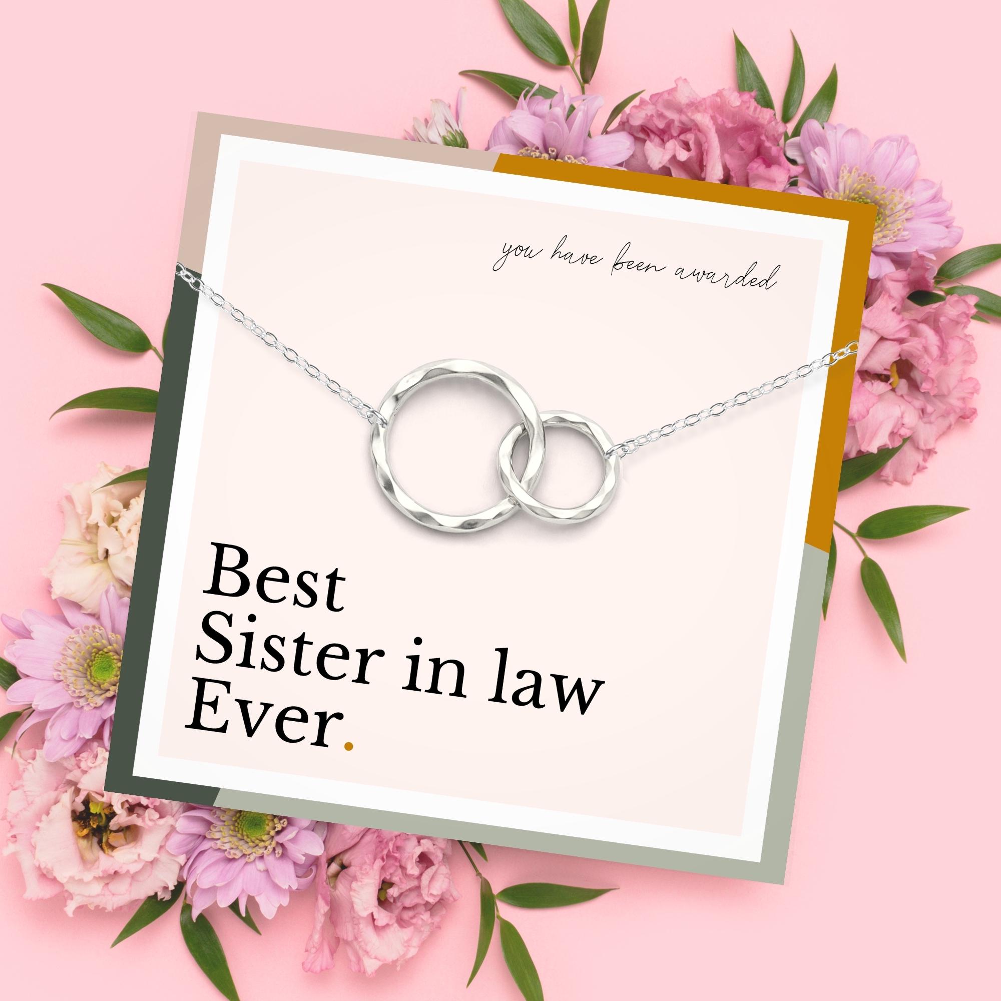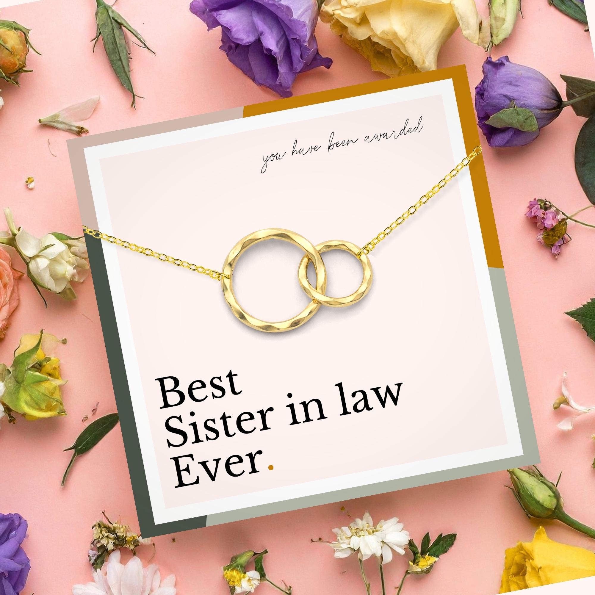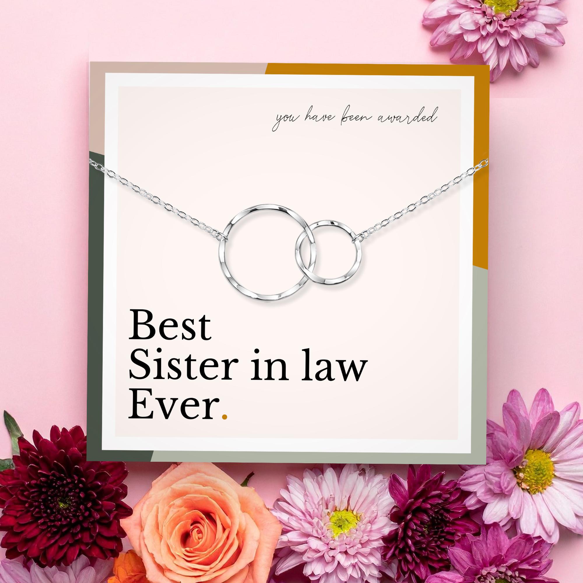 sister-in-law gift, best sister-in-law ever, sister of the groom necklace, interlocking circles jewelry, jewelry gift for her, sterling silver necklace, gold vermeil necklace, appreciation gift for sister-in-law, wedding thank you gift, sister-in-law birthday gift, family jewelry gift, bridesmaid gift idea, meaningful gift for sister-in-law
