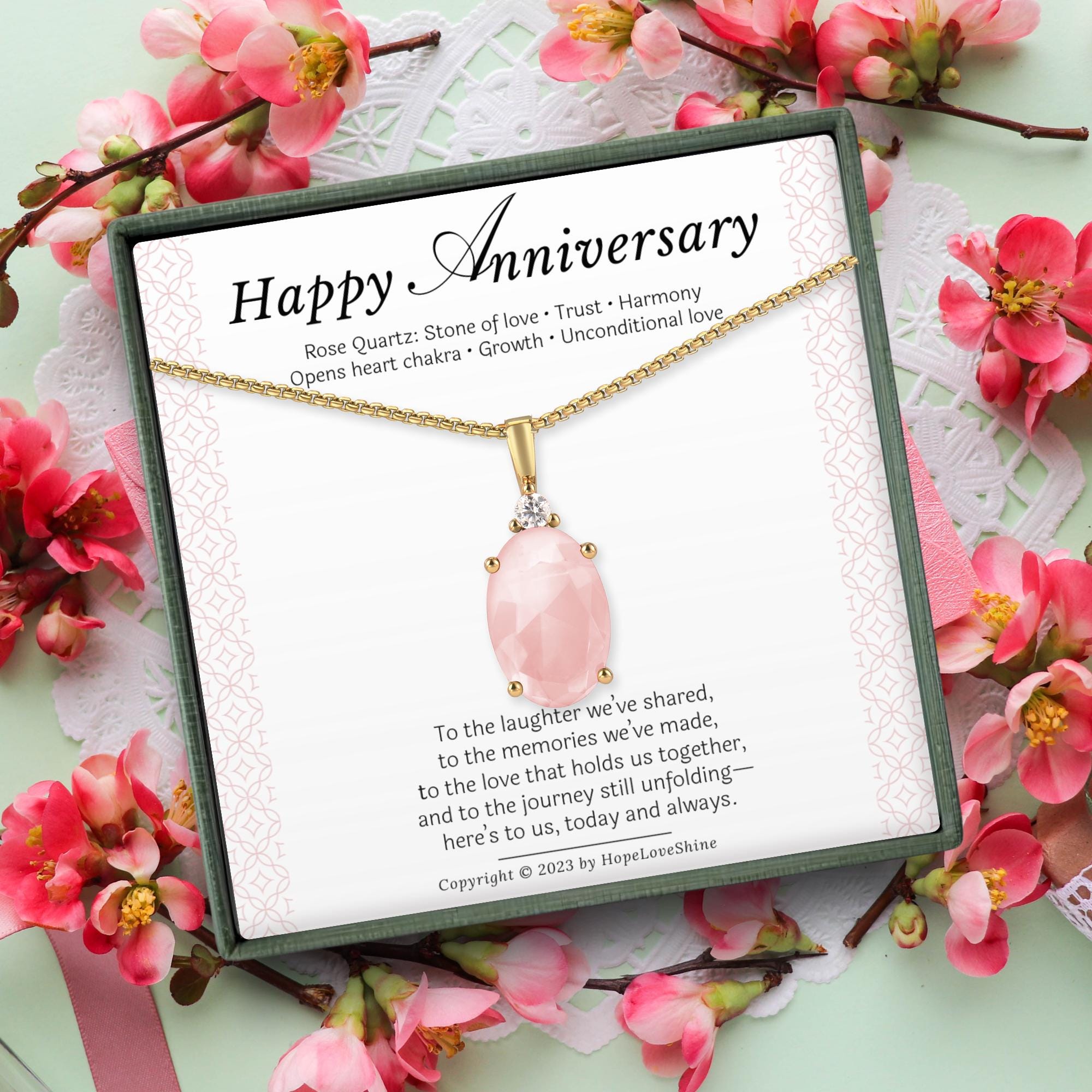 anniversary necklace, rose quartz gift, gift for wife, partner anniversary gift, romantic jewelry, chakra heart necklace, love crystal jewelry, husband gift idea, wedding milestone gift, rose quartz necklace, gift for her, unconditional love gift, stone of love