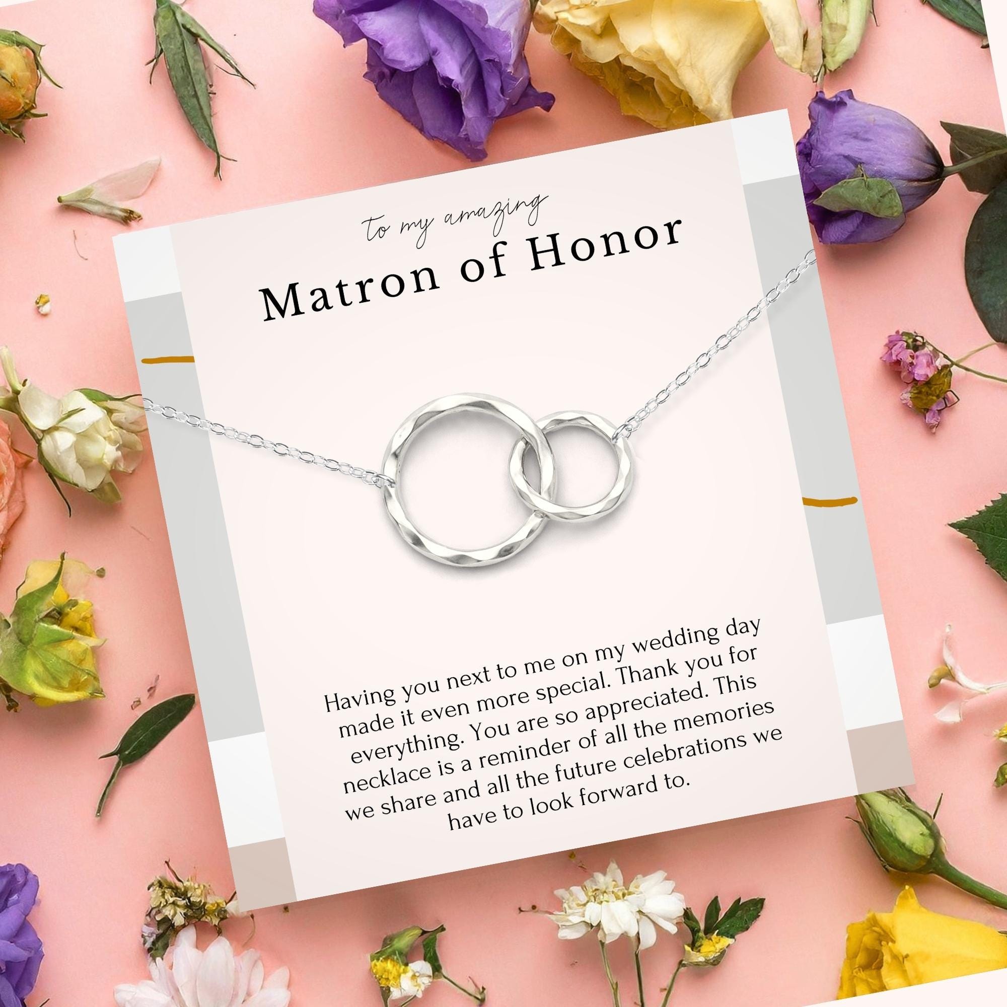 Matron of Honor Necklace gift, Meaningful Thank you gift, Infinity Circle necklace, Bridal Gift Ready Jewelry, Bridal Party gift, necklace card gift, 14K Gold vermeil , Sterling silver, Dainty necklace