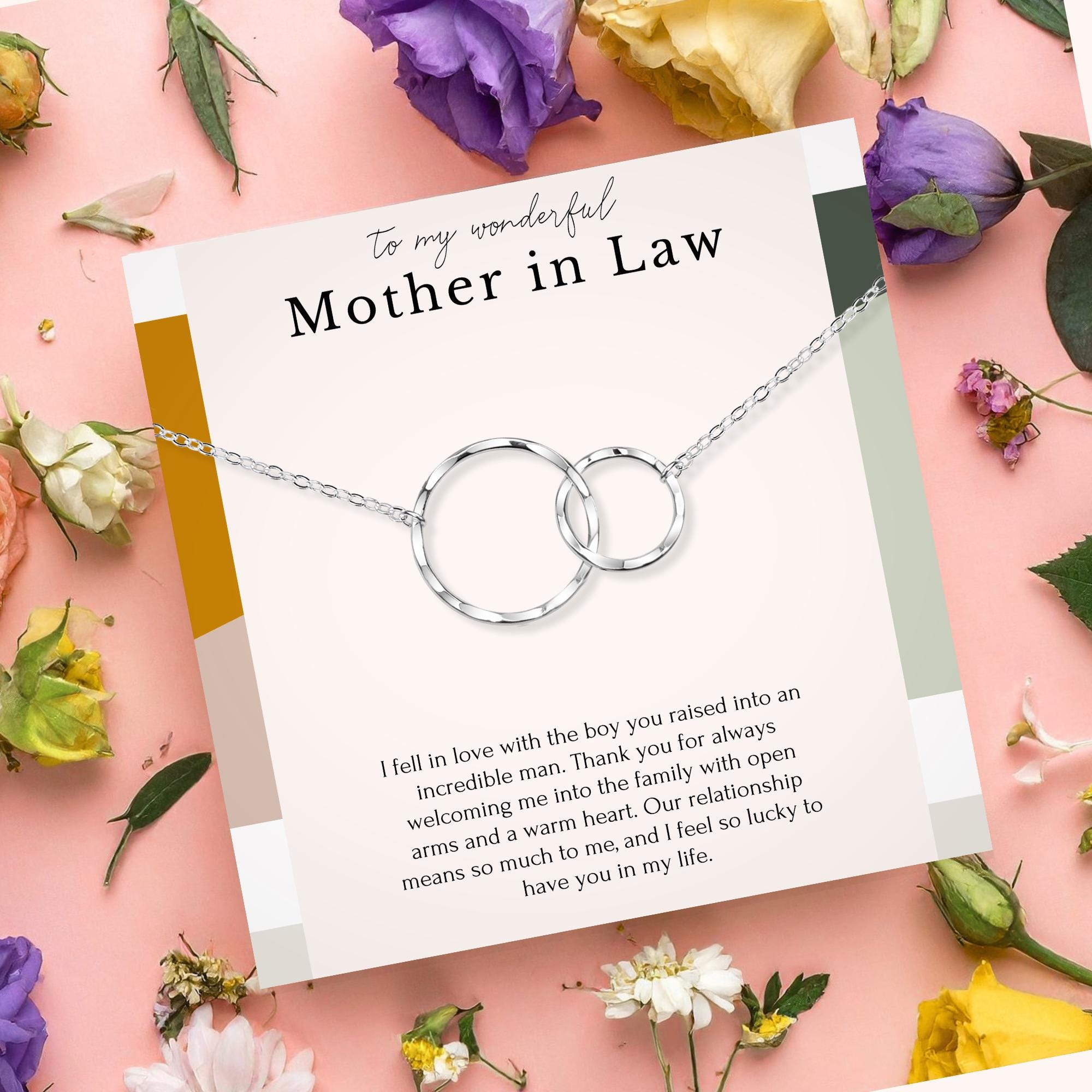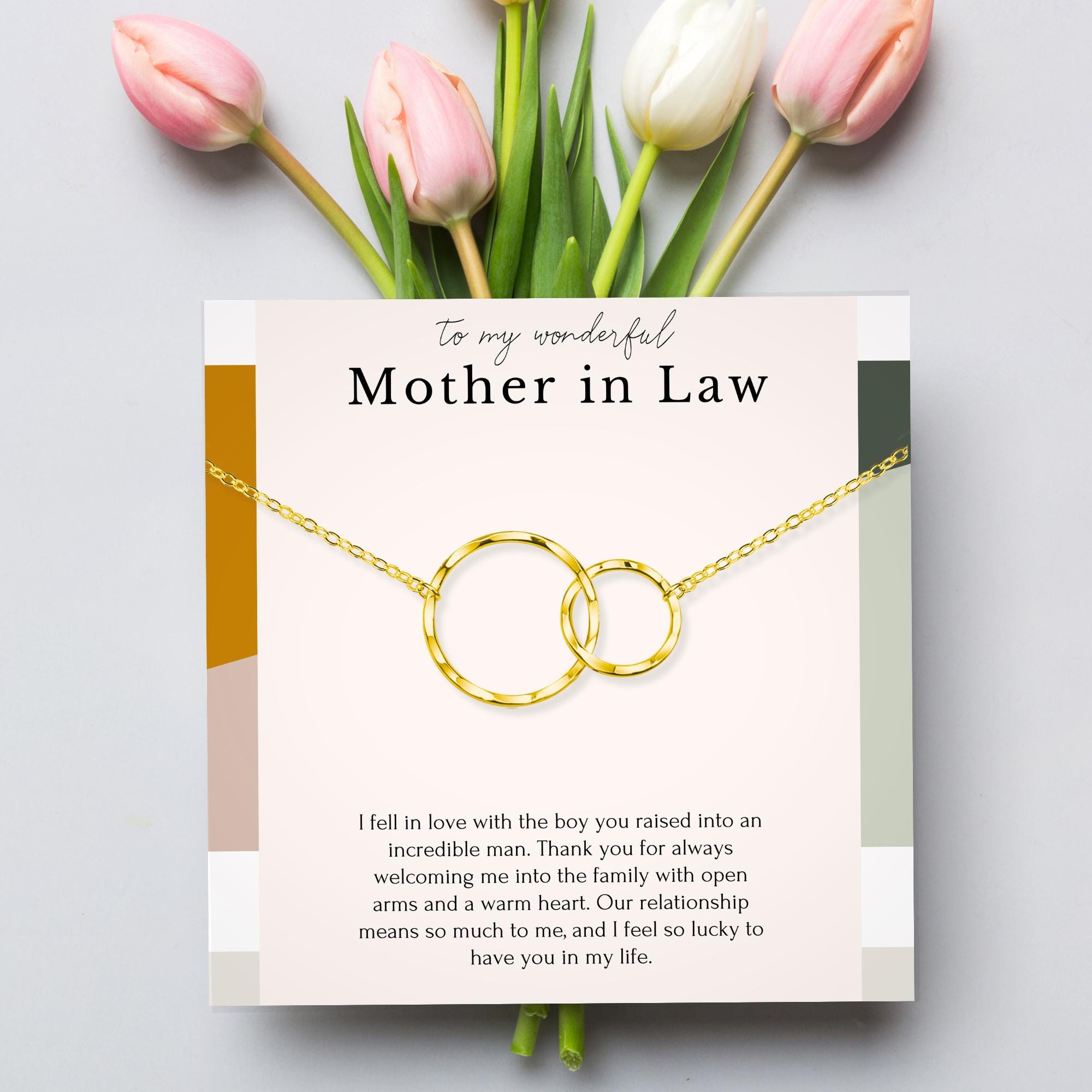Celebrate the beautiful union of families with this meaningful necklace gift for the Mother of the Groom. Show your appreciation for her love and support as she welcomes a new daughter into her heart. This sentimental gift will be a cherished reminder of this special day, long after the confetti settles. Perfect for Mother-in-law gifts, Future MIL gifts, or as a token of appreciation from the Bride.