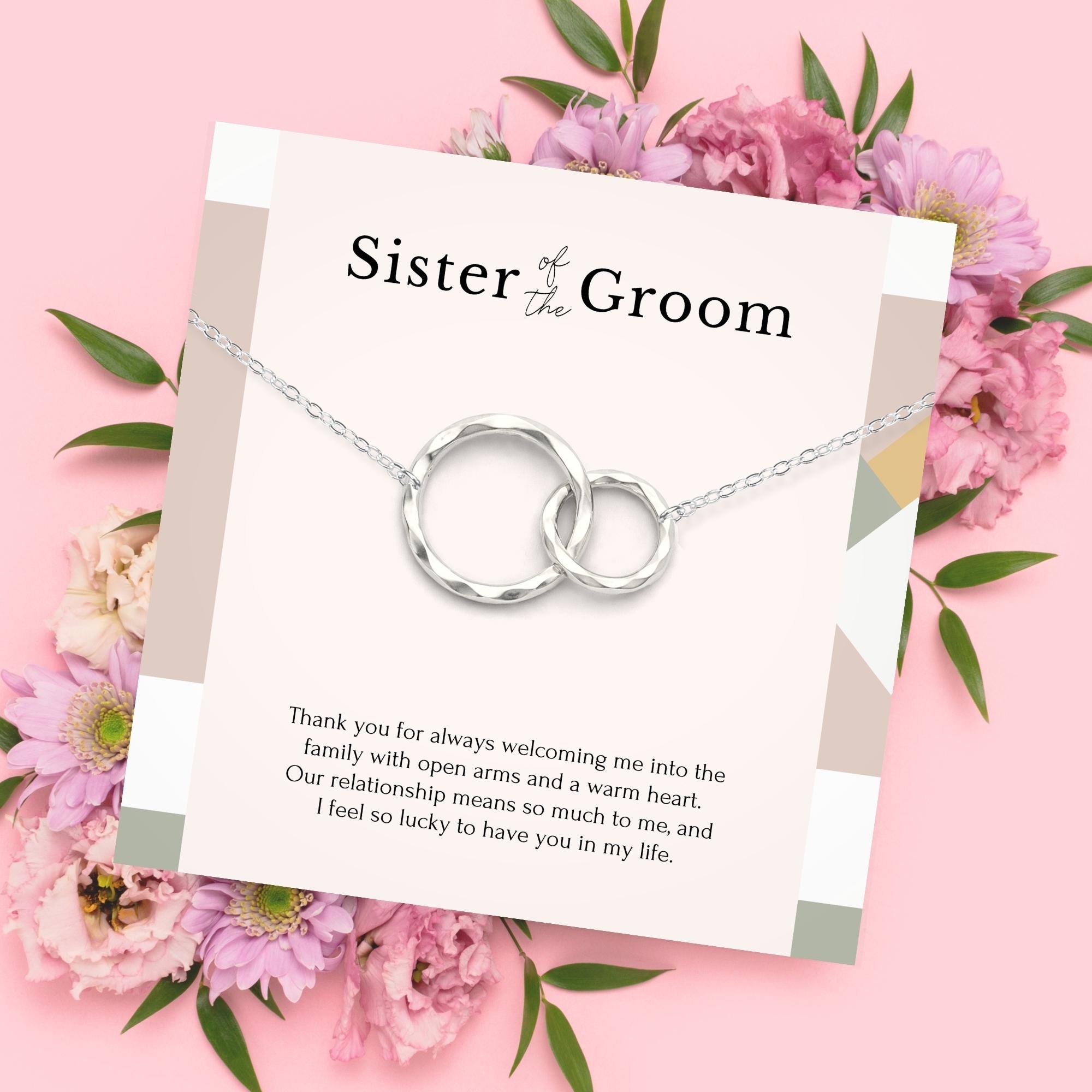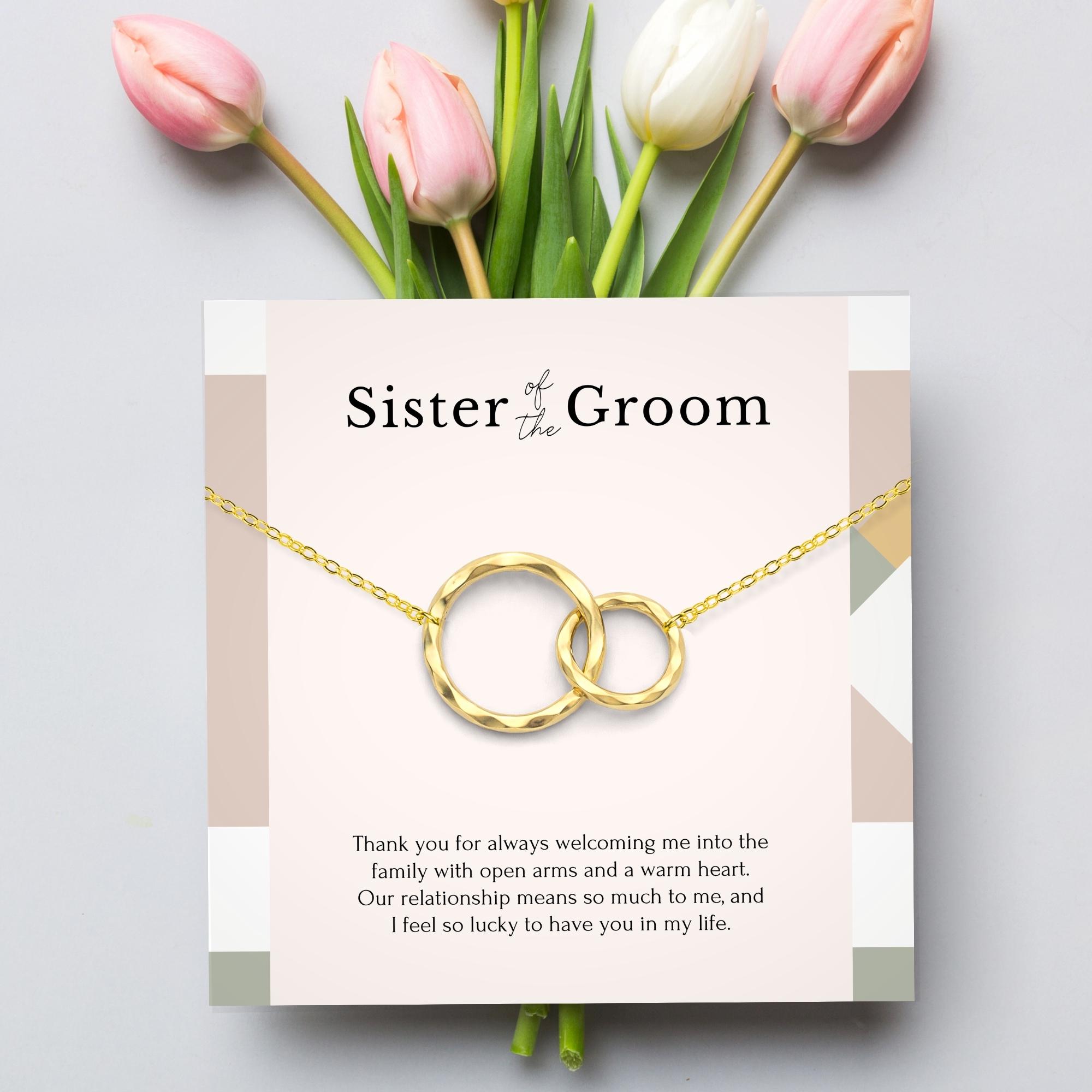 Sister of the groom gift, Sister in law wedding gift, Sister of the groom necklace with message, wedding gift from bride, Rehearsal Dinner Gift for SIL, Gold, Silver necklace