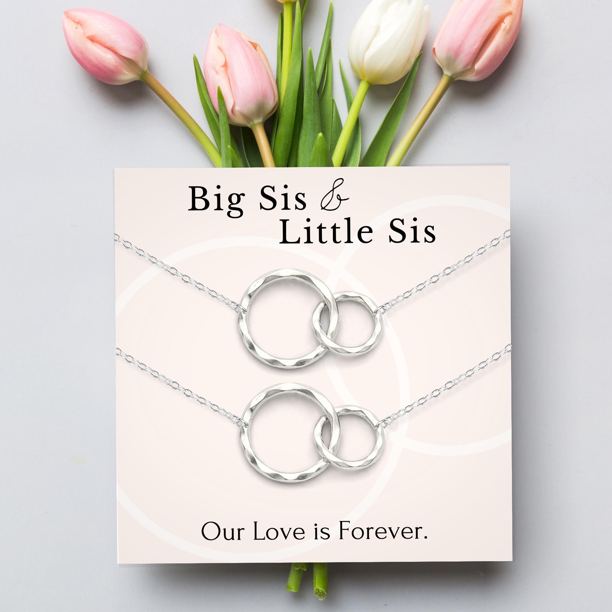 Celebrate your love for each other with a beautiful handmade sister necklace set. The unity link infinity pendant represents an eternal bond between big sister and little sister. A thoughtful and meaningful gift for your sister and yourself! A present that you both will treasure for many years to come.