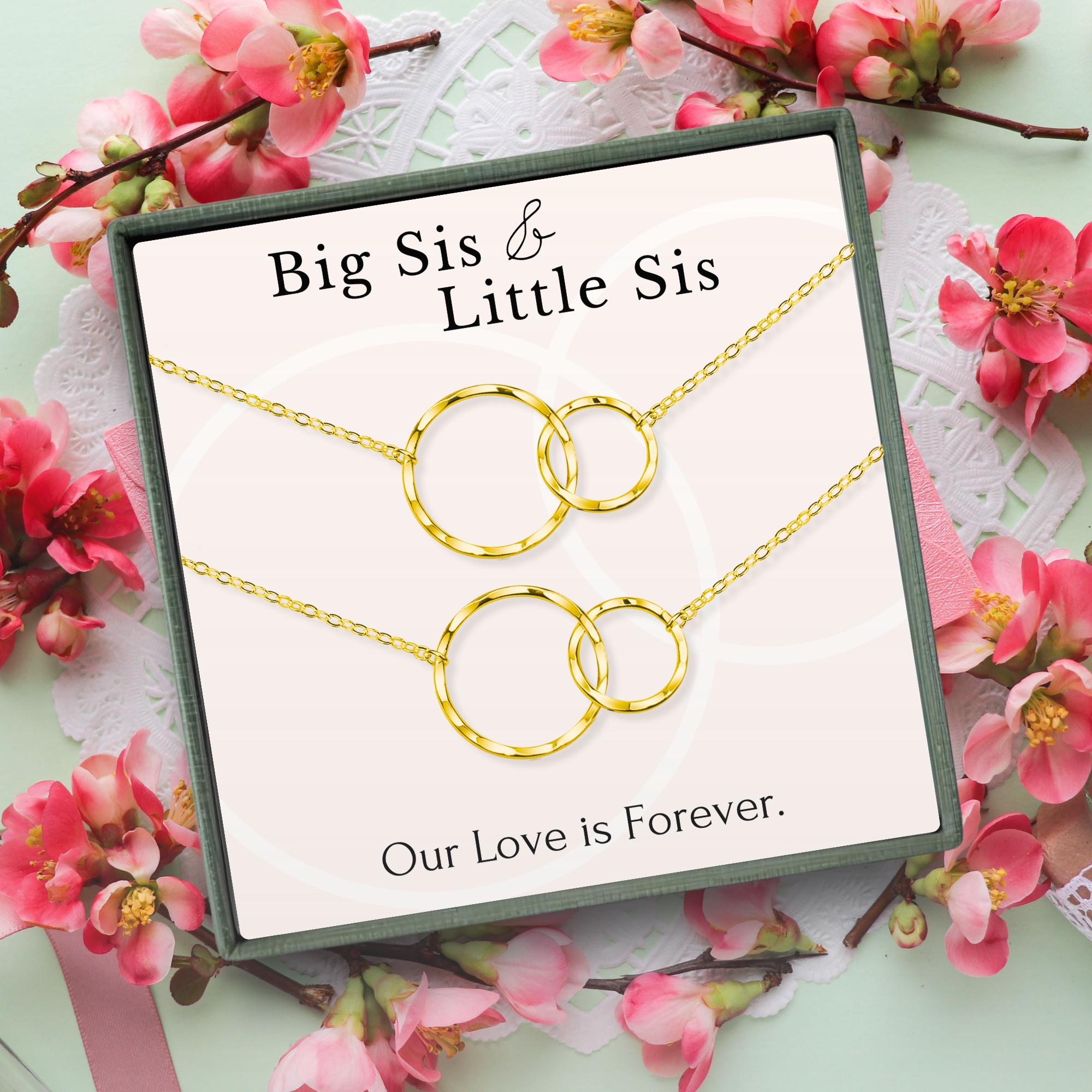 Big Sis Lil sis necklace set, Sister necklace set for 2, Big sister Little sister necklace, interlocking circle necklace set, Sister necklace set, Gold filled, Silver