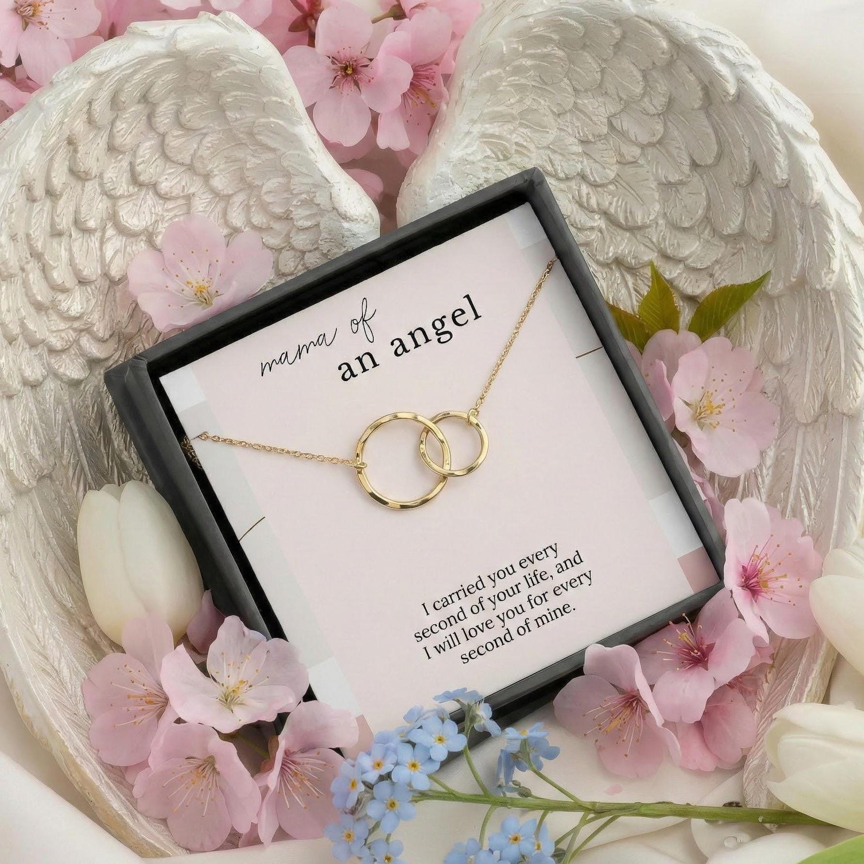 Miscarriage necklace for mom, baby loss remembrance jewelry, angel baby tribute gift — this 2-ring necklace is a sacred keepsake for a mother grieving the child she never got to raise but will love forever. It’s a tender way to say: your love still matters, and your loss is seen.